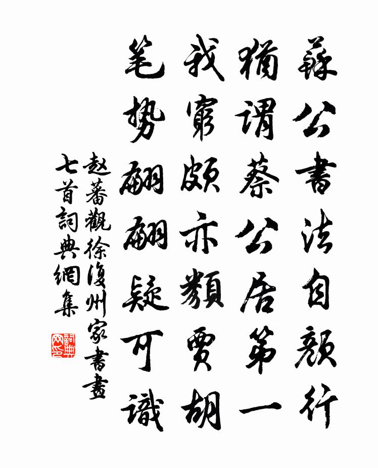詩詞名句歷史字典書法欣賞書法字典國語詞典說文解字康熙字典古漢語字典標 題 作 者 詩 句 觀徐復州家書畫七首作者:趙蕃 朝代:宋代觀徐復州家書畫七首原文蘇公書法自顏行,猶謂蔡公居第一。我窮頗亦類賈胡,筆勢翩翩疑可識。詩詞問答問:觀徐復州家書畫七首的作者是誰?答:趙蕃問:觀徐復州家書畫七首寫於哪個朝代?答:宋代趙蕃觀徐復州家書畫七首書法欣賞觀徐復州家書畫七首書法作品詩詞推薦述懷魏野〔宋代〕東郭魏仲先,生計且隨緣。任懶自掃地,更貧誰怨天。有名閒寶貴,無事小神仙。不覺流光速,身將半百年。題鄭十八著作虔杜甫〔唐代〕台州地闊海冥冥,雲水長和島嶼青。亂後故人雙別淚,春深逐客一浮萍。酒酣懶舞誰相拽,詩罷能吟不復聽。第五石芝蘇軾〔宋代〕土中一掌嬰兒新,爪指良是肌骨勻。是之怖走誰敢食,天賜我爾不及賓。旌陽遠遊同一許,長史玉斧皆門戶。我家送昭禮還金陵四首趙蕃〔宋代〕君似便風船,千里才一瞬。我如久眢井,湮沒不可浚。愧君力推挽,令我去鄙吝。加我以數年,庶幾乎少進。西江月(席上賦雙荔子)周紫芝〔宋代〕連理枝頭並蒂,同心帶上雙垂。背燈偷贈語低低。一點濃情先寄。翡翠釵頭摘處,鴛鴦枕上醒時。酸甜紅顆阿誰知成都二月十五日補試院呈同官項安世〔宋代〕向來耆舊日爭輝,太息西來萬事非。一笑烘堂吾豈敢,百年尤世淚仍揮。洋洋大國風流在,奄奄諸生氣息微。欲挽頌古五首釋守仁〔宋代〕氣直語直,眼親手親。峰巒競秀,紅紫爭春。神通妙用施呈盡,要見國師猶隔津。春帖子詞皇后閣十首宋祁〔宋代〕雙闕鮮雲抱日光,朝來春意已昌昌。先從太液催波綠,後到靈和報柳黃。頌古九首釋思岳〔宋代〕本是山中人,愛說山中話。五月賣松風,人間恐無價。反遠遊陸游〔宋代〕賣卻貂裘買釣舟,久將身世付悠悠。行歌西郭紅橋路,爛醉東關白塔秋。夜泊驛亭觀月上,曉登僧閣聽猿愁。一生送希夷之江西王柏〔宋代〕小雨斂輕塵,秋聲壯亭驛。驅車過南浦,別懷徒襞積。世道一以壞,為善不自力。一朝魯兩生,為人作行色。後山寄題梵天聖果二寺兼簡昭梧二上人釋智圓〔宋代〕群峰聳危碧,倒影沈空江。清景生晚晴,冷色涵虛窗。消搖縱吟賞,能使吾心降。江道中李新〔宋代〕項沒黃茆疑虎蹲,風搖脫木一浮雲。忘機沙漵雙鶬遠,小景人家一水分。野寺鐘聲昏後寂,寒衣砧子夜深聞。山中偈頌八十七首釋慧開〔宋代〕參禪莫滯靜工夫,鬧處相逢在半途。靜鬧兩關俱不涉,趙州東壁掛葫蘆。寄題峽州宜都縣古亭鄭獬〔宋代〕古人已逐秋草沒,明月空隨秋浪翻。安得古人似明月,長來此地對金樽。送武庠歸隱終南賀鑄〔宋代〕君不見南朝豪儁有郗生,自厭出身時網嬰。樂聞棲遁去人者,傾金累百贈其行。關西武郎將家種,心實慕儒官冗從奉陪武相公西亭夜宴陸郎中(時為武元衡幕僚)蕭祜〔唐代〕弘閣陳芳宴,佳賓此會難。交逢貴日重,醉得少時歡。舒黛凝歌思,求音足筆端。一聞清佩動,珠玉夜珊珊。洪州逢熊孺登白居易〔唐代〕靖安院裡辛夷下,醉笑狂吟氣最粗。莫問別來多少苦,低頭看取白髭鬚。上元夕次韻答張諫議晏殊〔宋代〕歌吹歡娛夕,衡門可屬垣。九城寒漏徹,三市實燈繁。酒想嵇山醉,詩慚謝樂翻。如容陪後乘,那避八騶喧。秋日游柯市張耒〔宋代〕柯市漁樵暮,遊人落落稀。肩禾新獲野,炷火欲鳴機。草木經寒雨,川原淡夕暉。北歸吾敢必,身世正多違。名句推薦鄉心新歲切,天畔獨潸然。劉長卿《新年作》 學而時習之,不亦說乎?佚名《論語十則》 不知天外雁,何事樂長征?徐禎卿《在武昌作》 今宵樓上一尊同。雲濕紗窗。辛棄疾《一剪梅·中秋元月》 北山白雲里,隱者自怡悅孟浩然《秋登萬山寄張五/九月九日峴山寄張子容》 露下旗濛濛,寒金鳴夜刻。李賀《塞下曲》 怪人不知理,知理不怪人。佚名《增廣賢文·下集》 茶性儉,不宜廣,廣則其味黯澹。陸羽《茶經·五之煮》 木落山空天遠大,送飛鴻、北去傷懷久。戴復古《賀新郎·寄豐真州》 碧玉妝成一樹高,萬條垂下綠絲絛。賀知章《詠柳 / 柳枝詞》