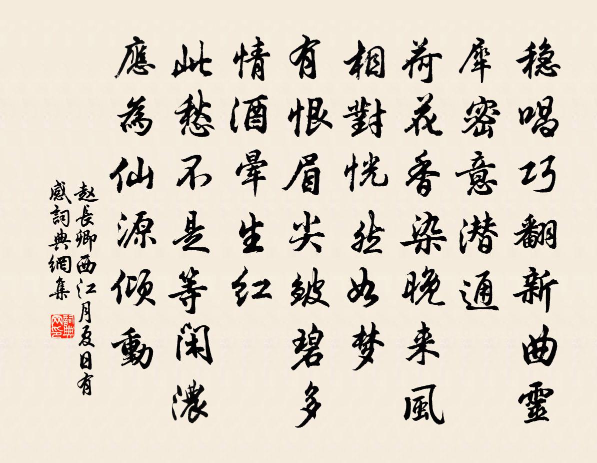 穩唱巧翻新曲,靈犀密意潛通。荷花香染晚來風。