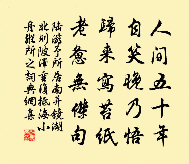 人間五十年,自笑晚乃悟。歸來寫苔紙,老憊無傑句。
