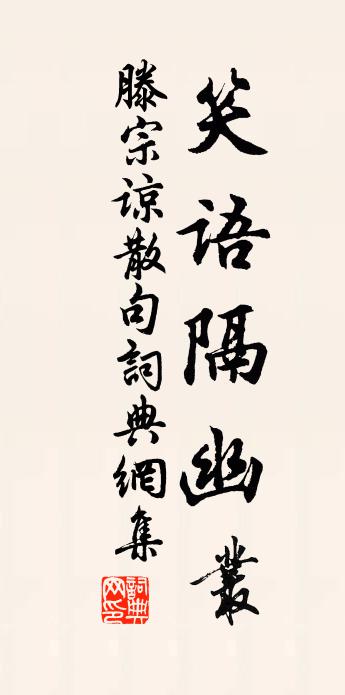 詩詞名句歷史字典書法欣賞書法字典國語詞典說文解字康熙字典古漢語字典標 題 作 者 詩 句 句作者:滕宗諒 朝代:宋代句原文笑語隔幽叢。詩詞問答問:句的作者是誰?答:滕宗諒問:句寫於哪個朝代?答:宋代滕宗諒句書法欣賞句書法作品詩詞推薦偈頌二百零五首釋正覺〔宋代〕黃河九曲,七斤布衫。胡馬嘶北,越鳥巢南。衲僧恰到真常處,語不欺人面不慚。虞美人徐俯〔宋代〕梅花元自江南得。還醉江南客。雪中雨里為誰香。聞道數枝清笑、出東牆。多情宋玉還知否。梁苑無尋處。胭脂為昆陽元好問〔金代〕古木荒煙集暮鴉,高城落日隱悲笳。并州倦客初投跡,楚澤寒梅又過花。滿眼旌旗驚世路,閉門風雪羨山家。忘憂仙遊潭五首南寺蘇轍〔宋代〕澄潭下無底,將渡又安能。慣上橫空木,輕生此寺僧。曉魚聞考考,石塔見層層。不到殊非惡,他年記未曾。光頃為諸生嘗受經於錢丈學賦於張丈今乃叨忝司馬光〔宋代〕疇昔勝冠日,曾為絳賬生。九言聞善教,一顧得虛聲。不意叨嚴近,於今接老成。寧須詩酒賜,侍坐已知榮。贈施道州二首劉克莊〔宋代〕胡塵突過劍門關,西顧於今尚未寬。早晚相如通僰道,蒼皇子美問長安。拮据自笑營巢拙,枘鑿明知合轍難。縱有句石仙〔宋代〕深邃門牆三楚外,清虛池館五峰前。重陽項安世〔宋代〕客里逢重九,匆匆惜歲華。籃輿上寒嵼,烏帽或欹斜。物熊如相何,村醪倖免賒。山深不見菊,蕎麥正多花。丙辰冬和樂魁聲道四詩姚勉〔宋代〕白柄長攙曉入山,欲尋黃獨駐君顏。雲深路晦東風雨,惆悵空攜竹笥還。詩一首張舜民〔宋代〕千載浪名金馬客,一宵沉醉石城樓。郢人休唱陽春曲,白盡湖南刺史頭。滿江紅(禾興月波樓和友人韻)吳潛〔宋代〕日薄寒空,正澤國、一汀霜葉。過萬里、西風塞雁,數聲哀咽。耿耿有懷天可訊,悠悠此恨誰能說。倚闌乾、老淚范增論蘇軾〔宋代〕漢用陳平計,間疏楚君臣,項羽疑范增與漢有私,稍奪其權。增大怒曰:“天下事大定矣,君王自為之,願賜骸骨排悶陸游〔宋代〕老去知心少,流塵鎖斷弦。尊空問字酒,囊罄作碑錢。掃葉供朝爨,和泥補漏船。胸中元浩浩,白眼望青天。菩薩蠻·春閨徐燦〔清代〕困花壓蕊絲絲雨,不堪只共愁人語。斗帳抱春寒,夢中何處山。捲簾風意惡,淚與殘紅落。羨煞是楊花,輸它先到亡嫂靖十君蒲氏輓詞二首蘇轍〔宋代〕家風足圖史,婦德儼苹蘩。湯沐從夫寵,冠衣席弟恩。克家傳眾子,有後慶多孫。追養心何極,增封禮尚存。浣溪沙·莫許杯深琥珀濃李清照〔宋代〕莫許杯深琥珀濃。未成沈醉意先融。□□已應晚來風。瑞腦香消魂夢斷,辟寒金小髻鬟松。醒時空對燭花紅。梅花李流謙〔宋代〕殷勤蝶障與蜂遮,一點幽香不許賒。歲歲相逢只如此,問花羞我我羞花。踏莎行歐陽修〔宋代〕碧蘚迴廊,綠楊深院。偷期夜入簾猶卷。照人無奈月華明,潛身卻恨花深淺。密約如沈,前歡未便。看看擲盡金壺臨溪送別詩謝朓〔南北朝〕悵望南浦詩。徙倚北梁步。葉上涼風初。日隱輕霞暮。荒城逈易陰。秋溪廣難渡。沫泣豈徒然。君子行多露。餞高仁卿農丞奉使還北牟巘五〔宋代〕裝輕路穩好兼程,還向鵷班侶雋英。自葉流根誰識此,老農摩腹送餘生。名句推薦風暖鳥聲碎,日高花影重。杜荀鶴《 * 怨》 山不在高,有仙則名水不在深,有龍則靈劉禹錫《陋室銘》 昨夜醉眠西浦月。今宵獨釣南溪雪。洪适《漁家傲引·子月水寒風又烈》 行人無限秋風思,隔水青山似故鄉。戴叔倫《題稚川山水》 子貢之無諂,原思之坐弦,是賢人守貧窮之法。王永彬《圍爐夜話·第四九則》 路出寒雲外,人歸暮雪時。盧綸《李端公 / 送李端》 莫道讒言如浪深,莫言遷客似沙沉。劉禹錫《浪淘沙九首》 羈心積秋晨,晨積展游眺。謝靈運《七里瀨》 白頭空負雪邊春,著意問春春不語。劉鎮《玉樓春·東山探梅》 風蕭蕭兮易水寒,壯士一去兮不復還。佚名《荊軻歌 / 渡易水歌》