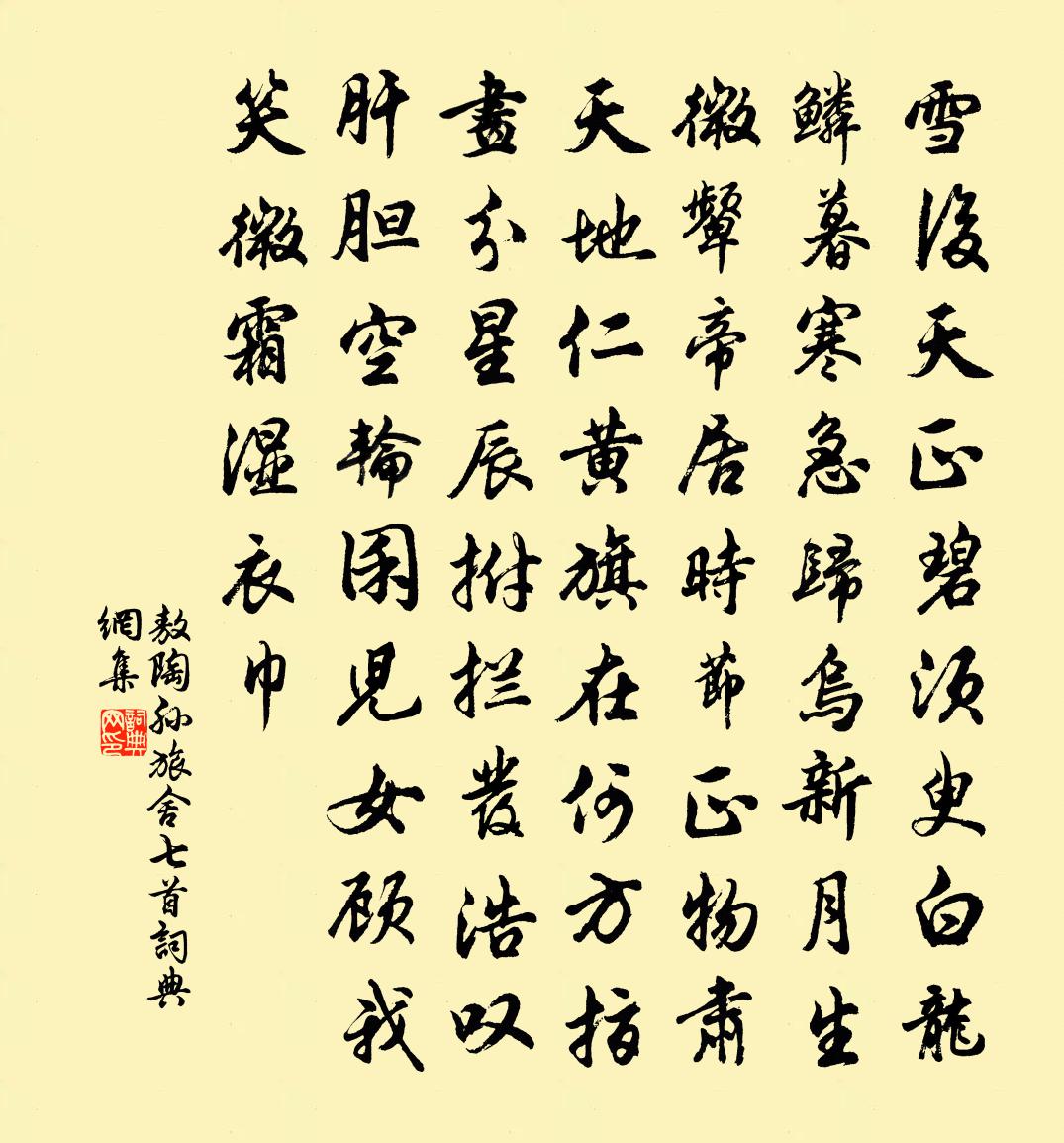 詩詞名句歷史字典書法欣賞書法字典國語詞典說文解字康熙字典古漢語字典標 題 作 者 詩 句 旅舍七首作者:敖陶孫 朝代:宋代旅舍七首原文雪後天正碧,須臾白龍鱗。暮寒急歸烏,新月生微顰。帝居時節正,物肅天地仁。黃旗在何方,指畫分星辰。拊攔發浩嘆,肝膽空輪囷。兒女顧我笑,微霜濕衣巾。詩詞問答問:旅舍七首的作者是誰?答:敖陶孫問:旅舍七首寫於哪個朝代?答:宋代問:旅舍七首是什麼體裁?答:五古敖陶孫旅舍七首書法欣賞旅舍七首書法作品詩詞推薦山城張耒〔宋代〕野縣閉門早,山深更漏微。薄雲依月宿,孤翼犯霜歸。弓冷新膠健,貂寒舊縷紕。旗亭換新酒,不惜篋中衣。記征人語納蘭性德〔清代〕邊月無端照別離,故園何處寄相思。西風不解征人語,一夕蕭蕭滿大旗。和杜中丞西禪院看花楊巨源〔唐代〕一林堆錦映千燈,照眼牽 * 不勝。知倚晴明嬌自足,解將顏色醉相仍。好風輕引香菸入,甘露才和粉艷凝。深處點絳唇(同曾無玷觀沈賽娘棋)趙師俠〔宋代〕裊裊娉娉,可人尤賽娘風韻。花嬌玉潤。一捻春期近。占路藏機,已向棋中進。俱休問。酒旗花陣。早晚爭先勝。和李時發春日見寄孔武仲〔宋代〕聞道重湖路未通,悠然身在碧湘中。崎嶇水國猶千里,牢落春花已半空。江浪濺寒侵小睡,岳雲篩雨音疏篷。君詩安國置酒敬簡堂分韻得柳暗六春字張栻〔宋代〕公臥百尺樓,餘子可下瞰。我每奉談麈,汲古得探探。身外皆為余,此道要無憾。從渠梅雨天,陰晴遞明暗。寄崔慶孫羅隱〔唐代〕故人何處又留連,月冷風高鏡水邊。文陣解圍才昨日,醉鄉分袂已三年。交情澹泊應長在,俗態流離且勉旃。還擬詠手韓偓〔唐代〕腕白膚紅玉筍芽,調琴抽線露尖斜。背人細撚垂胭鬢。向鏡輕勻襯臉霞。悵望昔逢褰繡幔,依稀曾見托金車。後園金陵雜興二百首蘇泂〔宋代〕宛轉歌喉一串珠,玉人花貌更清姝。明年東武南城唱,試覓源流定憶渠。悼花首湛長老二首李昴英〔宋代〕別我笑吟吟,羅浮原力深。空拳糊眾口,平地起叢林。山迥孤雲沒,溪寒片月沉。人今奇坐蛻,在日孰知音。讀守道詩張耒〔宋代〕仁宗之初公有聲,一世懦者聞之驚。日行古義不顧俗,師事孫子傳其經。掃堂捧杖供賤役,侍師之坐隨師行。質疑春日有感三首危稹〔宋代〕春入長安百萬家,湖邊無日不香車。一株柳色吾無分,看殺庭前薺菜花。四月五日集陳園照山堂范成大〔宋代〕尋壑經丘到此堂,官閒聊作送春忙。短籬水面殘紅滿,團扇風前眾綠香。盡捲簾旌延竹色,深斟杯酒納山光。洞門偈頌一百二十三首釋祖欽〔宋代〕南薰入奏,殿閣生涼。西來祖意,切忌商量。向下文長。觀慶雲圖李程〔唐代〕五雲從表瑞,藻繪宛成圖。柯葉何時改,丹青此不渝。非煙色尚麗,似蓋狀應殊。渥彩看猶在,輕陰望已無。方將添字採桑子李清照〔宋代〕窗前誰種芭蕉樹?陰滿中庭;陰滿中庭,葉葉心心、舒捲有餘情。傷心枕上三更雨,點滴霖霪;點滴霖霪,愁損北翠陪方何諸人後庵謝客紀事王洋〔宋代〕後山客館報聘禮,野寺僧甌當酒茶。雲未散屯知候雨,溪唯貪漲不容沙。草間翁仲今塵跡,雪後江梅是故花。一掃上慧力寺鄒登龍〔宋代〕今代空王宅,前朝處士家。牛車回象藏,鹿苑發龍華。松密風生樹,江空月在沙。闍黎飯鍾後,邀我試新茶。和就日館蘇頌〔宋代〕戎疆迢遞戴星行,驛騎賓士朿火迎。人向萬山峰外過,月從雙石嶺間生。馬蹄看即三千里,客舍今逾四十程。每念喜朝天(綺霞閣即踏莎行)曹冠〔宋代〕繡水雕欄,綺霞邃宇。薰風颯至清無暑。花間休唱遏雲歌,枝頭且聽嬌鶯語。景物撩人,悠然得句。深杯戲把紋楸名句推薦情往似贈,興來如答。劉勰《文心雕龍·物色》 江南可採蓮,蓮葉何田田。佚名《江南》 小娃撐小艇,偷采白蓮回。白居易《池上》 養不教,父之過。教不嚴,師之惰。王應麟《三字經·全文》 有悵寒潮,無情殘照,正是蕭蕭南浦柳如是《金明池·詠寒柳》 寄語洛城風日道,明年春色倍還人。杜審言《春日京中有懷》 遙想獨游佳味少,無方騅馬但鳴嘶。蘇轍《懷澠池寄子瞻兄》 溫故,而知新,敦厚以崇禮。子思《中庸·第二十七章》 窮兵極武,仁者不為。令狐德棻《周書·列傳·卷二十七》 綠樹村邊合,青山郭外斜。孟浩然《過故人莊》