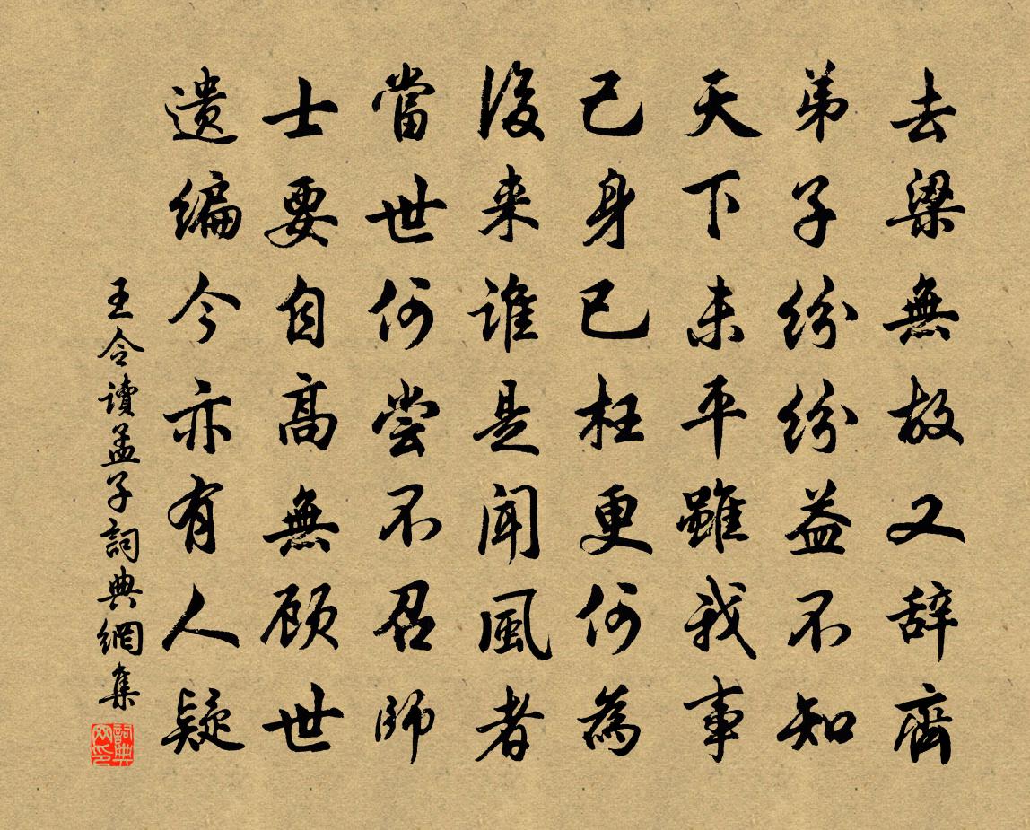 詩詞名句歷史字典書法欣賞書法字典國語詞典說文解字康熙字典古漢語字典標 題 作 者 詩 句 讀孟子作者:王令 朝代:宋代讀孟子原文去梁無故又辭齊,弟子紛紛益不知。天下未平雖我事,己身已枉更何為。後來誰是聞風者,當世何嘗不召師。士要自高無顧世,遺編今亦有人疑。詩詞問答問:讀孟子的作者是誰?答:王令問:讀孟子寫於哪個朝代?答:宋代王令讀孟子書法欣賞讀孟子書法作品詩詞推薦關山月陸游〔宋代〕和戎詔下十五年,將軍不戰空臨邊。朱門沉沉按歌舞,廄馬肥死弓斷弦。戍樓刁斗催落月,三十從軍今白髮。笛里寄劉仲原經歷陳雷〔元代〕鴛鴦湖水漾晴暉,鏡里遙峰入望微。槐蔭午衙書帙靜,蓮香秋幕吏人稀。青雲步穩名逾重,白石歌長願已違。他日和彥詹題遠軒陳師道〔宋代〕開窗得遠意,興出杳冥間。芳草日邊路,片雲天外山。好花和露斸,修竹夾藤刪。每許南鄰伴,時來一寄閒。寒食雨二首蘇軾〔宋代〕自我來黃州,已過三寒食。年年欲惜春,春去不容惜。今年又苦雨,兩月秋蕭瑟。臥聞海棠花,泥污胭脂雪。暗中銓攜具賞石渠酴醾用坡韻呈同舍胡銓〔宋代〕酴醾獨殿春,得路未為晚。露時張翠傘,月蕊明玉幰。洗妝雨亦妍,暗麝風更遠。唐時真宰相,勁氣凌諫苑。危言延慶宮勾台符〔宋代〕一簇樓台地,嵯峨四面函。路盤七折嶺,坐對六時岩。旅中李流謙〔宋代〕客舍供朝餔,旅食不知旨。取酒澆餓腸,乞火伸凍指。萍根托江流,江自不能止。傳舍貪閱人,風雨亦閱爾。豐年謠五首王炎〔宋代〕稻如馬尾履溝塍,桑柘陰中雞犬鳴。收穫登場便無事,輸租人不入州城。偈頌七十二首釋祖欽〔宋代〕寸長尺短,三平二滿。覿面相呈,語言道斷。徑山寄生子作道服三首劉子翬〔宋代〕粲粲休夸綺與紈,紉蘭制芰亦良難。此袍遍滿三千界,要與寒兒共解顏。題回山人畫像宇文孝叔〔宋代〕仙蹤久矣閉禪關,忽遇高人喚得還。創就琳宮依岌頁,移來真像帶斕斑。路通遠浦重重水,樓倚長松面面山。酌我沁園春 示眾丘處機〔元代〕世事紛紛,似水東傾,甚時了期。嘆利名千古,爭馳虎豹,丘原一旦,總伴狐狸。枳棘叢中,桑榆影里,亂冢堆堆瓊花顏師魯〔宋代〕后土祠中二月暮,瓊花放後有蜂來。東君不怕春歸去,留待詩人一夜開。鼓李嶠〔唐代〕舜日諧鞀響,堯年韻土聲。向樓疑吹擊,震谷似雷驚。仙鶴排門起,靈鼉帶水鳴。樂雲行已奏,禮曰冀相成。雪竇陳允平〔宋代〕千年松樹凍欲死,夜半老僧眠樹根。一片海雲吹不散,白龍拖雪上崑崙。秋風函谷應詔徐賢妃〔唐代〕秋風起函谷,勁氣動河山。偃松千嶺上,雜雨二陵間。低雲愁廣隰,落日慘重關。此時飄紫氣,應驗真人還。睡起龍輔〔宋代〕下幃恣午睡,怪殺鳥相呼。起來慵刺繡,窗下理菖蒲。秋夕遠懷元稹〔唐代〕旦夕天氣爽,風飄葉漸輕。星繁河漢白,露逼衾枕清。丹鳥月中滅,莎雞床下鳴。悠悠此懷抱,況復多遠情。懷古楊冠卿〔宋代〕干將補弊履,鉛刀割全牛。千金市駿骨,鼓車役驊騮。薛燭已雲遠,伯樂不可求。此理難致詰,吾其賦歸休。秦淮晚眺張翥〔元代〕赤欄橋下莫潮空,遠火疏舂暗靄中。星月半天分落照,斷雲千里附歸風。嚴城鼓角秋聲早,故國山川王氣終。莫訝名句推薦君子之交淡若水,小人之交甘若醴。莊子《莊子·外篇·山木》 寢興目存形,遺音猶在耳。潘安《悼亡詩三首》 操千曲而後曉聲,觀千劍而後識器。劉勰《文心雕龍·知音》 黃鶯不語東風起,深閉朱門伴舞腰。溫庭筠《楊柳八首·其三》 本理則國固,本亂則國危。管仲《管子·霸言》 且就洞庭賒月色,將船買酒白雲邊。李白《游洞庭湖五首·其二》 念寒蛩殘夢,歸鴻心事,那聽江村夜笛。吳文英《瑞鶴仙·秋感》 步從容,立端正。揖深圓,拜恭敬。李毓秀《弟子規·謹》 翠蛾輕斂意沉吟,沾襟,無人知此心。孫光憲《河傳·花落》 雙眼自將秋水洗,一生不受古人欺。袁枚《隨園詩話·補遺 卷三》