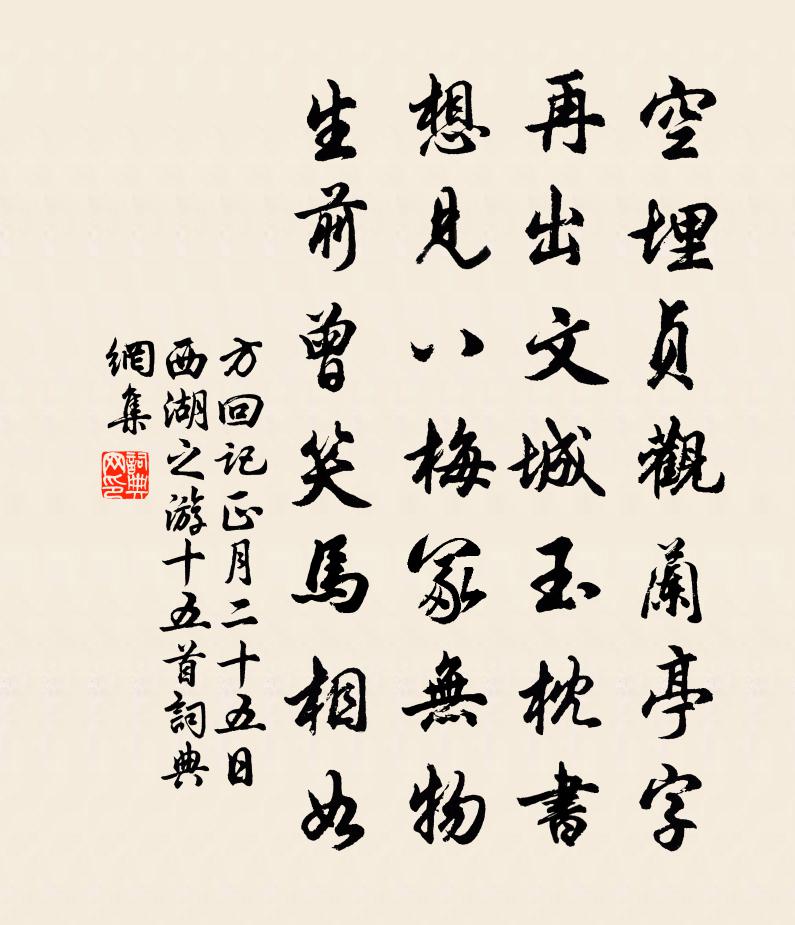 詩詞名句歷史字典書法欣賞書法字典國語詞典說文解字康熙字典古漢語字典標 題 作 者 詩 句 記正月二十五日西湖之游十五首作者:方回 朝代:宋代原文空埋貞觀蘭亭字,再出文城玉枕書。想見八梅冢無物,生前曾笑馬相如。詩詞問答問:《記正月二十五日西湖之游十五首》的作者是誰?答:方回問:該詩寫於哪個朝代?答:宋代書法欣賞記正月二十五日西湖之游十五首書法作品詩詞推薦種芭蕉張耒〔宋代〕幽居玩芳物,自種兩芭蕉。空山夜雨至,滴滴復蕭蕭。涼葉泛朝露,芳心展夕飈。東堂日虛靜,秀色慰無聊。跋黃京甫必昌提乾四書講義五邁〔宋代〕吾友黃京甫,順資厚以渾。自了場屋債,偏參諸老門。四書不釋手,日旰忘晨飧。超悟到聖處,不能忘於言。序講為章道祖頗及葛藤華藏庵葛立方〔宋代〕鮮健龐翁今罷參,拄杖掛壁雲迷庵。開花聊幻仙七七,逗機更說禪三三。未辦浮丘招挹袖,且邀彌勒與同龕。庵中偶書二首方回〔宋代〕磊落終休矣,艱難晚見之。罔知當世事,殊悔少年時。山居雜詩九十首曹勛〔宋代〕連日山村雨,牛羊都在欄。低田漬積水,臥穗鋪新寒。氣逼琴絲潤,香傳岩桂丹。天光惜壠畝,應放月團團。答資政邵諫議見寄二首歐陽修〔宋代〕豪橫當年氣吐虹,蕭條晚節鬢如蓬。欲知潁水新居士,即是滁山舊醉翁。所樂藩籬追尺鷃,敢言寥廓逐冥鴻。期公梁雅樂歌 皇雅 二沈約〔南北朝〕華蓋拂紫微。勾陳繞太一。容裔被緹組。參差羅{罒/乾}畢。星回昭以爛。天行徐且謐。午陰坐清足軒董嗣杲〔宋代〕雲過秋天亂擘絮,風透秋窗遺剪刀。客衣難禁如此候,離家失侶徒呼號。肌骨癯然病易入,況復加以思慮勞。行來茶花二首蘇轍〔宋代〕細嚼花須味亦長,新芽一粟葉間藏。稍經臘雪侵肌瘦,旋得春雷發地狂。開落空山誰比數,烝烹來歲最先嘗。枝枯賦董氏雙岐竹戴表元〔宋代〕山莊一對青青玉,瀟灑天然同乾生。說與人間好兄弟,時來林下聽風聲。病目洪咨夔〔宋代〕日過學不力,年催名未芳。心期雖皦皦,目視已茫茫。燈疊青紅暈,書紛黑白行。 * 深瞑坐,禪味覺偏長。龍舒朱獻賓主漢陽簿棄官以歸予亦不合丐去為王阮〔宋代〕浪作鸞棲去,驚隨鶴怨還。無心漢江水,有節皖公山。此事真堪話,諸公寧厚顏。嗟予亦興盡,昨夜已投閒。慶元四年五月再游趙公碩〔宋代〕舊時曾此覓仙緣,一別於今四十年。白髮重來嗟老矣,青山九鎖故依然。肩輿直入松閒路,洗耳還聽澗底泉。幽興太常引 為萬奴總管壽王惲〔元代〕重於山嶽藹如蘭。喜一旦,得同官。裁*笑談間。道不似、當年將壇。一年好處,中秋節近,涼露洗金盤。丹桂月送道士郄彝素歸內道場盧綸〔唐代〕病老正相仍,忽逢張道陵。羽衣風淅淅,仙貌玉稜稜。叱我問中壽,教人祈上升。樓居五雲里,幾與武皇登。癸亥春張嵲〔宋代〕荒村渺渺不知春,三見籬邊物態新。漸習魚蝦解蠻語,自疑元是魏塘人。相思令·苹滿溪張先〔宋代〕苹滿溪。柳繞堤。相送行人溪水西。回時隴月低。煙霏霏。風淒淒。重倚朱門聽馬嘶。寒鷗相對飛 。希顏見寄二絕和韻陳文蔚〔宋代〕乳燕交雛看學飛,絕勝對客塵頻軍。綠陰翠幄閒中好,誰道春隨紅紫歸。夜行船侯善淵〔元代〕設誓明言衷腸話。棄般般物情俱舍。心口相違,不分真假。把玄門返成功價。縱意為非難勸化。業深大罪愆無舍。蠟梅曾協〔宋代〕小枝列仙質,翛然道家裝。雪帔掛淺絳,銖衣曳微黃。清風一披拂,芝蘭讓幽香。老子專鼻觀,此花正相當。就令名句推薦拔一毛而利天下,不為也。孟子《孟子·盡心章句上·第二十六節》 不修身而求個名於世者,猶貌甚惡而責妍影於鏡也。顏之推《顏氏家訓·名實篇》 遷客此時徒極目,長洲孤月向誰明。李白《鸚鵡洲》 池花春映日,窗竹夜鳴秋。李白《謝公亭·蓋謝朓范雲之所游》 得其所白,不可謂無白;得其所堅,不可謂無堅。公孫龍《公孫龍子·堅白論》 瀉水置平地,各自東西南北流。鮑照《擬行路難十八首》 銀燭秋光冷畫屏,輕羅小扇撲流螢。杜牧《秋夕》 那堪疏雨滴黃昏。更特地、憶王孫。歐陽修《少年游·欄乾十二獨憑春》 行人刁鬥風沙暗,公主琵琶幽怨多。李頎《古從軍行》 鳥向平蕪遠近,人隨流水東西。劉長卿《謫仙怨·晴川落日初低》