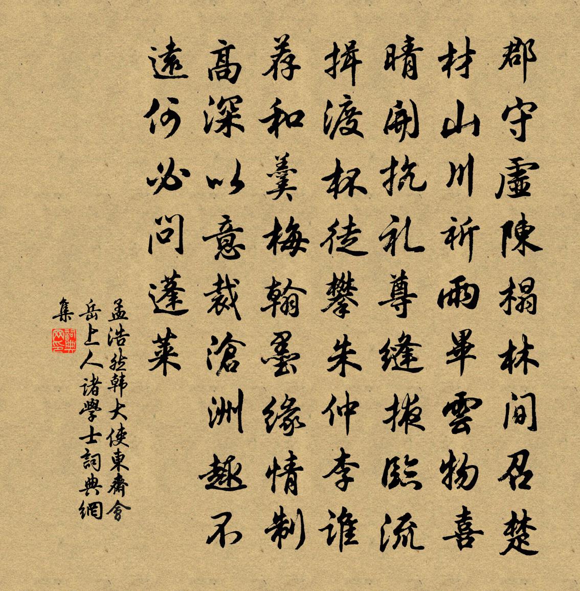 孟浩然韓大使東齋會岳上人諸學士書法欣賞