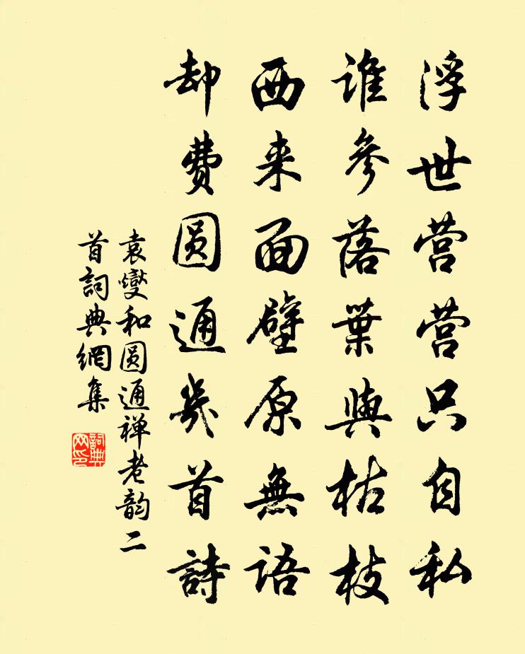 詩詞名句歷史字典書法欣賞書法字典國語詞典說文解字康熙字典古漢語字典標 題 作 者 詩 句 和圓通禪老韻二首作者:袁燮 朝代:宋代和圓通禪老韻二首原文浮世營營只自私,誰參落葉與枯枝。西來面壁原無語,卻費圓通幾首詩。詩詞問答問:和圓通禪老韻二首的作者是誰?答:袁燮問:和圓通禪老韻二首寫於哪個朝代?答:宋代袁燮和圓通禪老韻二首書法欣賞和圓通禪老韻二首書法作品詩詞推薦擬張九齡詠燕梅堯臣〔宋代〕眇眇雙來燕,長年與社違。任從新曆改,只向舊巢歸。永日當人語,輕寒逆雨飛。自親梁棟慣,不識海鷗機。小園桃熟張埴〔宋代〕老子廬東信手栽,今經亂後帝累累。天風暗拽雲裳裉,曉日濃潮酒臉回。向上可憐無佞處,從旁只恐有偷來。清晨感皇恩李孝光〔元代〕五馬東來,人歌襦夸,春晚棠陰綠如許。草堂詩夢,應費湖中簫鼓。清香生畫戟、連嘉樹。父老踏歌、道君侯來何喜與楊六侍御同宿白居易〔唐代〕岸幘花靜言明月花夜,匡花閒臥花落花朝。二三月里饒春睡,七八年來不早朝。濁水清塵難會合,高鵬低鷃各逍遙春晝(一作盡)韓偓〔唐代〕春融艷艷,大醉陶陶。漏添遲日,箭減良宵。藤垂戟戶,柳拂河橋。簾幕燕子,池塘伯勞。膚清臂瘦,衫薄香銷。謝呂令子卿雪中遣人惠酒初令人置酒於祝舜俞王洋〔宋代〕也知謀醉勝謀閒,戶小都忘滿腹慳。晚得麴生投老伴,長邀玉友訪空山。初貪雪裡香宜倍,忽報瓶中酒自還。全勝十二時/憶少年佚名〔宋代〕承平世,嘉祐壬寅。九月上旬辛。酒醪香旨,谷實豐珍。宗祀敞中宸。賓延上帝五方神。以嚴親。誠心通杳杳,文代少年時至衰老行鮑照〔南北朝〕憶昔少年時。馳逐好名晨。結友多貴門。出入富兒鄰。綺羅艷華風。車馬自揚塵。歌唱青齊女。彈箏燕趙人。好酒柳絮楊億〔宋代〕瓊蕊飄英逐吹繁,建章飛舞入千門。羌人自怨殘梅曲,莊叟還迷夢蝶魂。漢苑風光隨獵騎,洛城花雪撲離樽。錦帆雨中出湖上送客楊萬里〔宋代〕細雨輕煙著地昏,湖波真箇解生塵。淨慈靈隱君休覓,失卻諸峰不惱人。挽宋知縣剛仲二首廖行之〔宋代〕閥閱方成一段奇,三湘況是古來稀。弟兄同歲乘槎去,父子連科折桂歸。詩禮傳家人共羨,歡華過眼事俱非。秋風七夕楊億〔宋代〕金壺漏滴正迢迢,靈匹相從在此宵。月魄嬋娟烏繞樹,河流清淺鵲成橋。雲輕天上榆花沒,風細爐中麝炷飄。寂寞過丹山訪黃元英不值英壬子歲正資州所解進士度正〔宋代〕憶昔來司校士科,宣傳是歲得人多。重來處處歡相問,怪我官猶舊戶曹。米元章臨謝安八月帖贊岳珂〔宋代〕八月一帖,無為寶晉之刻,則其初也。兵毀而後重取而鐫,遺其精而得其粗也。京口供軍之碑,紹興所傳,芾之書效阮步兵一日復一日二首梅堯臣〔宋代〕一日復一日,一朝復一昏。來新去成故,俯仰變涼溫。有貴則有賤,未若賤常存。騂牛慕孤{左犭右屯},黃犬悲及第歸入江西界姚勉〔宋代〕得得還初隱,秋風信馬蹄。此心宸極北,今日大江西。戲彩呈君賜,擎珠教御題。家庭真樂近,蓐食聽晨雞。相士釋如淨〔宋代〕月落滄溟夜渺漫,衲僧面目太寒酸。擬將禍福輕偷眼,惡浪狂風袞亂山。頌古十九首釋慧暉〔宋代〕是風是旙君莫疑,百草叢中信步歸。王道太平無忌諱,戲蝶流鶯繞樹飛。松齋秋詠吹黃存之韻七首裘萬頃〔宋代〕無事縈心晝掩扉,松風度曲入琴徽。登高老矣興猶在,塞上秋風戰馬肥。牡丹詩十首宋白〔宋代〕許多顏色泥春嬌,就裡輕紅最□饒。生處地須名紫府,落時魂想返青霄。霞英散焰燒織手,藥粉飄香著步搖。輕剪名句推薦一生之內, 當無愧古人姚察、姚思廉《梁書·列傳·卷二十九》 君子居易以俟命,小人行險以徼幸。子思《中庸·第十四章》 致虛極;守靜篤。萬物並作,吾以觀復。老子《老子·道經·第十六章》 郎到斷橋須有路,儂住處,柳如金。張惠言《江城子·填張春溪西湖竹枝詞》 強中更有強中手,莫向人前滿自誇。馮夢龍《警世通言·卷三》 春田龜坼苗不滋,猶賴立春三日雪。王士禎《春不雨》 長條短葉翠濛濛,才過西風,又過東風。夏完淳《一剪梅·詠柳》 耕夫召募愛樓船,春草青青萬項田;張繼《閭門即事》 拔劍擊大荒,日收胡馬群。杜甫《後出塞五首》 入春才七日,離家已二年。薛道衡《人日思歸》
