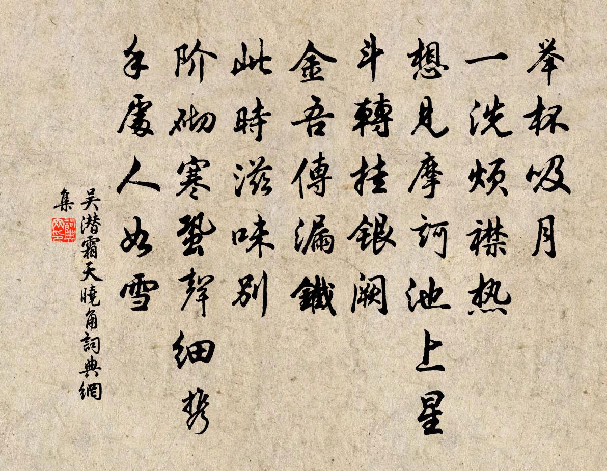 舉杯吸月。一洗煩襟熱。