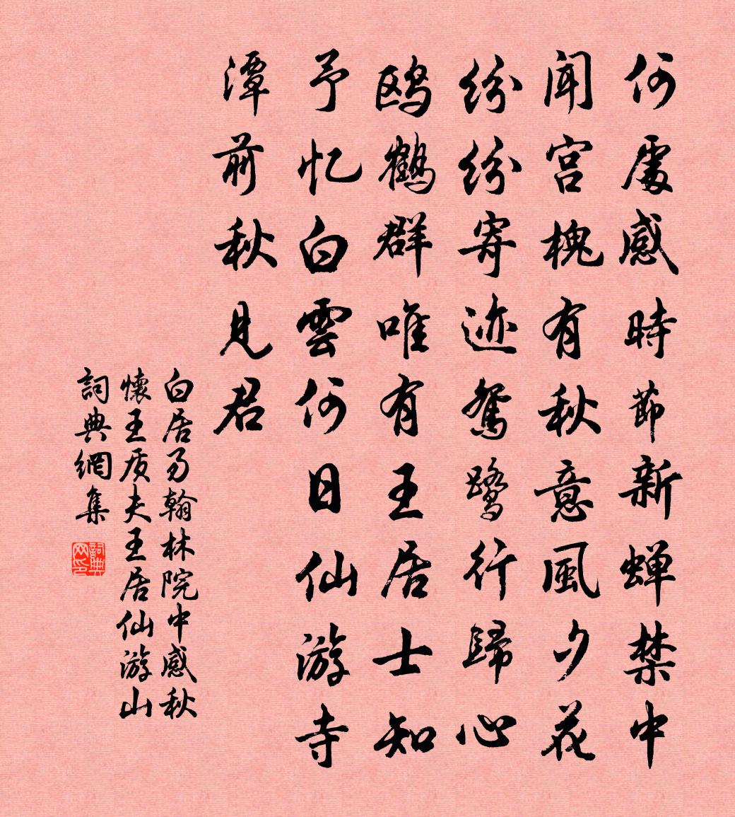 問:《翰林院中感秋懷王質夫 王居仙遊山。》的作者是誰?答:白居易