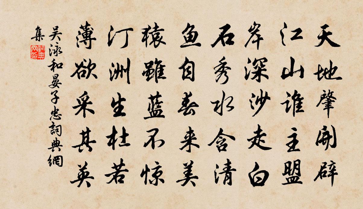詩詞名句歷史字典書法欣賞書法字典國語詞典說文解字康熙字典古漢語字典標 題 作 者 詩 句 和晏子忠作者:吳泳 朝代:宋代和晏子忠原文天地肇開闢,江山誰主盟。岸深沙走白,石秀水含清。魚自春來美,猿雖藍不驚。汀洲生杜若,薄欲采其英。詩詞問答問:和晏子忠的作者是誰?答:吳泳問:和晏子忠寫於哪個朝代?答:宋代吳泳和晏子忠書法欣賞和晏子忠書法作品詩詞推薦送王子文宰昭武真德秀〔宋代〕樵川古礫國,誰遣生榛菅。往事忍復言,念之輒長吸。子往字其人,寄任良亦艱。傷哉周余民,十室九孤鰥。深心橫溪回道中作強至〔宋代〕赤雲蔽層霄,旱日作炎酷。解帶蔭廣廈,膚汗發如沐。世無廣寒宮,何地避蒸溽。嗟嗟尚未已,里胥報甚速。雲有上韋左相二十韻(見素)杜甫〔唐代〕鳳歷軒轅紀,龍飛四十春。八荒開壽域,一氣轉洪釣。霖雨思賢佐,丹青憶老臣。(原註:公之先人,遺風餘烈,次韻子瞻游徑山蘇轍〔宋代〕去年渡江愛吳山,忽忘蜀道輕秦川。錢塘後到山最勝,下枕湖水相縈旋。坐疑吳會無復有,扁舟屢出凌濤淵。今秋馬上口占強至〔宋代〕出郭塵埃少,驅車節物便。歸心忘澤國,病眼豁霜天。鳥雀飛荒圃,牛羊臥晚田。吟邊搖落意,疏木起孤煙。清平樂韋莊〔唐代〕綠楊春雨,金線飄千縷。花拆香枝黃鸝語,玉勒雕鞍何處。碧窗望斷燕鴻,翠簾睡眼溟濛。寶瑟誰家彈罷,含悲斜送鄔文伯歸侍臨川二首史彌寧〔宋代〕易學寥寥一線然,誰人口裡說先天。近來惟有朴齋老,白首焚薌尚草玄。歲庚午予過來鳳驛觀壁間碑刻火池事嘗賦詩今李流謙〔宋代〕東西燕鴻長差池,二十五年車載脂。觀河性在故應爾,化鶴人歸空自疑。年來於道覺差近,此心頗已忘欣慍。吾兒答楊尚書柳棠〔唐代〕未向燕台逢厚禮,幸因社會接餘歡。一魚吃了終無愧,鵾化為鵬也不難。生查子毛滂〔宋代〕花地錦斑殘,月箔波凌亂。鬥鴨玉闌旁,撲獸金爐畔。小醉奈春何,輕夢催雲散。卻步蕙蘭中,應被鴛鴦見。湖陰曲蘇轍〔宋代〕老虎穴中臥,獵夫不敢窺。驊騮服箱驂盜驪,巡城三匝漫不知。帳中晝夢日繞壁,驚起知是黃須兒。馬鞭七寶留道天柱山王宗賢〔宋代〕擎天一柱出群峰,時見真仙隱化中。瑞應中都成福地,伯元主宰有神功。梁廣畫花歌顧況〔唐代〕王母欲過劉徹家,飛瓊夜入雲輧車。紫書分付與青鳥,卻向人間求好花。上元夫人最小女,頭面端正能言語。手把暮秋陸游〔宋代〕九月山村已驟寒,看雲殊怯倚闌乾。一杯濁酒栽培睡,不覺春雷起鼻端。丹青閣徐璣〔宋代〕翠靄空霏忽有無,筆端誰著此工夫。溪山本被人圖畫,卻道溪山是畫圖。虞美人(寄李公定)王千秋〔宋代〕流蘇斗帳泥金額。我亦花前客。謫仙標韻勝瓊枝。一詠一觴、常是得追隨。自從風借雲帆便。冷落青樓宴。石橋風和將志父春風亭韻李曾伯〔宋代〕誰能草檄愈頭風,有酒時時共一中。莫把丹青羨蘇武,且將玄白玩揚雄。將軍事在龍荒北,客子心馳馬首東。休笑催發諸邑民兵至朝邑縣官未至遂宿其驛李復〔宋代〕羸馬趨程晚,衝風雪滿衣。城荒更鼓暗,市冷吏民稀。烏壘兵初起,河橋客未歸。北行殊未已,拜檄寸心違。求志書院詩四首陳師道履常之所居也李廌〔宋代〕漆開辭未信,顏回恃有回。為貧仕何媿,得已非自賢。破褐坐窮閻,聲華飛日邊。苦節勿匏瓜,仲尼任蒼天。高陽台(陳君衡游未還,周公謹有懷人之賦,倚歌和之)王沂孫〔宋代〕駝褐輕裝,狨韉小隊,冰河夜渡流澌。朔雪平沙,飛花亂拂蛾眉。琵琶已是淒涼調,更賦情、不比當時。想如今,名句推薦禁里疏鍾官舍晚,省中啼鳥吏人稀。王維《酬郭給事 / 贈郭給事》 水墨畫疏窗,孤影淡瀟湘。納蘭性德《木蘭花慢·立秋夜雨送梁汾南行》 笑指吾廬何處是?一池荷葉小橋橫。陳繼儒《浣溪沙·初夏夜飲歸》 月明船笛參差起,風定池蓮自在香。秦觀《納涼》 自昔佳人多薄命,對古來、一片傷心月。辛棄疾《賀新郎·用前韻送杜叔高》 登高壯觀天地間,大江茫茫去不還。李白《廬山謠寄盧侍御虛舟》 不親仁,無限害,小人進,百事壞。李毓秀《弟子規·親仁》 雪粉華,舞梨花,再不見煙村四五家。關漢卿《大德歌·冬景》 君子和而不流;強哉矯。中立而不倚;強哉矯。國有道,不變塞焉;強哉矯。國無道,至死不變;強哉矯。子思《中庸·第十章》 人迷洞庭水,雁度瀟湘煙。李白《郢門秋懷》