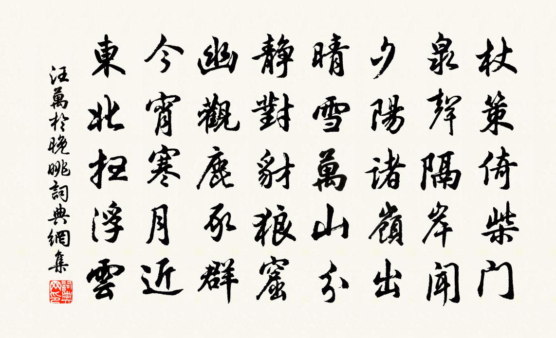 詩詞名句歷史字典書法欣賞書法字典國語詞典說文解字康熙字典古漢語字典標 題 作 者 詩 句 晚眺作者:汪萬於 朝代:唐代晚眺原文杖策倚柴門,泉聲隔岸聞。夕陽諸嶺出,晴雪萬山分。靜對豺狼窟,幽觀鹿豕群。今宵寒月近,東北掃浮雲。詩詞問答問:晚眺的作者是誰?答:汪萬於問:晚眺寫於哪個朝代?答:唐代汪萬於晚眺書法欣賞晚眺書法作品注釋全唐詩:卷473-25詩詞推薦致政李祠部鄭獬〔宋代〕尊酒還成世外名,二千石印一毫輕。驥雖老去壯心伏,鶴自病來仙骨清。林下已能忘歲月,人間何必仕公卿。淮揚書寓舍壁陸游〔宋代〕天與痴頑不解愁,未埋病骨且閒遊。山於拄杖橫時看,路到芒鞋 * 休。初擬燒丹住南嶽,卻因學劍客西州。秋風拜嚴方范祠趙蕃〔宋代〕東都重風節,先生實啟之。有士蓋如此,不拯家國危。乃知大廈傾,未易一木支。我讀黨錮傳,涕流每交頤。往來春盡章甫〔宋代〕晝永花陰直,風輕麥浪勻。僧歸還逼夏,鶯語欲留春。鬚髮垂垂老,親朋往往貧。地偏人事少,聊以寄吾真。拈古十四首釋法薰〔宋代〕大家在這裹,廓徹無依倚。有口難分疏,凍破一雙耳。春晚陸游〔宋代〕村巷泥深晝掩門,倚闌搔首一消魂。花經風雨人方惜,士在江湖道更尊。擘浪忽看魚對躍,入雲時見鶴孤騫。向來詠金橘蘇簡〔宋代〕小小根栽出近□,□□繁實傲秋天。恍如列宿掛庭樹,幾誤飢兒逐彈圓。荔子甘香欲爭席,赤心粗俗敢差肩。飲仙癸卯立秋後一日鑿井竹間張鎡〔宋代〕茲歲苦告晹,旱熯彌五旬。老火秋益焚,陽螭燎朱鱗。小寢屢亭午,床移瞰墀垠。迎南有風到,汛掃方無塵。髯奴池上作王禹偁〔宋代〕未遂滄洲去,池邊弄綠波。醉浮船底兀,吟遶履痕多。靜照新華發,沉思舊釣蓑。晚涼得幽趣,魚戲上圓荷。春雪和譚知縣韻酬北枝劉黻〔宋代〕雪到南邊不論春,倚闌萬象縱橫陳。糢糊世界山川老,軒豁人心宇宙新。鏡沼窺鸞應眩眼,藍關擁馬最傷神。功名偈頌二十五首釋如淨〔宋代〕金剛王寶劍在匣,有望風不犯之威。天童喝下飛出,變作無孔鐵鎚。輥入荒田亂草,任教日炙風吹。拈匙把箸知多觀鶴虞儔〔宋代〕仙格孤高老始成,臨池愛刷羽毛輕。未看月下婆娑舞,且聽風前嘹唳聲。向人自在有真態,伴我官間無俗情。少待春暮思平泉雜詠二十首書樓晴望李德裕〔唐代〕幽居人世外,久厭市朝喧。蒼翠連雙闕,微茫認九原。殘紅映鞏樹,斜日照轘轅。薄暮柴扉掩,誰知仲蔚園。久雨遣餉王新班馬廷鸞〔宋代〕舍南舍北水漫漫,乍霽仍陰暖復寒。石補色天原有漏,泥污后土不曾乾。龍蛇起陸生光怪,鸞鳳翀霄怯羽翰。聊復地震蒲松齡〔清代〕康熙七年六月十七日戌刻,地大震。余適客稷下,方與表兄李篤之對燭飲。忽聞有聲如雷,自東南來,向西北去。壺中天慢張掄〔宋代〕洞天深處賞嬌紅,輕玉高張雲幕。國艷天香相競秀,瓊苑風光如昨。露洗妖妍,風傳馥郁,雲雨巫山約。春濃如酒元夕方岳〔宋代〕茅屋相看冷似冰, * 孤坐澹於僧。數行老墨閒居賦,一炷寒燈耐久朋。時異不供三太息,吾衰何啻百無能。後山自諷吳融〔唐代〕本是滄洲把釣人,無端三署接清塵。從來不解長流涕,也渡湘漓作逐臣。達磨祖師贊釋原妙〔宋代〕開旗展陣入梁邦,未睹天顏早已降。縱有神通難轉款,翩翩一葦渡長江。未離西乾,惡聲已布。面壁九年,一場敗自遣四首張耒〔宋代〕誰雲造化本無情,利害乘除理甚平。莫逐眾情生慍喜,君看三四孰虧盈。名句推薦相思相見知何日?此時此夜難為情!李白《三五七言 / 秋風詞》 滄浪之水清兮,可以濯我纓;佚名《滄浪歌》 細雨春蕪上林苑,頹垣夜月洛陽宮。陸游《書憤五首·其二》 正是浴蘭時節動。菖蒲酒美清尊共。歐陽修《漁家傲·五月榴花妖艷烘》 一種相思,兩處閒愁。李清照《一剪梅·紅藕香殘玉簟秋》 窮巷多怪,曲學多辯。商鞅《商君書·更法》 長記別伊時,和淚出門相送。李存勖《如夢令·曾宴桃源深洞》 九日登高處,群山入望賒。趙時春《原州九日》 蘭帳玉人睡覺,怪春衣、雪沾瓊綴。章楶《水龍吟·燕忙鶯懶芳殘》 山色遙連秦樹晚,砧聲近報漢宮秋。韓翃《同題仙遊觀》