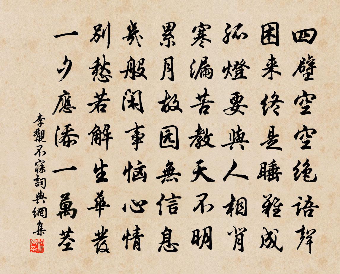 詩詞名句歷史字典書法欣賞書法字典國語詞典說文解字康熙字典古漢語字典標 題 作 者 詩 句 不寐作者:李覯 朝代:宋代不寐原文四壁空空絕語聲,困來終是睡難成。孤燈要與人相背,寒漏苦教天不明。累月故園無信息,幾般閒事惱心情。別愁若解生華髮,一夕應添一萬莖。詩詞問答問:不寐的作者是誰?答:李覯問:不寐寫於哪個朝代?答:宋代李覯不寐書法欣賞不寐書法作品詩詞推薦壽放翁趙汝淳〔宋代〕問訊山陰老放翁,年來心事與誰同。疏疏翠竹欹明月,落落黃花立晚風。鬢雪只緣詩送白,臉霞不是酒留紅。君王頌一百則釋重顯〔宋代〕去卻一,拈得七,上下四維無等匹。徐行踏斷流水聲,縱觀寫出飛禽跡。草茸茸,煙羃羃,空生岩畔花狼藉。彈指正仲思歸作篆畦今夜月十詩非篆畦月乃雁蒼月舒岳祥〔宋代〕篆畦今夜月,特地向人明。海驛催傳箭,荒雞誤報更。平生大敵勇,末暮小詩行。老矣今安用,深杯送此生。復聞杜鵑李呂〔宋代〕憶到旴江聞子規,五更自在勸人歸。而今俄起蓴鱸念,不為山禽說是非。代二螫解嘲黃庭堅〔宋代〕仙儒昔日卷龜殼,蛤蜊自可洗愁顏。不比二螫風味好,那堪把酒對西山。十一月四日風雨大作二首·其二陸游〔宋代〕僵臥孤村不自哀,尚思為國戍輪台。夜闌臥聽風聽雨,鐵馬冰河入夢來。宿池州齊山寺,即杜牧楊萬里〔宋代〕我來秋浦正逢秋,夢裡重來似舊遊。風月不供詩酒債,江山長管古今愁。謫仙狂飲顛吟寺,小杜倡情冶思樓。問著梅使君守橫浦擒寇閔雨劉黻〔宋代〕猛虎久負嵎,吞噬草木痏。流毒烈贛吉,一呼蜂蝟起。老天福黔黎,雪村鎮梅壘。指授討捕略,前驅謝張李。火箭賦陳太史所築凌雲亭四首劉宰〔宋代〕身自蓬萊頂上來,彩雲深處見崔嵬。憑高莫作凌雲想,聞說天門有詔華。陶弓手棄役入道白玉蟾〔宋代〕青黑文身志氣豪,生擒六賊脫塵勞。當年尚有彎弓手,射殺三屍入大羅。洗腳亭李白〔唐代〕白道向姑熟,洪亭臨道傍。前有昔時井,下有五丈床。樵女洗素足,行人歇金裝。西望白鷺洲,蘆花似朝霜。送君自合江亭過渡觀趙穆仲園亭何耕〔宋代〕喚舟芳草渡,擊馬綠楊陰。步入莓苔徑,門開花竹林。王孫隨牒遠,婺女隱雲深。想見西南望,悠悠空賞心。烏夜啼(八之二)陸游〔宋代〕檐角楠陰轉日,樓前荔子吹花。鷓鴣聲里霜天晚,疊鼓已催衙。鄉夢時來枕上,京書不到天涯。邦人訟少文移省,送子威史歸邵怒曹勛〔宋代〕閩浙相望一寸心,鴒原落寞嘆孤音。五年情話空相憶,千里閒門肯見尋。只擬連床常對語,豈堪垂老更分襟。它時雜興四首蘇泂〔宋代〕滿地秋聲鼓吹同,草根無賴更寒蛩。情知萬事終搖落,忍見霖林一葉紅。讀易方翥〔宋代〕晝出陽關已斷腸,那堪真別更淒涼。痴人刻水方求劍,一息舟行過夜郎。扈蹕霸州納蘭性德〔清代〕霸山重鎮奠神京,鸞輅春遊淑景明。萬呱銀濤沖古岸,四圍玉甃護嚴城。花乘暖日迎來騎,柳帶新膏綰去旌。八寨七十二冢范成大〔宋代〕一棺何用冢如林,誰復如公負此心。聞說群胡為封土,世間隨事有知音。雨後雪陳著〔宋代〕深山雨易雪,片大不成花。翁媼熱摩面,兒童寒戰牙。如居峨頂寺,休問洛陽花。宜麥今雖兆,明年事未涯。挽分水柳溪何處士二首方回〔宋代〕太學師名士,初逾志學年。樹蘐竭甘旨,肯室擅林泉。盜踵兵戈起,家並里社全。陳蕃舊懸榻,惜未致斯賢。名句推薦馬嘶芳草遠,高摟簾半掩。顧敻《醉公子·岸柳垂金線》 兩鬢可憐青,只為相思老。晏幾道《生查子·關山魂夢長》 望家思獻壽,算甲恨長年。歐陽詹《除夜長安客舍》 人歸山郭暗,雁下蘆洲白。韋應物《夕次盱眙縣》 驚鳥去無際,寒蛩鳴我傍。馬戴《楚江懷古三首》 晝成淒黯,雁飛過、垂楊轉青。吳文英《慶 * ·秋感》 長夏村墟風日清,檐牙燕雀已生成。張耒《夏日三首·其一》 守節自誓,親誨之學。歐陽修《畫地學書》 水中可居者曰洲,小洲曰陼,小陼曰沚,小沚曰坻。佚名《爾雅·釋水》 離離原上草,一歲一枯榮。白居易《草 / 賦得古原草送別》