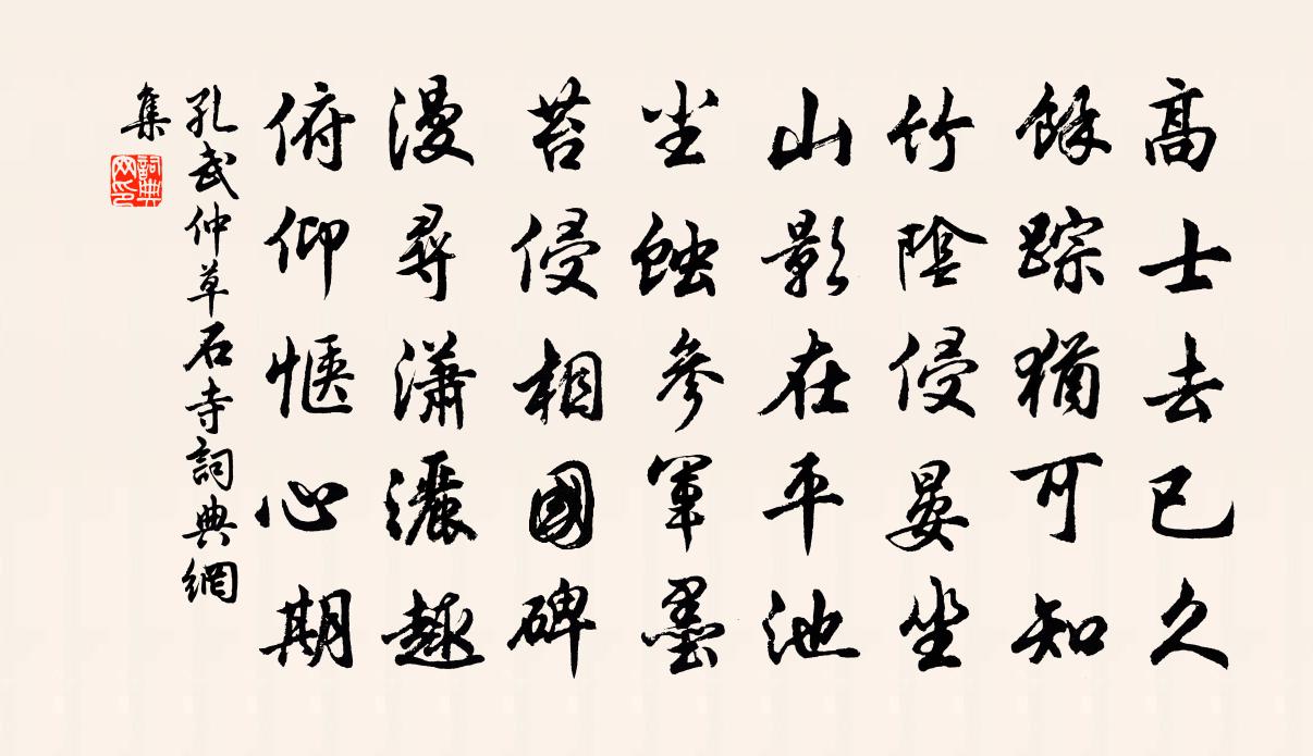 詩詞名句歷史字典書法欣賞書法字典國語詞典說文解字康熙字典古漢語字典標 題 作 者 詩 句 草石寺作者:孔武仲 朝代:宋代草石寺原文高士去已久,余蹤猶可知。竹陰侵晏坐,山影在平池。塵蝕參軍墨,苔侵相國碑。漫尋瀟灑趣,俯仰愜心期。詩詞問答問:草石寺的作者是誰?答:孔武仲問:草石寺寫於哪個朝代?答:宋代孔武仲草石寺書法欣賞草石寺書法作品詩詞推薦和九兄古梅蘇泂〔宋代〕處女何因發半華,一生藍縷在貧家。冷灰豆爆真奇事,枯樹中間忽數花。游寧國奉聖寺范成大〔宋代〕松梢台殿郁高標,山轉溪回一水朝。不惜褰裳呼小渡,夜來春漲失浮橋。西齋劉克莊〔宋代〕西齋殘月上窗扉,猶記挑燈共撚髭。欲見阿連惟有夢,老人無夢亦無詩。洞仙歌佚名〔宋代〕雲車鶴蓋,三島朝元後。綠意紅情在梅柳。想仙風從碧落次,吹得春來甘泉,喜見顏紅宇秀。承明厭直,小憩苹洲送胡仲方劉過〔宋代〕鄭公懷在仙何恨,劉毅家寒淚一揮。窮達莫言鄉義重,此行畢竟是耶非。謝圓機送梅晁說之〔宋代〕何事新梅度玉溪,應憐泯默與詩題。少年曾賦宋開府,老大無如羯鼓迷。約家性存牟巘五〔宋代〕春風小語記懷岷,二十年中臂屈伸。自發遺民幾人在,重來老鶴更精神。歸赴行在過上竺寺偶題岳飛〔宋代〕強胡犯金闕,駐蹕大江南。一帝雙魂杳,孤臣百戰酣。兵威空朔漠,法力仗瞿曇。恢復山河日,捐軀分亦甘。耿曼老自去秋起歸興以被旨捄荒方有行色來告吳芾〔宋代〕去秋已作送君詩,豈意淹留復許時。端為九重憂歲歉,故令六轡緩歸期。萬人全活俱安業,二麥收成足療飢。此事寄襄陽觀徐師宋祁〔宋代〕日夕高陽釂羽杯,琳房岑寂外塵埃。山庭桂老幽人住,天陸星翻處士回。珍樹暝猿侵戶嘯,碧潭仙菊照窗開。箕風題楊山人隱居唐求〔唐代〕深山道者家,門戶帶煙霞。綠綴沿岩草,紅飄落水花。半庭栽小樹,一徑掃平沙。往往溪邊坐,持竿到日斜。不知夢梅堯臣〔宋代〕夢中不知夢,但謂平常時。相與共笑言,焉問久別離。有贈若有得,及覺已失之。人生在世間,何異夢寐為。送直館高正言轉運荊湖王禹偁〔宋代〕象笏烏紗諫署榮,運輸權重使蠻荊。職分三館圖書貴,地轄重湖水石清。貪吏望風潛解印,逋民知惠自歸耕。官曹自夏口至鸚鵡洲夕望岳陽寄源中丞劉長卿〔唐代〕汀洲無浪復無煙,楚客相思益渺然。漢口夕陽斜渡鳥,洞庭秋水遠連天。孤城背嶺寒吹角,獨戍臨江夜泊船。賈誼句王奇〔宋代〕不拜春官為座主,親逢天子作門生。題平望驛張祜〔唐代〕一派吳興水,西來此驛分。路遙經幾日,身去是孤雲。雨氣朝忙蟻,雷聲夜聚蚊。何堪秋草色,到處重離群。自勉方回〔宋代〕有路今平坦,無心復怪奇。盡嘗艱苦後,始到老成時。細讀驚前誤,精思決舊疑。端能吾事了,可用此曹知。示沙彌釋大觀〔宋代〕維衛芳騰蔓愈滋,花花葉葉轉芬披。鄮峰酷烈較些子,曇萼翻成鐵蒺藜。喜遷鶯佚名〔宋代〕物中雙美。惟鄴縣雙鳧,禹門雙鯉。太華雙蓮,藍田雙璧,劍豐城而已。爭是一門雙秀,又是一朝雙喜。人總道,水龍吟(寓興和巽吾韻)劉辰翁〔宋代〕何須銀燭紅妝,菜花總是曾留處。流觴事遠,繞樑歌斷,題紅人去。繞蝶東牆,啼鶯修竹,疏蟬高樹。嘆一春風雨名句推薦粉黛暗愁金帶枕,鴛鴦空繞畫羅衣,那堪辜負不思歸!顧敻《浣溪沙·雲淡風高葉亂飛》 十年無夢得還家,獨立青峰野水涯。謝枋得《武夷山中》 嘆鳳嗟身否,傷麟怨道窮。李隆基《經鄒魯祭孔子而嘆之》 今逢四海為家日,故壘蕭蕭蘆荻秋。劉禹錫《西塞山懷古》 君臣無禮,而上下無別。劉向《戰國策·齊六·貂勃常惡田單》 別路琴聲斷,秋山猿鳥吟。盧照鄰《送梓州高參軍還京》 貧居往往無煙火,不獨明朝為子推。孟雲卿《寒食》 老子有見於詘,無見於信。荀子《荀子·天論》 為害常因不察,致禍歸於不忍。來俊臣《羅織經·閱人卷第一》 雲山行處合,風雨興中秋。高適《送魏八》