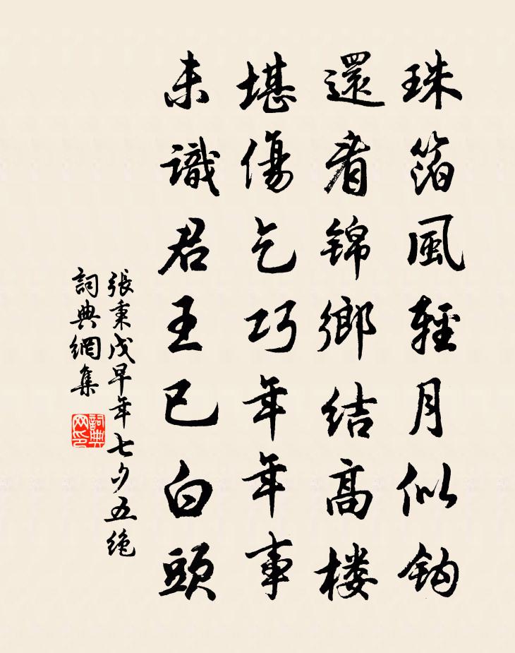 詩詞名句歷史字典書法欣賞書法字典國語詞典說文解字康熙字典古漢語字典標 題 作 者 詩 句 戊早年七夕五絕作者:張秉 朝代:宋代戊早年七夕五絕原文珠箔風輕月似鉤,還看錦鄉結高樓。堪傷乞巧年年事,未識君王已白頭。詩詞問答問:戊早年七夕五絕的作者是誰?答:張秉問:戊早年七夕五絕寫於哪個朝代?答:宋代張秉戊早年七夕五絕書法欣賞戊早年七夕五絕書法作品詩詞推薦上桂州李大夫戎昱〔唐代〕今日辭門館,情將眾別殊。感深翻有淚,仁過曲憐愚。晚鏡傷秋鬢,晴寒切病軀。煙霞萬里闊,宇宙一身孤。倚馬題棺木朱貞白〔宋代〕久久終須要,而今未要君。有時閒憶著,大是要知聞。晚臥張耒〔宋代〕日落煩暑退,秋晴河漢明。微雲映天白,纖月過林清。獨臥誰晤語,幽懷殊未平。蕭蕭夜深冷,皓露滿前楹。送薛耽先輩歸謁漢南趙嘏〔唐代〕雲繞千峰驛路長,謝家聯句待檀郎。手持碧落新攀桂,月在東軒舊選床。幾日旌幢延駿馬,到時冰玉動華堂。孔門偈頌一百三十六首釋惟一〔宋代〕秋風捲地,秋水連天。千山影瘦,萬木蕭然。漁笛數聲江上月,樵歌一曲嶺頭煙。絕句呂岩〔唐代〕捉得金晶固命基,日魂東畔月華西。於中煉就長生藥,服了還同天地齊。莫怪瑤池訊息稀,只緣塵事隔天機。若人用洪覺范詩為首作四絕趙蕃〔宋代〕剩水殘山慘澹間,道人名字滿江千。向疑此語來天上,何意真成朝暮看。雁杜牧〔唐代〕萬里銜蘆別故鄉,雪飛雨宿向瀟湘。數聲孤枕堪垂淚,幾處高樓欲斷腸。度日翩翩斜避影,臨風一一直成行。年年微雨李商隱〔唐代〕初隨林靄動,稍共夜涼分。窗迥侵燈冷,庭虛近水聞。初至葉縣黃庭堅〔宋代〕白鶴去尋王子晉,真龍得慕沈諸梁。千年往事如飛鳥,一日傾愁對夕陽。遺老能名唐郡邑,斷碑猶是晉文章。浮雲頌古二十四首釋宗演〔宋代〕九旬禁足精修,今朝休夏自恣。山僧不敢自瞞,於中罪過有五。一不合說大脫空,二不合拋沙撒土。三不合將龍眼絕句二首劉克莊〔宋代〕浮榮已是卿慚長,勇退猶稱相避賢。先帝賜金揮未盡,不應全仰作碑錢。閏九月重九與父老小飲四絕蘇轍〔宋代〕尉佗城下兩重陽,白酒黃雞意自長。卯飲下床虛已散,老年不似少年忙。同官游赤松二首姜特立〔宋代〕今朝乘興出林坰,商略天公未肯晴。日色忽收梅氣潤,山光便挾麥風清。柳湖席上呈夏宮苑鄭獬〔宋代〕千條萬條楊柳絲,好花不過三兩枝。今日樽前為君飲,明朝酒病終不辭。望江南李綱〔宋代〕新雨足,一夜滿南塘。禾更稻向成初吐秀,芰荷雖敗尚余香。爽氣入軒窗。澄霽後,遠岫更青蒼。兩部蛙聲鳴鼓吹謝君寄一犁春雨圖求詩為作絕句陸游〔宋代〕說著功名我自羞,喜君解劍換吳牛。莫將江上一犁雨,輕博人間萬戶侯。杏花王安石〔宋代〕垂楊一徑紫苔封,人語蕭蕭院落中。獨有杏花如喚客,倚牆斜日數枝紅。寄胡山甫舒岳祥〔宋代〕梅梢殘雨知頭數,溪上無風麥自青。遲子不來還獨臥,踏檐啼鳥喚入醒。暮春言懷寄浙東轉運黃工部釋簡長〔宋代〕花落前林春又殘,舍深蒼蘚擁柴關。十年霜雪獨為客,萬里夢魂空到山。溪竹舊憐同性直,嶺雲終約伴身間。遙思名句推薦夢後樓台高鎖,酒醒簾幕低垂。晏幾道《臨江仙·夢後樓台高鎖》 人情反覆,世路崎嶇。洪應明《菜根譚·概論》 江山留勝跡,我輩復登臨。孟浩然《與諸子登峴山》 惜分長怕君先去,直待醉時休。賀鑄《眼兒媚·蕭蕭江上荻花秋》 為奏薰琴唱,仍題寶劍名。張九齡《奉和聖制送尚書燕國公赴朔方》 以正治國,以奇用兵,以無事取天下。老子《老子·德經·第五十七章》 三杯兩盞淡酒,怎敵他、晚來風急?李清照《聲聲慢·尋尋覓覓》 戰士軍前半死生,美人帳下猶歌舞。高適《燕歌行》 輕淘起,香生玉塵,雪濺紫甌圓。米芾《滿庭芳·詠茶》 衣帶漸寬終不悔,為伊消得人憔悴。柳永《蝶戀花·佇倚危樓風細細》