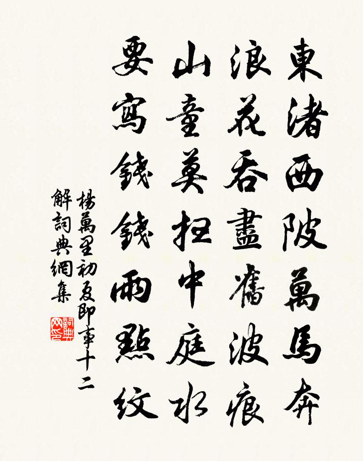 東渚西陂萬馬奔,浪花吞盡舊波痕。山童莫掃中庭水,要寫錢錢雨點紋。