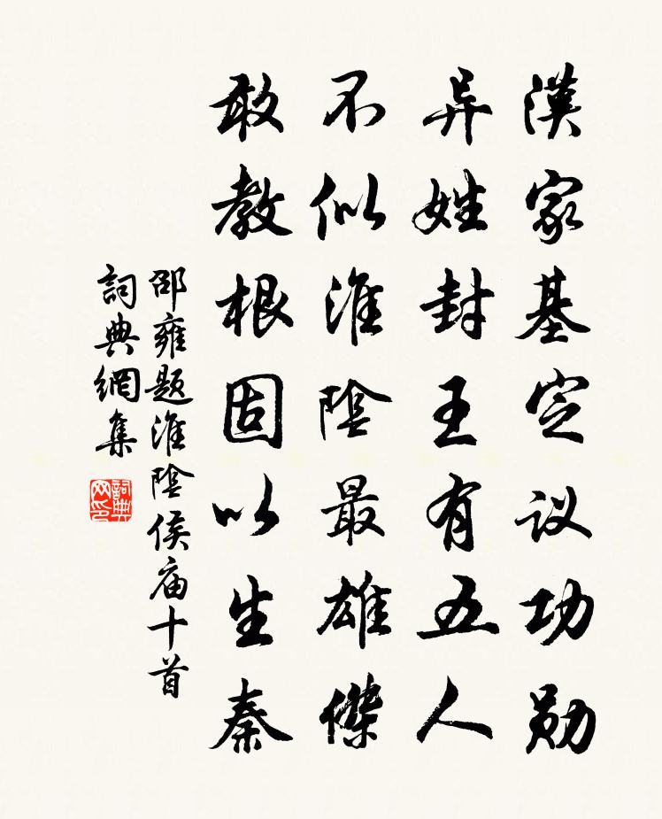 詩詞名句歷史字典書法欣賞書法字典國語詞典說文解字康熙字典古漢語字典標 題 作 者 詩 句 題淮陰侯廟十首作者:邵雍 朝代:宋代題淮陰侯廟十首原文漢家基定議功勳,異姓封王有五人。不似淮陰最雄傑,敢教根固以生秦。詩詞問答問:題淮陰侯廟十首的作者是誰?答:邵雍問:題淮陰侯廟十首寫於哪個朝代?答:宋代邵雍題淮陰侯廟十首書法欣賞題淮陰侯廟十首書法作品詩詞推薦寄南山簡行古釋行海〔宋代〕澗畔梅花似杏紅,思君日日對春風。扁舟甚欲來相訪,聞道身長在定中。清平樂孫光憲〔唐代〕愁腸欲斷,正是青春半。連理分枝鸞失伴,又是一場離散掩鏡無語眉低,思隨芳草淒淒。憑仗東風吹夢,與郎終日臨江仙曹伯啟〔元代〕水出五穀成一派,滔滔日夜東流。倦乘鞍馬卻乘舟。向來危處怯,此去險中愁。伊軋數聲離岸櫓,異鄉身世悠悠。三月三日,自京到華陰,於水亭獨酌,寄裴六、薛八獨孤及〔唐代〕祗役匪遑息,經時客三秦。還家問節候,知到上巳辰。山縣何所有,高城閉青春。和風不吾欺,桃杏滿四鄰。舊友壽友人林仲喬李劉〔宋代〕十分國艷貪春暖,一簇芳心襯曉霞。送與生朝添壽斝,洛陽年少洛陽花。送明甫赴銅鉛場六言七首劉克莊〔宋代〕鹽鐵論兒讀否,聚斂臣子攻之。公卿大夫民賊,賢良文學汝師。虞美人葉夢得〔宋代〕數聲微雨風驚曉。燭影猗殘照。客愁不奈五更寒。明日梨花開盡、有誰看。追尋猶記清明近。為向花前問。東風正博山台黃庭堅〔宋代〕宮亭只說香爐峰,此地今見博山台。紫煙孤起麗朝日,定是海山飛得來。化工造物能神奇,不必驚世出蓬萊。千來夏迪簡都倉輓詞戴栩〔宋代〕新地難平進,倉官不厭卑。恨無終歲壽,名有上臣知。事業空流水,科名在墓碑。兒能起門戶,何止繼前基。僧求詩往平江王洋〔宋代〕一瓶一缽遠山寒,野路梅花已向殘。自古吳門十萬戶,莫疑開口告人難。龍女泉陳岩〔宋代〕祖師正渴山頭水,龍女俄分海眼泉。萬事不離無始劫,千年賸結未來緣。周彥廣待制輓詞韓元吉〔宋代〕淮海歡騰五袴歌,政聲京光益中和。鄴侯井在功堪紀,鄭國渠成利更多。紫禁遄躋知異眷,珍台歸臥本微疴。功名好事近(登梅仙山絕頂望海·十二之八)陸游〔宋代〕揮袖上西峰,孤絕去天無尺。拄杖下臨鯨海,數煙帆歷歷。貪看雲氣舞青鸞,歸路已將夕。多謝半山松吹,解殷勤錦石擣流黃曹勛〔宋代〕秋風清,秋月明,征人思婦難為情。難為情,蟋蟀遠壁鳴寒聲,霜砧皓腕愁不勝。愁不勝,愁不可剪衣可成,夢君京口遇大風王珪〔唐代〕虹蜺赫奕射中天,怒竅風號勢塕然。雲翼扶摶彌九萬,海帆飛迅越三千。鯢噓駭浪時開闔,鰲負靈山或泝沿。安得李子儀喜津改秩作詩相慶因次韻吳芾〔宋代〕有屋依山復面湖,幽棲試問有誰如。門前更種千竿竹,堂上還堆萬卷書。每恨暮年方卜築,豈知今日得安居。鯉庭送英公大師歸終南盧岳〔宋代〕擬息遊方興,蘿龕近翠微,幾程勞夜夢,一錫向秋歸。月彩籠清磬,嵐光潤紫衣。重尋溪上路,楓葉下岩扉。雜言和常州李員外副使春日戲題十首權德輿〔唐代〕隨風柳絮輕,映日杏花明。無奈花深處,流鶯三數聲。蘭橈畫舸轉花塘,水映風搖路漸香。任興不知行近遠,更憐自河西歸山二首司空圖〔唐代〕一水悠悠一葉危,往來長恨阻歸期。鄉關不是無華表,自為多驚獨上遲。水闊風驚去路危,孤舟欲上更遲遲。鶴群潘貴妃徐鈞〔宋代〕寵冠天家十二樓,金蓮步步總嬌羞。可憐屠沽宮中樂,博得亡齊一段愁。名句推薦馬穿山徑菊初黃,信馬悠悠野興長。王禹偁《村行·馬穿山徑菊初黃》 劇辛樂毅感恩分,輸肝剖膽效英才。李白《行路難三首》 春思遠,誰嘆賞、國香風味。周密《繡鸞鳳花犯·賦水仙》 白毛浮綠水,紅掌撥清波駱賓王《詠鵝》 金陵子弟來相送,欲行不行各盡觴。李白《金陵酒肆留別》 念蘭堂紅燭,心長焰短,向人垂淚。晏殊《撼庭秋·別來音信千里》 聞之而不見,雖博必謬;見之而不知,雖識必妄;知之而不行,雖敦必困。荀子《荀子·儒效》 君寵益嬌態,君憐無是非。王維《西施詠》 煙霏雲斂;其容清明,天高日晶;歐陽修《秋聲賦》 當君懷歸日,是妾斷腸時。李白《春思》
