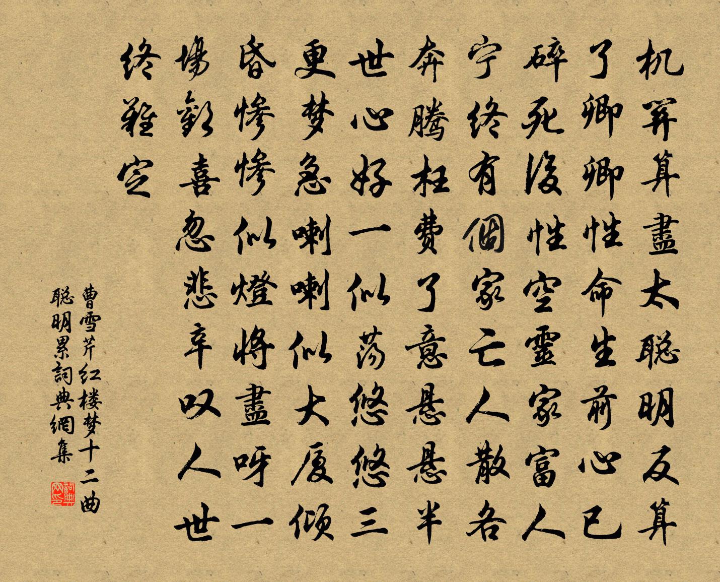 曹雪芹紅樓夢十二曲——聰明累書法欣賞