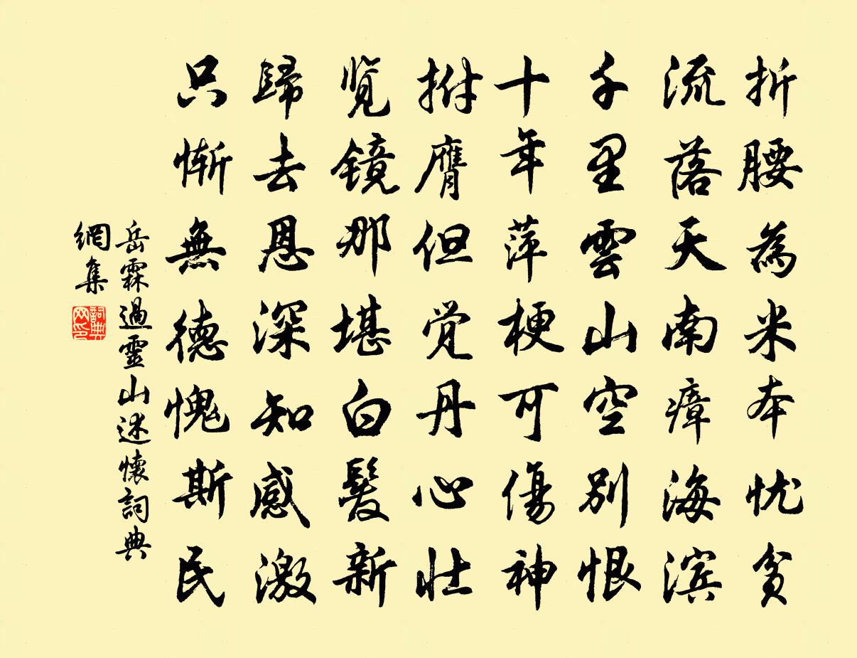 詩詞名句歷史字典書法欣賞書法字典國語詞典說文解字康熙字典古漢語字典標 題 作 者 詩 句 過靈山述懷作者:岳霖 朝代:宋代過靈山述懷原文折腰為米本憂貧,流落天南瘴海濱。千里雲山空別恨,十年萍梗可傷神。拊膺但覺丹心壯,覽鏡那堪白髮新。歸去恩深知感激,只慚無德愧斯民。詩詞問答問:過靈山述懷的作者是誰?答:岳霖問:過靈山述懷寫於哪個朝代?答:宋代岳霖過靈山述懷書法欣賞過靈山述懷書法作品詩詞推薦三月二十一日泛舟十絕劉克莊〔宋代〕稚子呼牛婦饁耕,早秧水足麥風清。老農喜極還垂涕,白首安知再太平。句姚西岩〔宋代〕根盤龍骨瘦,葉聳虎鬚長。題老融畫彌勒樓鑰〔宋代〕乘風欲去東南,回頭此意誰參。當時蹉過足庵,卻來攻愧同龕。梅花 其九王冕〔元代〕冷艷凝輕露,清香度晚風。如何冰玉質,卻學小桃紅?同楊方叔游開寶上方有懷裡中二三故人韓維〔宋代〕京都寡臨觀,茲地高且明。仲科一來望,曠然寫予情。千載豪傑盡,夷門荊棘生。時平盛民物,華屋連飛甍。長煙雜興三首鮮于侁〔宋代〕三王貴養老,取重在乞言。酒醴副佳淆,黃髮斯皤然。朝廷本忠厚,風俗亦變遷。豈意漢道微,侍中惟少年。耆舊題東高堂壁李新〔宋代〕主簿騎驢雲外去,山僧吹笛夢中來。行人不用重回首,自有東風播鳳台。感皇恩(雁汊泊舟作)呂勝己〔宋代〕秋意滿江湖,雨輕風熟,上水扁舟片帆速。遠山低岸,貪看淺紅深綠。不知回柁尾,滄灣宿。推枕起來,舉杯相屬已亥雜詩 247龔自珍〔清代〕鶴背天風墮片言,能蘇萬古落花魂。征衫不漬尋常淚,此是平生未報恩。送麴司直郎士元〔唐代〕曙雪蒼蒼兼曙雲,朔風煙雁不堪聞。貧交此別無他贈,唯有青山遠送君。法曲獻仙音(小石調)柳永〔宋代〕追想秦樓心事,當年便約,于飛比翼。每恨臨歧處,正攜手、翻成雲雨離拆。念倚玉偎香,前事頓輕擲。慣憐惜。臨江仙佚名〔宋代〕在世為仙須有分,不須素食持齊。寸絲不著掛形骸。蓑衣為伴侶,箬笠作家懷。行滿三千上界,奉敕宣至金台。傳和昭文相公上巳宴歐陽修〔宋代〕一雨初消九陌塵,秉蘭修禊及芳辰。恩深始錫龍池宴,節正須知鳳歷新。紅琥珀傳杯瀲灩,碧琉璃瑩水奫淪。上林墨菊張元乾〔宋代〕老眼驚花暗,斜枝落紙愁。晚來聞冷雨,幻出一籬秋。送陳雲崖儲泳〔宋代〕出門即遠道,君去有誰令。詩價侯門賤,時情客路輕。晚雲歸獨樹,寒雨暗荒城。此地還相別,誰能不動情。曉月未沒順風泛太湖期以明日與悅齋會程公許〔宋代〕明月酒伴我酒家眠酒,五更順酒風催放船酒。月波盪湖湖欲溢,扶桑奪染半天赤。湖山破曉郁青蒼,坐覺山與船低施過之見過二首趙蕃〔宋代〕鷺影投山背,蟬聲滿樹頭。千峰雪未釋,四野雨初周。甚矣厭余暑,欣然當早秋。半年才此見,一夕可辭留。遲日張耒〔宋代〕遲日花光亂,東風酒浪深。天道為客恨,老去惜春心。起舞狂猶在,悲歌病不禁。高樓見千里,不醉莫登臨。送陸務觀得倅鎮江還越韓元吉〔宋代〕高文不試紫雲樓,猶得聲名動九州。金馬漸登難避世,蓬萊已近卻回舟。燒城赤口知何事,許國丹心惜未酬。歸臥蘭陵僻居聯句李益〔唐代〕潘岳閒居賦,陶潛獨酌謠。二賢成往事,三徑是今朝。[廣宣]生幸逢唐運,昌時奉帝堯。進思諧啟沃,退混即漁名句推薦為惜故人去,復憐嘶馬愁。高適《送魏八》 望家思獻壽,算甲恨長年。歐陽詹《除夜長安客舍》 自有多情處,明月掛南樓。米芾《水調歌頭·中秋》 能行之者未必能言,能言之者未必能行。司馬遷《史記·孫子吳起列傳》 含愁獨倚閨幃,玉爐煙斷香微。毛熙震《清平樂·春光欲暮》 白髮戴花君莫笑,六么催拍盞頻傳。歐陽修《浣溪沙·堤上遊人逐畫船》 獨在異鄉為異客,每逢佳節倍思親。王維《九月九日憶山東兄弟 / 九月九憶山東兄弟》 穗帷飄井幹,樽酒若平生。謝朓《同謝諮議詠銅雀台》 一聲梧葉一聲秋,一點芭蕉一點愁,三更歸夢三更後。徐再思《水仙子·夜雨》 挽弓當挽強,用箭當用長。杜甫《前出塞九首》