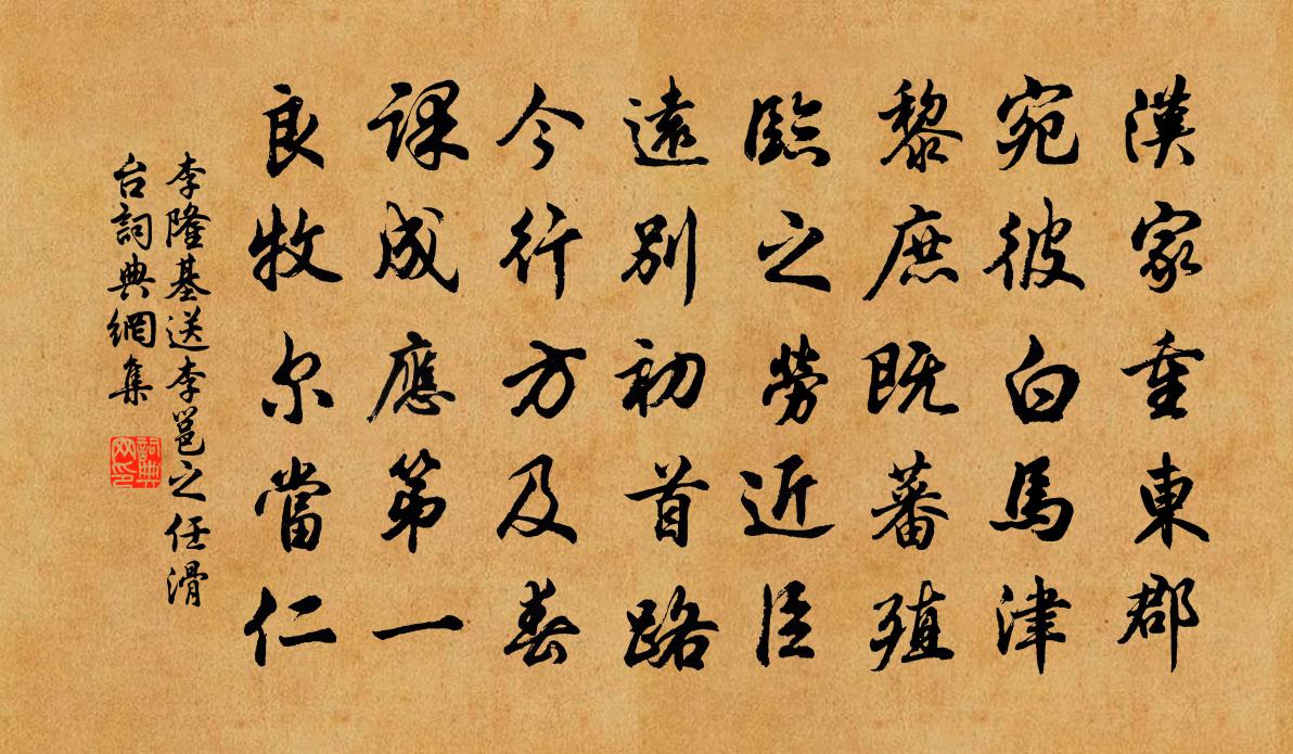 詩詞名句歷史字典書法欣賞書法字典國語詞典說文解字康熙字典古漢語字典標 題 作 者 詩 句 送李邕之任滑台作者:李隆基 朝代:唐代送李邕之任滑台原文漢家重東郡,宛彼白馬津。黎庶既蕃殖,臨之勞近臣。遠別初首路,今行方及春。課成應第一,良牧爾當仁。詩詞問答問:送李邕之任滑台的作者是誰?答:李隆基問:送李邕之任滑台寫於哪個朝代?答:唐代李隆基送李邕之任滑台書法欣賞送李邕之任滑台書法作品注釋全唐詩:卷3_6詩詞推薦泛舟分韻是橫字胡仲弓〔宋代〕艤舟迷近遠,鷗鷺許同盟。潮落沙仍漲,風晴浪不驚。一川平野秀,增嶺斷雲橫。後約何時再,吟篷臥月明。三月一日入襄州界先寄吳待制二首項安世〔宋代〕兒時夢到漢南州,四十頭顱未省游。此段風流愧人物,今年行役藉君侯。仲山甫有遺墟在,諸葛公存舊事不。欲借水殿采菱歌鮑溶〔唐代〕宮鴉叫赤光,潮聲入宮宮影涼。火華啼露卷橫塘,金堤四合宛柔揚。美人荷裙芙蓉妝,柔荑縈霧棹龍航。採蓮一聲太常引沈端節〔宋代〕三三五五短長亭。都只解、送人行。天遠樹冥冥。悵好夢、才成又驚。夜堂歌罷,小樓鍾斷,歸路已聞鶯。應是困長相思向滈〔宋代〕桃花堤。柳花堤。芳草橋邊花滿溪。而今戎馬嘶。千山西。萬山西。歸雁橫雲落日低。登樓望欲迷。挽內子郭燻〔宋代〕山嵬嵬兮日西,望吾侶兮不歸。惆悵兮階前,物換兮人非。春去兮花殘,春歸兮芳菲。老不可以再壯,君胡為而先三月三日雨作遣悶十絕句楊萬里〔宋代〕村落尋花特地無,有花亦自只愁予,不如臥聽春山雨,一陣繁聲一陣疏。造龕子釋普濟〔宋代〕病病相尋早是遲,鎖空龕子做多時。北邙山下明朝約,火後誰收眼底眉。夢仙謠三首王轂〔唐代〕前程漸覺風光好,琪花片片粘瑤草。有人遺我五色丹,一粒吞之後天老。青童遞酒金觴疾,列坐紅霞神氣逸。笑說游陽明一洞天呈王理得諸君戴表元〔宋代〕禹穴蒼茫不可探,人傳靈笈鎖煙嵐。初晴鶴點青邊峰,欲雨龍多黑處潭。北斗齋壇天寂寂,東風仙洞草毿毿。堪憐詠史上袁紹陳普〔宋代〕弟北兄南競效尤,鄴中半鄴半青州。身分家裂無全理,終使遼東送二頭。釣台徐德輝〔宋代〕歸把灘頭舊釣竿,帝王只作故人看。此身合向丘林著,漢祚已如磐石安。流水雹表千古在,客星有影九天寒。到頭香奩體陳允平〔宋代〕小院薰風滿,閒庭白晝長。靖蜓楊柳岸,鸂鶒芰荷塘。雲合朱檐卸,山高翠閣涼。蔓滋青薜荔,芽長紫良姜。簾幕和柴天休鄭舍人奉祠太一見懷之作宋庠〔宋代〕初啟冬冥琯,知祠毫忌壇。雲璈賡夜曲,瓊蕊供朝餐。真御扶飈遠,仙威抱斗寒。勞君懷晤語,此夕宿坡鑾。次韻弟觀留慈雲陳著〔宋代〕相攜入翠林,聊爾豁塵襟。恃熟出家話,得閒生梵心。涼多卻扇坐,睏倦把詩吟。試問虎溪上,多情如此深。思君子歌釋智圓〔宋代〕小人足諂媚,君子無猜忌。開口揄揚皆聖賢,滿腹包藏盡仁義。修辭復古振淳風,折檻觸鱗彰直氣。善世既不伐,偈頌十八首釋師體〔宋代〕粗疏帶出蓮花冼,濟楚披來糞掃衣。拈起少林無孔笛,左瞻右盼兩頭吹。聲聲慢,拍拍隨,聽者雖多和者稀。曲遍與潯陽舍弟別梅堯臣〔宋代〕昭亭潭上水,下與九江通。去客解輕舸,落潮乘順風。回頭迷遠樹,沒背見飛鴻。寂寞還蓬巷,桓彝宅近東。園步雜興張鎡〔宋代〕無風寒色自淒迷,晚日低籠一徑微。竹里鳩藏初未覺,小車行過忽橫飛。女墳湖(即吳王葬女之所)皮日休〔唐代〕萬貴千奢已寂寥,可憐幽憤為誰嬌。須知韓重相思骨,直在芙蓉向下消。名句推薦湘淚淺深滋竹色,楚歌重疊怨蘭叢。李商隱《潭州》 春閨月,紅袖不須啼。元好問《江月晃重山·初到嵩山時作》 天若不愛酒,酒星不在天。李白《月下獨酌四首》 午枕夢初殘,高樓上,獨憑闌乾。朱栴《青杏兒·秋》 海燕歲微渺,乘春亦暫來。張九齡《歸燕詩》 過眼年華,動人幽意,相逢幾番春換。王沂孫《法曲獻仙音·聚景亭梅次草窗韻》 西湖又還春晚,水樹亂鶯啼。仲殊《訴衷情·寶月山作》 不違農時,谷不可勝食也孟子《孟子·梁惠王章句上·第三節》 雲壓西村茅舍重,怕他榾柮同燒。陳維崧《臨江仙·寒柳》 日間不做虧心事,半夜敲門不吃驚。馮夢龍《喻世明言·卷三十八》