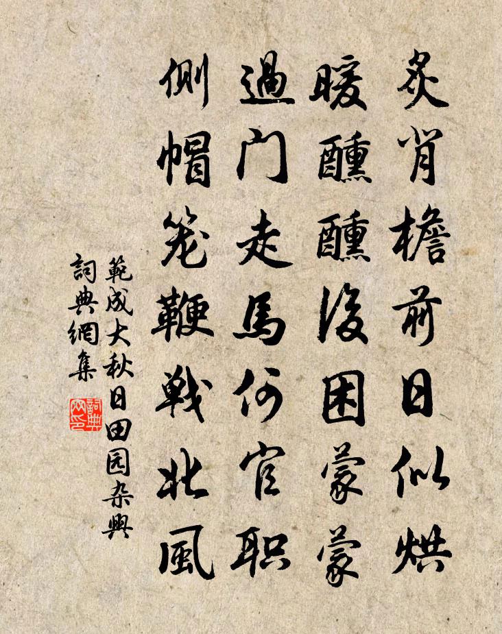 炙背檐前日似烘,暖醺醺後困蒙蒙。過門走馬何官職,側帽籠鞭戰北風!