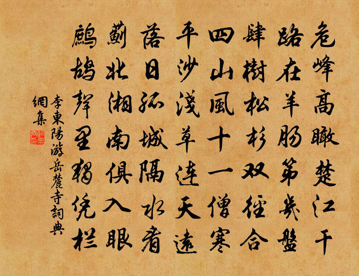 危峰高瞰楚江乾,路在羊腸第幾盤?肆樹松杉雙徑合,四山風十一僧寒。平沙淺草連天遠,落日孤城隔水看。
