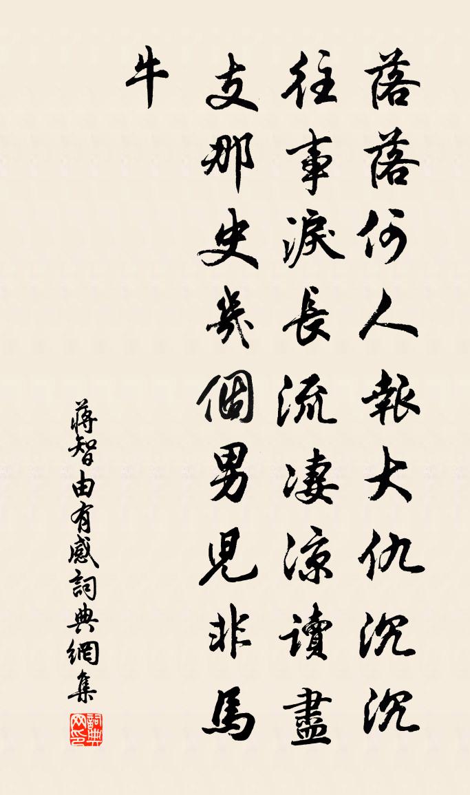 詩詞名句歷史字典書法欣賞書法字典國語詞典說文解字康熙字典古漢語字典標 題 作 者 詩 句 有感作者:蔣智由 朝代:清代有感原文落落何人報大仇?沉沉往事淚長流。淒涼讀盡支1|1那史,幾個男兒非馬牛!詩詞問答問:有感的作者是誰?答:蔣智由問:有感寫於哪個朝代?答:清代問:有感是什麼體裁?答:七絕蔣智由有感書法欣賞有感書法作品詩詞推薦佛燈珣和尚贊釋宗杲〔宋代〕天姿出格蕭灑,胸次過人惺惺。臨濟頂中髓,楊岐眼裡睛。棒頭明殺活,喝下顯疏親。孤鸞無伴侶,師子不同群。端嘉雜詩二十首劉克莊〔宋代〕元子置人防壁後,穰侯搜客到車中。鴆杯定不疑羊傅,匕首何曾害魏公。八翁十首張載〔宋代〕寓言豪誕漆園翁,夸談名理浩無窮。早知懸解人間世,爭知懸解不言中。寄泉僧真濟劉克莊〔宋代〕師邃於醫者,聞諸諫議然。若非禪性悟,必有脈書傳。藥貴逢人施,方靈克日痊。西風瓶錫冷,儻肯訪沉綿。唐多令·苕溪有牧之之感尹煥〔宋代〕末轉清商,溪聲共夕涼。緩傳杯、催喚紅妝。慢綰烏雲新浴罷,裙拂地、水沉香。歌短舊情長,重來驚鬢霜。悵綠和黃門盧監望秦始皇陵張九齡〔唐代〕秦帝始求仙,驪山何遽卜。中年既無效,茲地所宜復。徒役如雷奔,珍怪亦云蓄。黔首無寄命,赭衣相追逐。人怨有僧自峽中來持黃黔州手制茶兼能道其動靜與賀鑄〔宋代〕未聞東觀奏書成,俄見西南萬里行。從坐何關李都尉,補亡猶待褚先生。心懸黃犬沈來耗,耳慣青駒祗舊鳴。時節織圖二十四首下蠶樓璹〔宋代〕穀雨無幾日,谿山暖風高。華蠶初破殼,落紙細於毛。柔桑摘蟬翼,簌簌才容刀。茅檐紙窗明,未覺眼力勞。題崔駙馬宅姚合〔唐代〕心在林泉身在城,鳳凰樓下得閒名。洞中見鑿尋仙路,月里猶燒煮藥鐺。數樹異花皆敕賜,並竿修竹自天生。詩人同陳宰黃簿游靈山八首宰雲吾輩可謂忙裡偷閒陳造〔宋代〕吾儕自由身,聲利為纏索。不有山林幽,何以寬此縛。熏爐仍茗碗,鉤窗共盤礴。何必睹史天,是中差可樂。中冬下汗一日陪方丈訪客因過向民園亭有感王洋〔宋代〕前疏水竹界桑麻,桃李畦分小徑斜。山數青黃人住久,路排藜藿客行賒。雲寒煙合入長暝,梅懶春催未放花。聞道花下嘆羅與之〔宋代〕人生何處較窮通,天意元難測始終。花落花開翻覆手,君看同此一春風。中秋梅桂盛開前所未有黃岩老通判欲賦詩紀異周必大〔宋代〕岩前丹桂隴頭梅,元是蟾宮一處栽。怪底今年秋月好,同時仙子下瑤台。感懷二首趙蕃〔宋代〕佳客與涼風,俱來破蘊隆。風流自江左,材秀又湘中。未暇嗟渠屈,端知慰我窮。囊錢嘆元叔,斗酒羨無功。過屈平昭君故宅張嵲〔宋代〕夔州之山皆入雲,夔女寢陋男不文。山川歷歷應如舊,昭君屈平猶荒村。三百篇後無繼者,始作離騷紹風雅。君門頌古釋道顏〔宋代〕盡道親曾相見來,依前還是狗來腮。好將大棒驀頭榍,貴得盲人便眼開。正同諸丈錢別制乾郎中度正〔宋代〕春風來戶牖,春雨過庭隅。攬袂送徵車,去去不須臾。借問何人斯,玉立美且姝。慶曆丞相孫,太學學為儒。一日某以四十字送詳刑使君張栻〔宋代〕拙守荊江上,無人共往還。能來慰牢落,話舊幾間關。冬壑龍蛇蟄,風林虎豹斑。相期涵養力,且到古人間。寄并州故人鄭獬〔宋代〕去年寒食柳溪頭,著意尋花醉未休。今日天涯最惆悵,滿江煙雨吊春愁。由桂林朔灕江至興安袁枚〔清代〕江到興安水最清,青山簇簇水中生。分明看見青山頂,船在青山頂上行。名句推薦南園春半踏青時,風和聞馬嘶。歐陽修《阮郎歸·南園春半踏青時》 一畦春韭綠,十里稻花香。曹雪芹《菱荇鵝兒水》 百川東到海,何時復西歸?佚名《長歌行》 恭者不侮人,儉者不奪人。孟子《孟子·離婁章句上·第十六節》 敏捷詩千首,飄零酒一杯。杜甫《不見》 千淘萬漉雖辛苦,吹盡狂沙始到金。劉禹錫《浪淘沙九首》 門外無人問落花,綠陰冉冉遍天涯。曹豳《春暮·門外無人問落花》 聞賢而不舉,殆;聞善而不索,殆;見能而不使,殆管仲《管子·法法》 歲暮百草零,疾風高岡裂。杜甫《自京赴奉先縣詠懷五百字 / 自京赴奉先詠懷五百字》 紅淚偷垂,滿眼春風百事非。納蘭性德《採桑子·當時錯》