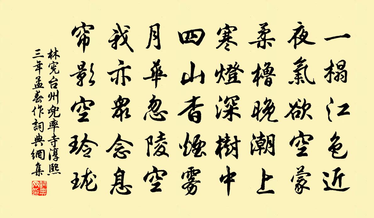 詩詞名句歷史字典書法欣賞書法字典國語詞典說文解字康熙字典古漢語字典標 題 作 者 詩 句 台州兜率寺淳熙三年孟春作作者:林憲 朝代:宋代台州兜率寺淳熙三年孟春作原文一榻江色近,夜氣欲空濛。柔櫓晚潮上,寒燈深樹中。四山杳煙霧,月華忽陵空。我亦眾念息,簾影空玲瓏。詩詞問答問:台州兜率寺淳熙三年孟春作的作者是誰?答:林憲問:台州兜率寺淳熙三年孟春作寫於哪個朝代?答:宋代林憲台州兜率寺淳熙三年孟春作書法欣賞台州兜率寺淳熙三年孟春作書法作品詩詞推薦躑躅蘇軾〔宋代〕楓林翠壁楚江邊,躑躅千層不忍看。開卷例知歸路近,劍南樵叟為施丹。以豆豉送谹父王洋〔宋代〕吳楚家山一水分,金山僧飯飽知聞。蓴絲煮菜無訊息,監豉聊供舊使君。題偶愛方岳〔宋代〕溪雲莫怪塵埃面,更與青山把一杯。未省此詩容寫否,聞渠曾識謫仙來。蓬屋李覯〔宋代〕長簷數尺庇堂東,疏漏從來只有蓬。日影碎如秋樹下,雨聲初似夜般中。竹經蠹了多垂地,箬到乾時半捲空。此處元符親郊五首仁宗〔宋代〕無為靡遠,深厚廣圻。祭神恭在,弁冕兗衣。粢盛豈美,明德聲輝。以祥以佑,非眇聲析。送盧仲舒移家海陵皎然〔唐代〕世故多離散,東西不可嗟。小秦非本國,楚塞復移家。海島無鄰里,鹽居少物華。山中吟夜月,相送在天涯。梅聖俞寄根杏歐陽修〔宋代〕鵝毛贈千里,所重以其人。鴨腳雖百個,得之誠可珍。問予得之誰,詩老遠且貧。霜野摘林實,京師寄時新。封包四月二日往檀林登車遇雨度鵝湖嶺漸覺開霽一陳文蔚〔宋代〕塊坐蕭齋廢短筇,一春長在雨聲中。野花留得春光在,無數青山玉雪叢。酒醒寇準〔宋代〕勝游歡宴是良圖,何必淒淒獨向隅。深院酒醒春日晚,只聞芳樹語提壺。達磨贊釋紹曇〔宋代〕竺乾竊虱屠龍伎,袖隱神鋒入南海。暨見真龍元不識,九年面壁好羞慚。遠望陳普〔宋代〕浮雲盡掃暖微霄,去鷺歸鴻入望遙。積雨才收平野闊,夕陽未卷大江豪。近看飄絮如千葉,遠見修眉若一毫。不有王辛甫示朱敬堂釣台詩卷次韻徐瑞〔宋代〕七里灘光照客裘,雙台登覽意難休。當時蔑視麒鏖楦,季漢反成黨錮鈞。山水何心供弔古,奸雄有面肯包羞,摩挲吳斗南架閣求夢芳亭詩周必大〔宋代〕屈平流放楚江皋,蕭艾叢中思鬱陶。君是國香人服媚,詩情端合反離騷。感風悶坐戲成六言一首示雲岑鄭清之〔宋代〕夢覺無兩壯子,是非只一東坡。顏淵簞食為樂,啟期帶索行歌。魯侯不遇天也,伯寮其如命何。世事如棋新局,人樓頭歐陽修〔宋代〕百尺樓頭萬疊山,楚江南望隔晴煙。雲藏白道天垂幕,簾卷黃昏月上弦。桑落蒲城催熟酒,柳衰章陌感凋年。發光烏棲曲 一徐陵〔南北朝〕卓女紅妝期此夜。胡姬沽酒誰論價。風流荀令好兒郎。偏能傅粉復薰香。問候周子充丈趙蕃〔宋代〕抗疏有歷載,宣麻茲一朝。漕河讙啟閘,江水待乘潮。豈有夔龍輩,而從鷗鷺招。定應聊偃薄,寧事久逍遙。世既頌古四首釋鼎需〔宋代〕閉門入圃太周遮,一喚回頭便到家。良遂知時人不委,海山空映夕陽斜。雨後十小絕以一雨洗殘暑萬家生早涼為韻章甫〔宋代〕百歲已逾半,知復幾寒暑。此事當究觀,勿共俗子語。周家步蘇泂〔宋代〕兒時下上老翁家,常記維舟岸有沙。今日沙移吾亦壯,此翁居處只桑麻。名句推薦日光寒兮草短,月色苦兮霜白。李華《弔古戰場文》 有情知望鄉,誰能鬒不變?謝朓《晚登三山還望京邑》 滿地殘紅宮錦污,昨夜南園風雨。王安國《清平樂·春晚》 子規啼,不如歸,道是春歸人未歸。關漢卿《大德歌·春》 莫飲卯時酒,昏昏醉到酉。佚名《增廣賢文·上集》 正西望長安,下見江水流。李白《秋浦歌十七首》 碧湖湖上柳陰陰,人影澄波浸,常記年時歡花飲。楊果《小桃紅·碧湖湖上柳陰陰》 花間一壺酒,獨酌無相親。李白《月下獨酌四首·其一》 君子坦蕩蕩,小人長戚戚。孔子弟子《論語·述而篇》 寥落古行宮,宮花寂寞紅。元稹《行宮》