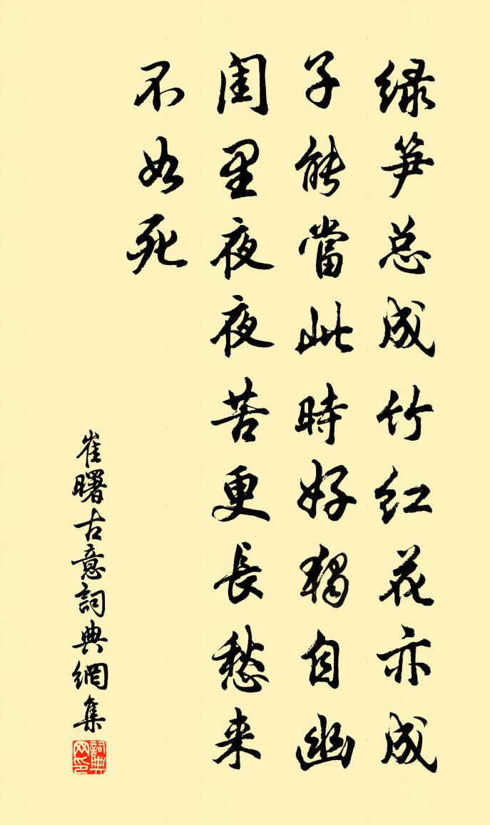 詩詞名句歷史字典書法欣賞書法字典國語詞典說文解字康熙字典古漢語字典標 題 作 者 詩 句 古意作者:崔曙 朝代:唐代古意原文綠筍總成竹,紅花亦成子。能當此時好,獨自幽閨里。夜夜苦更長,愁來不如死。詩詞問答問:古意的作者是誰?答:崔曙問:古意寫於哪個朝代?答:唐代問:古意是什麼體裁?答:五古崔曙古意書法欣賞古意書法作品注釋全唐詩:卷155_1詩詞推薦次韻十詩老態樓鑰〔宋代〕舅甥身退不為遲,肥遯猶當未老時。東晉雖慙古元亮,晚唐知慕老天隨。公開九秩身方健,我甫六旬心已疲。不敢和張純父霜月三首陳杰〔宋代〕洞庭高秋乃無事,洞庭主人獨多才。滿天如水烏啼夜,寫出寒蟬濕兔來。雨中贈仙人山賈山人(即賈鵬也)柳宗元〔唐代〕寒江夜雨聲潺潺,曉雲遮盡仙人山。遙知玄豹在深處,下笑羈絆泥塗間。解語花(吳子云家姬,號愛菊,善歌舞,忽有朝雲之感,作此以寄。)張炎〔宋代〕行歌趁月,喚酒延秋,多買鶯鶯笑。蕊枝嬌小。渾無奈、一掬醉鄉懷抱。籌花鬥草。幾曾放、好春閒了。芳意闌,和張岳州雪夜彈琴陳杰〔宋代〕凍雲留雲消較遲,乾風颼颼時一吹。原野慘澹看不宜,飢烏愁絕噤寒鴟。飽死帳下羊羔兒,灞橋寂歷久無詩。誰歟武溪深文同〔宋代〕嶠南之武溪,其深不能測。潭潭滀瘴癘,水色重如墨。昏然潦霧作,上下毒氣塞。仰視高飛鳶,跕跕墮兩翼。交州烏夜啼 春思趙令畤〔宋代〕樓上縈簾弱絮,牆頭凝月低花。年年春事關心事,腸斷欲棲鴉。舞鏡鸞衾翠減,啼珠鳳蠟紅斜。重門不鎖相思夢,句寇準〔宋代〕水底日為天上日。和王景彝寄呂縉叔梅堯臣〔宋代〕白盡髭鬚史未成,不如能賦易登瀛。三冬足用侏儒飽,千里從看跛鱉行。知有清名在公議,自無餘力到高閎。磻溪挽曾原伯大卿孫應時〔宋代〕世豈無全德,今猶見古人。大圭非刻畫,天醴自清醇。未說功名地,猶令宇宙春。蒼茫何處覓,丹素豈精神。獨不見楊巨源〔唐代〕春風艷陽色,柳綠花如霰。競理同心鬟,爭持合歡扇。香傳賈娘手,粉離何郎面。最恨捲簾時,含情獨不見。重湖夜月饒魯〔宋代〕昔聞放翁歌鏡湖,船毛有酒船頭書。又聞鑑湖賜賀老,剡川一曲春風好。番陽之東有重湖,風光與此真不殊。澄波洞元觀方岳〔宋代〕空林綠氣冷香彝,山帶斜暉半入溪。幽鳥似嫌人至數,瞥然飛過隔林啼。吳潘二台官以直言左遷董夕郎亦以薦賢之故相胡仲弓〔宋代〕三鳳高飛挽不留,轅駒仗馬轉堪羞。明朝封事排閶闔,公認從來在士流。喜諸子所和詩盟歌俱有可采再用韻見意錢時〔宋代〕蠻觸封疆日勍敵,金丹不療膏肓疾。抖擻風埃發詩骨,參差頭角嶄然出。老夫所志在大雅,諸子政須勤帝籍。三嘆次韻陸承之寒夜有懷陳深〔宋代〕壯志寥寥在,流年冉冉催。寒燈和夢照,暗雨挾愁來。白雪詞難和,青山首重回。夜蘭渾不寐,慨想陸機才。水調歌頭(括坡詩)佚名〔宋代〕秋色在瀟灑,佳氣夜充閭。人傳好語,君家門左正垂弧。畢萬從來有後,釋氏果然抱送,丹穴鳳生雛。未作湯餅客頌古三十六首釋惟一〔宋代〕無位真人活鱍鱍,赤肉團上為窠窟。縱橫妙用可憐生,七出八沒難捉摸。推不去,挽不住,擬議尋思無覓處。無覓南園雜詩六首見山台書臥偶成司馬光〔宋代〕移床獨上高台臥,颯颯涼風吹面過。林蟬忽噪驚薄夢,手執殘書幅巾墮。次韻孔武仲學士見贈蘇轍〔宋代〕羨君耽讀書,日夜論今古。雖復在家人,不見釋手處。意求五車盡,未惜雙目苦。蓬萊倚霄漢,簡冊充棟宇。學成名句推薦黃河曲里沙為岸,白馬津邊柳向城。高適《夜別韋司士》 行舟逗遠樹,度鳥息危檣。陰鏗《渡青草湖》 母信者,其子必仁。劉向《列女傳·節義傳·楚昭越姬》 娶妻莫恨無良媒,書中自有顏如玉。趙恆《勸學詩》 責人勿厲,小惠或有大得。來俊臣《羅織經·保身卷第七》 人煙寒橘柚,秋色老梧桐。李白《秋登宣城謝朓北樓》 何日歸家洗客袍?銀字笙調,心字香燒。蔣捷《一剪梅·舟過吳江》 春雨樓頭尺八簫,何時歸看浙江潮?蘇曼殊《本事詩十首·選二》 戰士軍前半死生,美人帳下猶歌舞。高適《燕歌行》 奢侈之敗家,猶出常情;而慳吝之敗家,必遭奇禍。王永彬《圍爐夜話·第五九則》