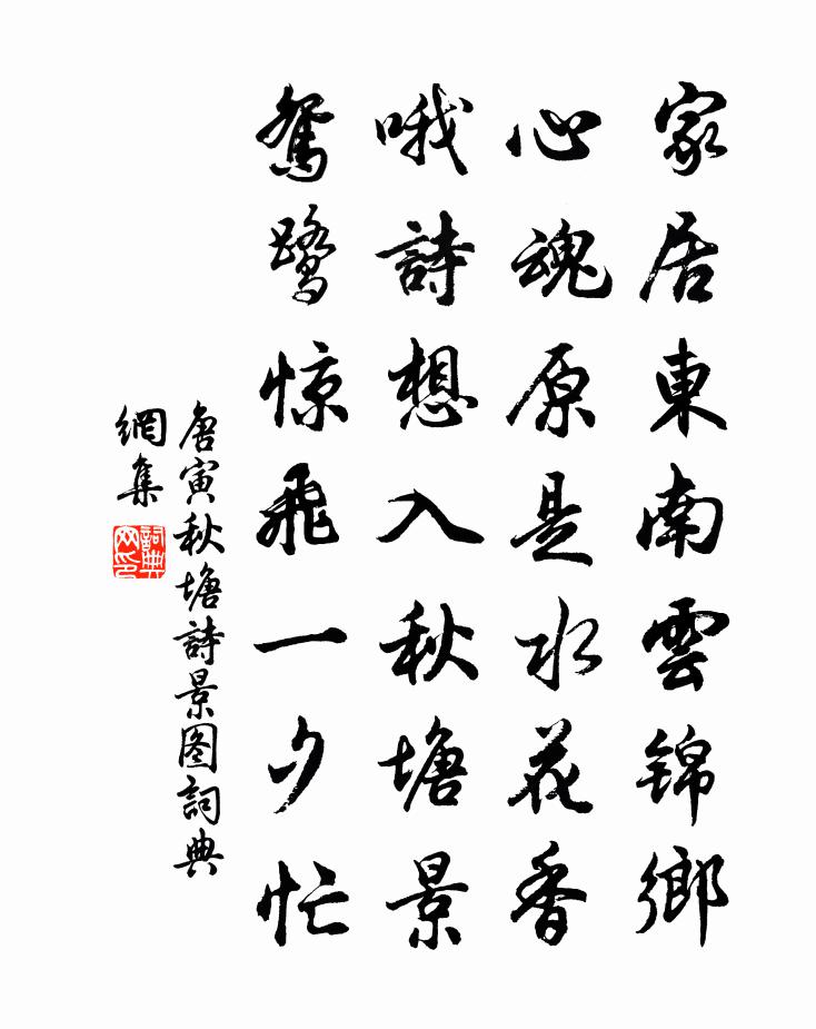 家居東南雲錦鄉,心魂原是水花香。喔詩想入秋塘景,鴛鷺驚飛一夕忙。