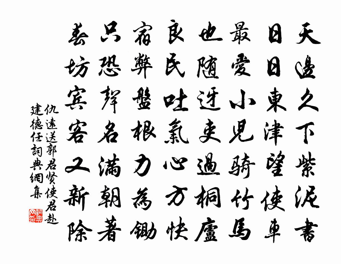 詩詞名句歷史字典書法欣賞書法字典國語詞典說文解字康熙字典古漢語字典標 題 作 者 詩 句 送郭君賢使君赴建德任作者:仇遠 朝代:宋代送郭君賢使君赴建德任原文天邊久下紫泥書,日日東津望使車。最愛小兒騎竹馬,也隨迓吏過桐廬。良民吐氣心方快,宿弊盤根力為鋤。只恐聲名滿朝著,春坊賓客又新除。詩詞問答問:送郭君賢使君赴建德任的作者是誰?答:仇遠問:送郭君賢使君赴建德任寫於哪個朝代?答:宋代仇遠送郭君賢使君赴建德任書法欣賞送郭君賢使君赴建德任書法作品詩詞推薦暫往嘉興離桂隱過渡張鎡〔宋代〕側望山來起復平,橫衝波去碧還明。誰言身在筍輿上,自是乘空里行。孟子理義悅心陳普〔宋代〕芻豢膏梁嗜不休,悅盡之樂孰能求。倘知禮義真滋味,陋巷簞瓢豈足憂。壺中天歌贈侯明父樂雷發〔宋代〕蓋頭即可居,容膝即可安。連雲大廈千萬間,何如壺中別有天。壺中何所有,筆床茶灶葫蘆酒。壺中何所為,目送宿翠微寺馬戴〔唐代〕處處松陰滿,樵開一徑通。鳥歸雲壑靜,僧語石樓空。積翠含微月,遙泉韻細風。經行心不厭,憶在故山中。橄欖歐陽修〔宋代〕五行居四時,維火盛南訛。炎焦陵木氣,橄欖得之多。酸苦不相入,初爭久方和。霜包入中州,萬里來江波。幸登金陵雜興二百首蘇泂〔宋代〕子高去後我方來,兩地參差笑口開。賴有尊有似人喜,為渠想像飲三杯。偈頌七首釋亮〔宋代〕者僧問處絕謠訛,就便牛來付與它。嫩綠枝頭紅一點,動人春色不消多。南屏山畫猿林昉〔宋代〕古木懸藤臂半鉤,何年影落此山秋。三聲遠憶巴江月,夜半孤舟起客愁。夜雨吳錫疇〔宋代〕漠漠春陰未肯晴,空階滴點到平明。應知不入笙歌耳,來作愁人枕畔聲。李撫州輓詞樓鑰〔宋代〕李下真無徑,門前可設羅。詩如翰林逸,書似鄴侯多。奇字今誰問,遺編尚不磨。從來好哀輓,薤露忍興歌。謹和老人官山看高子厚修墓洪咨夔〔宋代〕秋風問訊老芙蕖,靖節前行後阿舒。緩策穩過金絡馬,小烹佳勝蔗漿廚。何榮何辱人千古,誰是誰非冢一區。遇著句釋本逸〔宋代〕罥鶴顛崖上,沖天昧米民。奉和聖制立春日侍宴內殿出剪彩花應制趙彥昭〔唐代〕剪彩迎初候,攀條故寫真。花隨紅意發,葉就綠情新。嫩色驚銜燕,輕香誤采人。應為薰風拂,能令芳樹春。宿姚合宅寄張司業籍賈島〔唐代〕閒宵因集會,柱史話先生。身愛無一事,心期往四明。松枝影搖動,石磬響寒清。誰伴南齋宿,月高霜滿城。句胡銓〔宋代〕梁園高會憶鄒岩,千里蓴羹未下鹽。寄楚州呂濟叔梅堯臣〔宋代〕亭午鳥不下,誰復過我廬。忽聞扣門者,偶出問何如。雲是山陽吏,太守遣置書。自惟久窮困,遊子安念予。淮陰郴江百詠並序湖亭阮閱〔宋代〕城外高堂俯碧灣,山如螺黛水如環。有時鼓棹來尋勝,直到斜陽未欲不。寄在伯三首後一首並示逸趙蕃〔宋代〕兒行欣得師,爺往愁欠友。去凶勿惘然,得師知慰否。有時頻執經,無事莫多酒。無謂數月程,秋風在回首。岳陽別張祜李涉〔唐代〕十年蹭蹬為逐臣,鬢毛白盡巴江春。鹿鳴猿嘯雖寂寞,水蛟山魅多精神。山瘧困中聞有赦,死灰不望光陰借。半夜題劉偃莊劉商〔唐代〕何事退耕滄海畔,閒看富貴白雲飛。門前種稻三回熟,縣裡官人四考歸。名句推薦不信妾腸斷,歸來看取明鏡前。李白《長相思三首》 明敕星馳封寶劍,辭君一夜取樓蘭。王昌齡《從軍行七首》 青春花姊不同時。淒涼生較遲。吳文英《醉桃源·芙蓉》 橫看成嶺側成峰,遠近高低各不同。蘇軾《題西林壁》 衰楊古柳,幾經攀折,憔悴楚宮腰柳永《少年游·參差煙樹灞陵橋》 凡與敵戰,若我勝彼負,不可驕惰,當日夜嚴備以待之。佚名《百戰奇略·第六卷·勝戰》 官無恆友,禍存斯虛,勢之所然,智者弗怠焉。來俊臣《羅織經·謀劃卷第九》 月去疏簾才數尺,烏鵲驚飛,一片傷心白。宋琬《蝶戀花·旅月懷人》 山有木兮木有枝,心悅君兮君不知。佚名《越人歌》 今歲早梅開,依舊年時月。張孝祥《卜運算元·雪月最相宜》