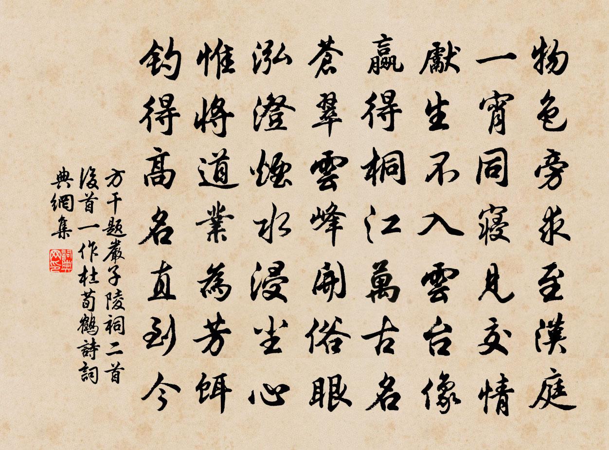 詩詞名句歷史字典書法欣賞書法字典國語詞典說文解字康熙字典古漢語字典標 題 作 者 詩 句 題嚴子陵祠二首(後首一作杜荀鶴詩)作者:方乾 朝代:唐代原文物色旁求至漢庭,一宵同寢見交情。先生不入雲台像,贏得桐江萬古名。蒼翠雲峰開俗眼,泓澄煙水浸塵心。惟將道業為芳餌,釣得高名直到今。詩詞問答問:《題嚴子陵祠二首(後首一作杜荀鶴詩)》的作者是誰?答:方乾問:該詩寫於哪個朝代?答:唐代書法欣賞題嚴子陵祠二首(後首一作杜荀鶴詩)書法作品注釋全唐詩:卷653-53詩詞推薦峽山阻風李復〔宋代〕黃牛白馬渡驚灘,兩目盲飈更險艱。天地容身惟一榻,江湖駭浪動千山。豪商競利能爭捷,陰鬼多么故作慳。嘆息郡中西園白居易〔唐代〕閒園多芳草,春夏香靡靡。深樹足佳禽,旦暮鳴不已。院門閉松竹,庭徑穿蘭芷。愛彼池上橋,獨來聊徙倚。魚依靈隱寺宋之問〔唐代〕鷲嶺郁岧嶢,龍宮鎖寂寥。樓觀滄海日,門對浙江潮。桂子月中落,天香雲外飄。捫蘿登塔遠,刳木取泉遙。霜薄早去劉克莊〔宋代〕早去天知無宦情,急攻人惎有虛名。老而能學□□少,耄不加刑黜典輕。宿昔□□□未就,他時血碧尚難平。吾書庚子正月彗見於室有詔求言因上己見有感作三岳珂〔宋代〕天象占仁愛,宸心極戰克。圖從甘石辨,言並禹湯興。有志酬消露,無詞贊履冰。至明昭萬里,先原燭西陵。游金地寺郭印〔宋代〕山行無近遠,絕頂是休程。度石籃輿怯,穿雲履屐輕。林篁當路迸,泉水落溪鳴。更宿招提夜,寥然一境清。寄題張殿直長春亭強至〔宋代〕甲第俯河湄,修亭面勢宜。琴樽長有樂,草木似無衰。境勝青山敵,心閒白日遲。祖良迷大隱,獨與赤松期。次韻洪帥喜雨牟巘五〔宋代〕感孕妙處捷風雷,造化於人豈遠哉。見說商霖一尺字,向前車馬待公來。登雲梯殷琮〔唐代〕碧落遠澄澄,青山路可升。身輕疑易蹋,步獨覺難憑。邐迤排將近,迴翔勢漸登。上寧愁屈曲,高更喜超騰。江樹宋中道失小女戲寬之梅堯臣〔宋代〕宋子失汝嬰,苦將造物怪。造物本無惡,爾責亦已隘。且如工作器,寧復保存壞。收淚切勿悲,他時多婿拜。雨意王同祖〔宋代〕噎噎重陰書不分,歸鴉林裹認黃昏。人間春信知多少,但覺輕寒入夢魂。菩薩蠻(酒半戲成)韓淲〔宋代〕秋林只共秋風老。秋山卻笑秋吟少。恰恨有秋香。青岩秋夜涼。清秋須是酒。結客秋知否。醉筆寫成秋。一秋無復紹熙辛亥六月中伏日出郭觀稼小休野石讀仲權滕鎮〔宋代〕稻香藹藹暑風清,下馬傳觴聽水笙。父老指詩懷舊尹,為鐫岩石寄心聲。醉落魄/一斛珠張元乾〔宋代〕浮家泛宅。舊遊記霅溪蹤跡。此生已是天涯隔。投老誰知,還作三吳客。故人怪我疏髯黑。醉來猶似丁年日。光陰詠鶴五首張嵲〔宋代〕心期附鳳參雲駕,豈與凡禽共苑園。黃鵠無能猶自免,應緣遠去不乘軒。北寺悟空禪師塔蘇軾〔宋代〕已將世界等微塵,空里浮花夢裡身。豈為龍顏更分別,只應天眼識天人。水龍吟 東園醉後元好問〔金代〕兩年金鳳城邊,等閒又見東風菜。侯門慣客,東園高宴,青雲飛蓋。水上幽亭,恍然真似,闌舟同載。望紅樓翠壁澄虛閣梅堯臣〔宋代〕箘圃隔囂紛,閒來衣練裙。檻邊生靜意,水底見微雲。斜照回晴景,幽芳襲薄薰。主人多賦詠,不減沈休文。用洪君疇韻送徐仲晦赴鄉郡二首劉克莊〔宋代〕傳聞君相獎清修,印節移來某水丘。范孟博非私奏劾,祁大夫不避親讐。青黃未接宜開廩,紅腐無多謾唱籌。事尚古斷腸曲三十首周端臣〔宋代〕香凝薇帳春風院,酒涴榴裙夜月樓。閒把花枝思往事,舊歡都變作新愁。名句推薦驪山語罷清宵半,淚雨霖鈴終不怨。納蘭性德《木蘭詞·擬古決絕詞柬友》 京國多年情盡改,忽聽春雨憶江南。虞集《聽雨》 思來江山外,望盡煙雲生。張九齡《秋晚登樓望南江入始興郡路》 挫其銳,解其紛,和其光,同其塵。湛兮,似或存。老子《老子·道經·第四章》 忠告而善道之,不可則止,毋自辱焉。孔子弟子《論語·顏淵篇》 奈何今之人,雙目送飛鴻。李白《鞠歌行》 猶有遺簪,不展秋心,能卷幾多炎熱。張炎《疏影·詠荷葉》 萬里中原烽火北,一尊濁酒戍樓東。張孝祥《浣溪沙·霜日明霄水蘸空》 野梅燒不盡,時見兩三花劉基《古戍》 日入群動息,歸鳥趨林鳴陶淵明《飲酒·七》