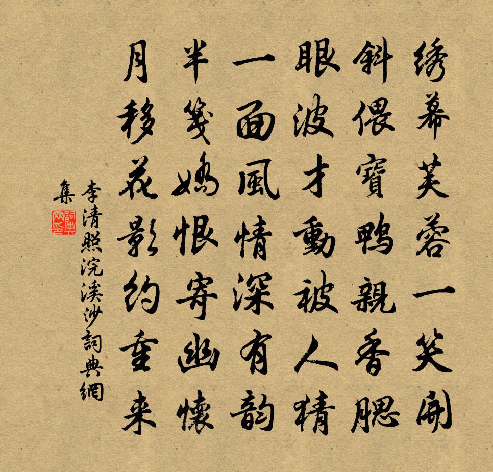 繡幕芙蓉一笑開,斜偎寶鴨親香腮,眼波才動被人猜。一面風情深有韻,半箋嬌恨寄幽懷,月移花影約重來。