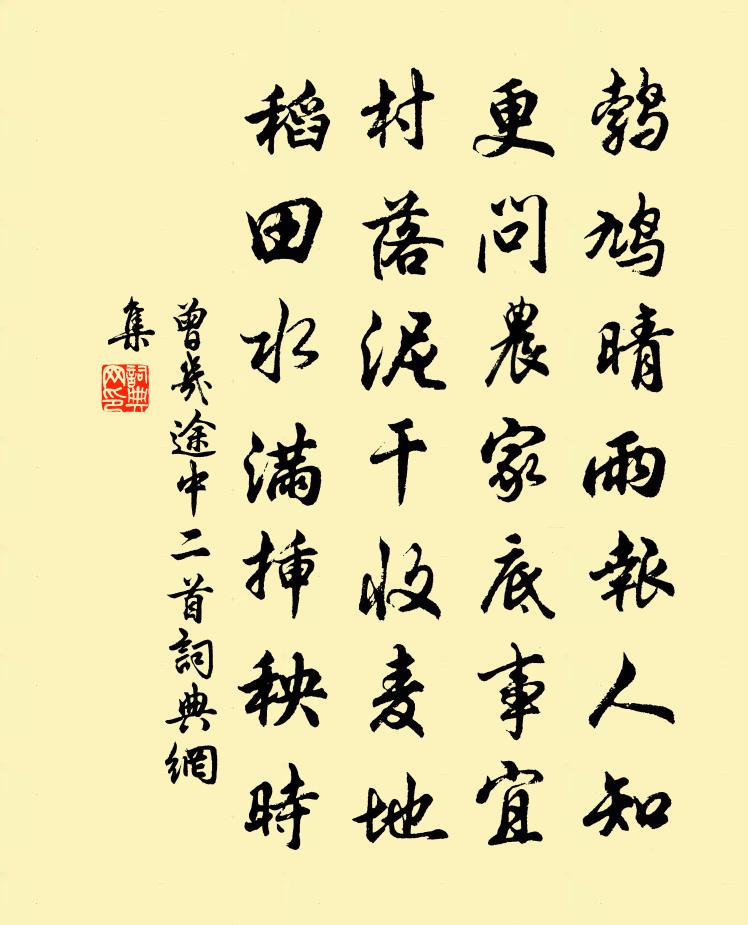 鵓鳩晴雨報人知,更問農家底事宜。村落泥乾收麥地,稻田水滿插秧時。