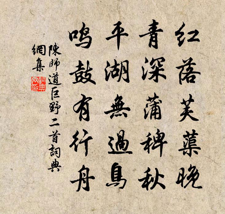 紅落芙蕖晚,青深蒲稗秋。平湖無過鳥,鳴鼓有行舟。