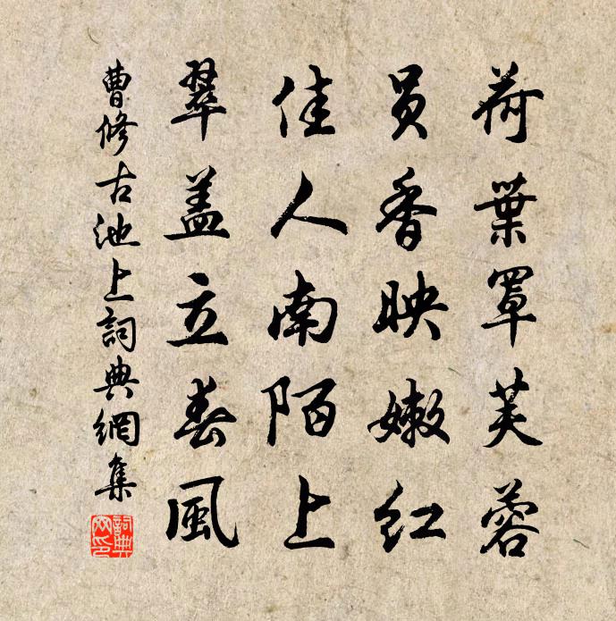 詩詞名句歷史字典書法欣賞書法字典國語詞典說文解字康熙字典古漢語字典標 題 作 者 詩 句 池上作者:曹修古 朝代:唐代池上原文荷葉罩芙蓉,員香映嫩紅。佳人南陌上,翠蓋立春風。詩詞問答問:池上的作者是誰?答:曹修古問:池上寫於哪個朝代?答:唐代曹修古池上書法欣賞池上書法作品詩詞推薦二賢孔武仲〔宋代〕羲之書之墨池,淵明子醉石。人生嗜好亦天然,豈顧書淫與書癖。一時聲價動宇宙,千古林泉記蹤跡。書固吾不能春晴泛湖入城陸游〔宋代〕春色初回杜若洲,隔煙時見矯輕鷗。嵩雲緱月年年夢,楚柁吳檣處處愁。魚躍銀刀論網買,酒傾綠蟻滿杯浮。前生次徐相公韻十首少將釋行海〔宋代〕滿身鐵甲據金鞍,百戰功成始拜官。盡陣解圍兵勢活,分旗奪地戟光寒。併吞北虜心長勇,未捷中原淚不乾。建立郡王閣端午帖子夏竦〔宋代〕崑山瑞玉題真篆,閬苑蟠桃刻印文。並獻春閨延美慶,億年嘉氣永氤氳。和故舊招館張明中〔宋代〕牢落詩盟寒欲灰,非君懷抱若為開。未闌樽酒論文意,拂榻應須有待來。宮使待制舍人趙公輓詩三首李彌遜〔宋代〕秀出青徐野,風移鄒魯鄉。家聲齊丙魏,人物到軒黃。漫仕從三已,危機付兩忘。並游無此老,誰與共行藏。郊廟朝會歌辭建隆乾德朝會樂章二十八首佚名〔宋代〕聖皇臨大寮,八表湊才賢。經緯文天賦,剛柔德日宣。建邦隆柱石,造物運陶枉。共致昇平業,淳曜德彌化。黃梅劉宰〔宋代〕林梢脆實薦辛酸,尚記兒時刮目看。老去齒牙無復昔,曉枝猶喜墮金丸。贊真覺像化姜布釋可湘〔宋代〕吃德山惡辣,耐同參逼拶。盪除露布葛藤,直得水底火發。阿刺刺,夫是之謂真覺菩薩。江城子舒頔〔元代〕積雨陂塘五月秋。送還留。且停舟。聽我驪駒,歌徹上廬州。無柰綠窗眉鎖恨,情脈脈,思悠悠。同鄉翻作異鄉愁送丁懷忠教授象州陳傅良〔宋代〕二毛羈旅久,一飯瘴鄉輕。把酒時相屬,令人意自平。校官無簿領,帥閫甚聲名。所恨冥冥雨,梅天不肯明。偈頌二十二首釋道生〔宋代〕佛法二字,人人知有。狼毒 * ,那容下口。直饒透出威音前,也是痴狂外邊走。春夜洛城聞笛 / 春夜洛陽城聞笛李白〔唐代〕誰家玉笛暗飛聲,散入春風滿洛城。此夜曲中聞折柳,何人不起故園情。水龍吟孔夷〔宋代〕歲窮風雪瓢零,望迷萬里雲垂凍。紅綃碎翦,凝酥繁綴,煙深霜重。疏影沈波,暗香和月,橫斜浮動。悵別來,欲送呂子陽二絕葉適〔宋代〕好花移買自嫌貧,浪蕊空多未許春。放出江邊無數橘,半黃半綠惱騷人。句富弼〔宋代〕昔年曾作瀟湘客,憔悴東秦歸不得。西軒忽見好溪山,如何卻有楚鄉憶。讀書誤人四十年,有時醉把闌乾拍。偈頌七十六首釋子益〔宋代〕有拄杖與拄杖,擊木無聲。無拄杖奪拄杖,敲空作響。還見芭蕉和尚麽,莫妄想。晚霽張耒〔宋代〕山川收滯雨,烏鵲有和聲。半嶺日猶照,一天雲盡行。人皆理牆壁,吾亦掃柴荊。鵝鴨何多喜,渠流漾淺清。秋夜聞蘭亭天章寺鐘陸游〔宋代〕絕湖上蘭亭,不過一炊頃。湖廢繚堤行,往返常畢景。猶有古寺鐘,迢迢下重嶺。煙雲含莽蒼,風露共淒冷。蕭然畫松元稹〔唐代〕張璪畫古松,往往得神骨。翠帚掃春風,枯龍戛寒月。流傳畫師輩,奇態盡埋沒。纖枝無蕭灑,頑乾空突兀。乃悟名句推薦主人有酒歡今夕,請奏鳴琴廣陵客。李頎《琴歌》 闌乾風冷雪漫漫,惆悵無人把釣竿。姜夔《釣雪亭》 去年東武今夕,明月不勝愁。蘇轍《水調歌頭·徐州中秋》 千載休談南渡錯,當時自怕中原復。文徵明《滿江紅·拂拭殘碑》 頭醋不釅徹底薄。施耐庵《水滸傳·第五十一回》 揚雲霓之晻藹兮,鳴玉鸞之啾啾。屈原《離騷》 試澆橋下水,今夕到湘中。陳與義《臨江仙·高詠楚詞酬午日》 敖不可長,欲不可從,志不可滿,樂不可極。戴聖《禮記·曲禮上》 塞上秋風鼓角,城頭落日旌旗。元好問《江月晃重山·初到嵩山時作》 出於其類,拔乎其萃。孟子《孟子·公孫丑章句上·第二節》
