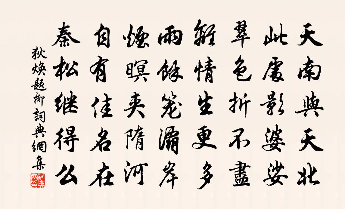 詩詞名句歷史字典書法欣賞書法字典國語詞典說文解字康熙字典古漢語字典標 題 作 者 詩 句 題柳作者:狄煥 朝代:唐代題柳原文天南與天北,此處影婆娑。翠色折不盡,離情生更多。雨余籠灞岸,煙暝夾隋河。自有佳名在,秦松繼得么。詩詞問答問:題柳的作者是誰?答:狄煥問:題柳寫於哪個朝代?答:唐代問:題柳是什麼體裁?答:五律狄煥題柳書法欣賞題柳書法作品注釋全唐詩:卷768-25詩詞推薦天台邵明府履病況遺牡丹各賦一絕林表民〔宋代〕一春苦雨又憂花,爛盡秧根榖再芽。見說雲頭紅可喜,老宵猶恐是朝霞。讀張敬夫南軒集夜夢賦詩周必大〔宋代〕道學人爭說,躬行少似君。中憫惟至一,餘事亦多聞。湖廣規模遠,濂伊講習勤。平生忠與敬,彷佛在斯文。滿江紅(冬至)陳三聘〔宋代〕薄日輕雲,天氣好、相將祈谷。民情喜、頌聲洋溢,清風斯穆。飲酒不多元有量,吟詩無數添新軸。對古人、一笑偈頌六十七首釋原妙〔宋代〕一年三百六十日,看看逗到今宵畢。十個有五雙,參禪禪又不知,學道道亦不識。只遮不知不識四字,正是三世諸自適陸游〔宋代〕遠遊思里巷,久困念耕桑。家釀傾醇碧,園蔬摘矮黃。利名因醉遠,日月為閒長。今歲雖中熟,吾徒亦小康。書感陸游〔宋代〕人生百憂坐一官,況與群飛接羽翰。兩具吳牛給耕足,三間茅屋著身寬。焄蒿悽愴會不免,簡儉寂默差可安。康莊梁三朝雅樂歌 需雅 六沈約〔南北朝〕膳夫奉職獻芳滋。不麛不夭鹹以時。調甘適苦別澠淄。其德不爽受福厘。於焉逸豫永無期。悼林仲逸縣尉陳傅良〔宋代〕家故書千卷,生才試一斑。嘗音殊不少,筮仕獨何艱。松菊將身隱,苹蘩忽涕潸。幸哉賢玉潤,有誄不容刪。頌古十一首釋有權〔宋代〕人人有個生緣,男兒所宇沖天。若是爭田競地,我即喚死如眠。道中即事姚勉〔宋代〕天晴日短亦覺長,客行一日兩舍強。道傍蕭蕭木葉下,天風又辦明朝霜。贈英公大師李頌〔宋代〕篆高神品,秀爽天骨。敏搆機先,談深理窟。溶極蒼源,玄臻籀闥。玉無疵瑕,車有輗軏。達識圓明,靈襟洞豁。雜感宋庠〔宋代〕枉尺由來賤直尋,巧機愁殺漢川陰。莫將三四為朝暮,虛攪群狙喜怒心。過大皋渡楊萬里〔宋代〕隔岸橫州十里青,黃牛無數放春晴。船行非與牛相背,何事黃牛卻倒行。解紅王哲〔元代〕嘆嗟浮世。被榮華、驅策名和利。人人*作機心起。百般奸計。嫉妒愈增僥巧重,生俱相效皆貪愛。何曾停住常若冬至後雪葛立方〔宋代〕客寐失通宵,寒聲動泬寥。雲容頹玉宇,雪陣攪層霄。點點楷灰落,亭亭柳絮飄。文窗斜擊紙,老樹巧裝條。墮領和續古謝送墨洪咨夔〔宋代〕黑月黳雲脫太清,海風吹上筆頭輕。瑣窗冷透芙蕖碧,定有新銘到九成。次羅梅谷詩畫總觀楊公遠〔宋代〕梅谷梅應占作魁,不論時節遣花開。傳真舊說華光老,詩到林逋俱壓倒。華光去後誰逼真,補之筆底生陽春。月香峽路山行即事十首袁說友〔宋代〕旌旗獵獵曉雲風,撲面清微破午烘。更度幽香來細細,轉頭尋見野花紅。望微水張嵲〔宋代〕平原莽蒼浮輕靄,白晝柴門亦自扃。籬外水波光滅沒,林邊山岫遠青冥。如何隱几終朝看,不及寒窗靜夜聽。聽水金陵懷古梅堯臣〔宋代〕秦莫恃棧閣,吳莫恃壍江。不能恃以德,二國竟亦降。邇來屢興廢,由險輕萬邦。誰知荒涼城,空存如刳腔。我今名句推薦下馬飲君酒,問君何所之?王維《送別》 萬壑樹參天,千山響杜鵑。王維《送梓州李使君》 人生十年曰幼,學。二十曰弱,冠。三十曰壯,有室。四十曰強,而仕。五十曰艾,服官政。戴聖《禮記·曲禮上》 大江東去,浪淘盡,千古風流人物。蘇軾《念奴嬌·赤壁懷古》 我來一長嘆,知是東溪蓮。白居易《京兆府栽蓮》 芳草斷煙南浦路,和別淚,看青山朱淑真《江城子·賞春》 漢家君臣歡宴終,高議雲台論戰功。王維《少年行四首》 朝為越溪女,暮作吳宮妃。王維《西施詠》 最愛東山晴後雪,軟紅光里涌銀山。楊萬里《最愛東山晴後雪》 曲闌深處重相見,勻淚偎人顫。納蘭性德《虞美人·曲闌深處重相見》