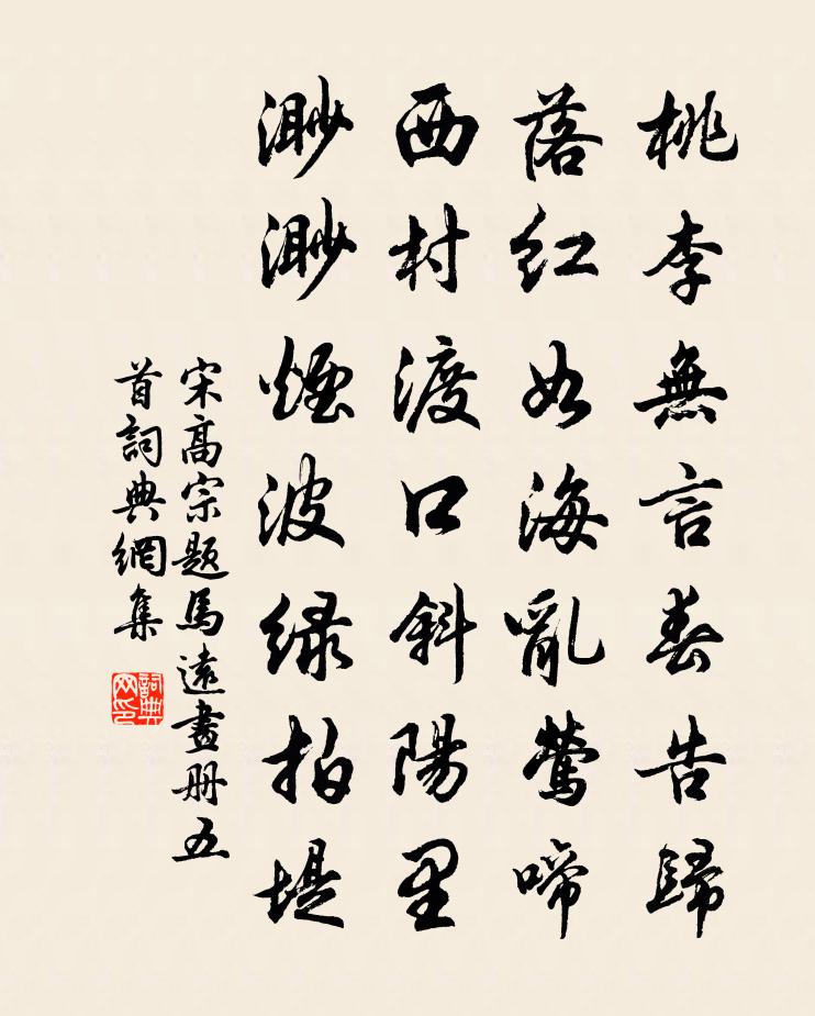 詩詞名句歷史字典書法欣賞書法字典國語詞典說文解字康熙字典古漢語字典標 題 作 者 詩 句 題馬遠畫冊五首作者:宋高宗 朝代:宋代題馬遠畫冊五首原文桃李無言春告歸,落紅如海亂鶯啼。西村渡口斜陽里,渺渺煙波綠拍堤。詩詞問答問:題馬遠畫冊五首的作者是誰?答:宋高宗問:題馬遠畫冊五首寫於哪個朝代?答:宋代宋高宗題馬遠畫冊五首書法欣賞題馬遠畫冊五首書法作品詩詞推薦偈頌六十首釋曇華〔宋代〕一棒一條痕,一摑一手血。臨濟老瞎驢,至今猶未瞥。須彌頂上浪拍天,大洋海水無一滴。偉哉本色人,頂門亞三題請息齋六言范成大〔宋代〕不惜人扶難拜,非關我醉欲眠。勞君敬枯木耳,恐汝見濕灰焉。六瑞堂謝諤〔宋代〕循良天惠海邊頭,波浪澄清宿霧收。才把一麾來北闕,便驚六瑞到南州。日高雙影亭亭並,風動孤香冉冉浮。好作孟子捨生取義陳普〔宋代〕義在甘心 * 身,人情天理此為真。誰能出段乾坤裹,長作偷生負罪人。先蠶六首佚名〔宋代〕生民之朔,衣皮而群。惟聖有作,被冒以文。禮樂以成,貴賤以分。欲報之德,金石諧均。五月二十三夜記夢陸游〔宋代〕夜漏欲盡雞初唱,夢到神仙信非妄。泉流直舂碧澗底,松根橫走蒼崖上。徐行林際遇飛橋,峭壁驚濤臨萬丈,非惟金剛經偈寄示西林總長老白玉蟾〔宋代〕以字不成,八字不是。如是我聞,早落第二。二祖贊釋法薰〔宋代〕覓心無處覓,當下便心安。早知冰是水,兩臂定完全。賀陳右司生辰強至〔宋代〕悠悠大塊間,萬類紛相敵。偉哉拔俗人,真宰豈無力。六經陷邪說,釋儒共一律。天未喪斯文,公生抱絕識。著書虎丘方仲荀〔宋代〕海湧起平田,禪扉古木間。出城先見塔,入寺始登山。堂靜參徒散,巢喧乳鶴還。祖龍求寶劍,曾此鑿孱顏。和子由記園中草木十一首蘇軾〔宋代〕芎窮生蜀道,白芷來江南。漂流到關輔,猶不失芳甘。濯濯翠莖滿,愔愔清露涵。及其未花實,可以資筐藍。秋節飲李氏園三首黃庭堅〔宋代〕手挼紅杏醉繁香,回首春前夢一場。便與經營百船酒,再來應是菊花黃。題林夢馨本朝雜詠劉克莊〔宋代〕二百新題字四千,庚申已後甲寅前。繼周可以知百世,續漢誰曾到八年。江左重修泰陵錄,水心絕重建隆編。何時西豀湖散步趙若盈〔宋代〕遠岫平林嶂夕陽,翻濤翠麥已蒸黃。此行莫謂無高興,題品新詩入錦囊。花下醉李商隱〔唐代〕尋芳不覺醉流霞,倚樹沉眠日已斜。客散酒醒深夜後,更持紅燭賞殘花。春日迓新使君周南〔宋代〕半生窮巷抱遺經,多謝諸公說姓名。四十頭顱成底事,五更炊黍學將迎。偈頌一百零二首釋紹曇〔宋代〕韓柳肺腸,蘇黃骨髓。點著禪衣,香風匝地。七十二峰增秀氣。六月六日宿觀音寺次朝南韻二絕洪咨夔〔宋代〕煮餅無奚徒自苦,護篝有妾未為非。為言示病維摩室,也解天花散亂飛。題四夢圖夢筆劉克莊〔宋代〕異世猶相惎,同時必見攻。區區一枝筆,悔惜與文通。天師侍晨追封妙濟真人林靈素像贊白玉蟾〔宋代〕大宋天師林侍晨,飛罡躡紀召風霆。四十五年人事足,中秋歸去月三更。名句推薦雲收雨過波添,樓高水冷瓜甜,綠樹陰垂畫檐。白樸《天淨沙·夏》 清露晨流,新桐初引,多少遊春意。李清照《念奴嬌·春情》 喪不過三年,示民有終也。孔子及其弟子《孝經·喪親》 逢流星兮問路,顧我指兮從左。王逸《九思》 階下青苔與紅樹,雨中寥落月中愁。李商隱《端居》 花近高樓傷客心,萬方多難此登臨。杜甫《登樓》 君子博學而日參省乎己,則知明而行無過矣。荀子《荀子·勸學》 夭夭園桃,無子空長。曹丕《煌煌京洛行》 善用兵者不以短擊長,而以長擊短。司馬遷《史記·淮陰侯列傳》 利之中取大,害之中取小。墨子《墨子·44章 大取》