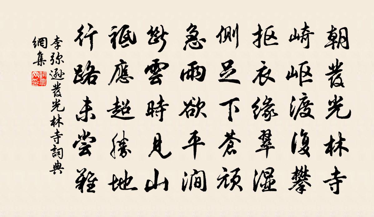 詩詞名句歷史字典書法欣賞書法字典國語詞典說文解字康熙字典古漢語字典標 題 作 者 詩 句 發光林寺作者:李彌遜 朝代:宋代發光林寺原文朝發光林寺,崎嶇渡復攀。摳衣緣翠濕,側足下蒼頑。急雨欲平澗,斷雲時見山。祗應超勝地,行路未嘗難。詩詞問答問:發光林寺的作者是誰?答:李彌遜問:發光林寺寫於哪個朝代?答:宋代李彌遜發光林寺書法欣賞發光林寺書法作品詩詞推薦驀山溪佚名〔宋代〕菊花新過,秋蕊香猶媚。三八燕山亭,賀聖朝、申生明世。肅霜天曉,正快活年時,慶新壽,萬年歡,人醉蓬萊里送八弟無斁宰寶應晁補之〔宋代〕窮邦迫秋成,霖雨厚土濕。邅吾上淶水,濞洶三峽疾。邦人送之子,岸潦飲馬膝。淒淒屬方升,澹澹驚並集。沖湍臨安石元居中〔宋代〕人久眾所僧,物久眾所惜。為負磊落姿,不隨寒暑易。蔣亭和蔡湘州賈島〔唐代〕蔣宅為亭榭,蔡城東郭門。潭連秦相井,松老漢朝根。已積蒼苔遍,何曾舊徑存。高齋無事後,時復一攜尊。送徐閻二游洞霄顧逢〔宋代〕洞天三十六,大滌影猶希。樓閣仙人宅,雲霞羽士衣。風號松虎嘯,雨卷瀑龍飛。搗藥禽猶在,時聞出翠微。爇心香 題仵先生東廊馬鈺〔元代〕六月嚴凝,臘月炎蒸。這真功、顛倒分明。陽中陰極,陰里陽生。出五行中,誰行到,我行程。萬朵金蓮,火里常春分日徐鉉〔唐代〕仲春初四日,春色正中分。綠野裴回月,晴在斷續雲。燕飛猶個個,花落已紛紛。思婦高樓晚,歌聲不可聞。宮詞一百首岳珂〔宋代〕五色雲煙覆帝城,御溝流水接金明。曉來珂繖沙堤鬧,萬歲聲中賀太平。均州南川春日三首張舜民〔宋代〕麻葉梢梢麥弄風,一家花發一村紅。長安兒女逢寒食,灑淚看花正憶翁。招景仁飲韓維〔宋代〕紅薇花拆萱草丹,萬鈴嘉菊重台蓮。問公此時胡不飲,樂有至理須鑽研。後夔已遠師曠死,寂寞千載無其傳。公窮夜坐聯句蘇邁〔宋代〕清風來無邊,明月翳復吐。松聲滿虛空,竹影侵半戶。暗枝有驚鵲,壞壁鳴飢鼠。露葉耿高梧,風螢落空廡。微涼遣興次韻和晁應之四首張耒〔宋代〕洛陽宮殿鎖埃塵,翠輦東還幾度春。雙闕曉雲連太室,九明晴影動天津。地藏寶鼎寧無祲,龍護靈書固有神。游豫貴溪道中四絕鄭剛中〔宋代〕竹邊小徑跨寒溪,息念臨流萬慮非。山鳥不知幽客意,背人相顧卻驚飛。餞唐永昌徐彥伯〔唐代〕金溪碧水玉潭沙,鳧舄翩翩弄日華。鬥雞香陌行春倦,為摘東園桃李花。瑤台月王哲〔元代〕閒閒景致,真閒悟清清,方可分付。元來那個本有,須令堅固。便結作、一粒金丹,五色明霞敷布。同相守,能相自君之出矣三首薛嵎〔宋代〕自君之出矣,淚對花枝灑。風窗挑夜燈,心在無油瀉。壽湯總領郭印〔宋代〕春色平分又六宵,天生良弼佐皇朝。豸冠凜凜周行肅,虎節煌煌蜀地饒。已喜月卿還舊物,更看斗極轉高標。仁人南歌子蔡伸〔宋代〕蕭寺疏鍾斷,虛堂夜氣清。涼蟾偏向小窗明。露井碧梧寒葉、顫秋聲。幽恨人誰問,孤衾淚獨橫。此時風月此時情西江月(席上呈子華)韓維〔宋代〕早歲相期林下,高年同在尊前。風花繡舞乍晴天。綠蟻新浮酒面。身外虛名電轉,人間急景梭傳。當筵莫惜聽朱弦太和初靖恭里感事許渾〔唐代〕清湘吊屈原,垂淚擷蘋蘩。謗起乘軒鶴,機沉在檻猿。乾坤三事貴,華夏一夫冤。寧有唐虞世,心知不為言。名句推薦暖風熏得遊人醉,直把杭州作汴州。林升《題臨安邸》 腳踏車欲問邊,屬國過居延。王維《使至塞上》 聞風聲鶴唳,皆以為王師已至房玄齡《晉書·列傳·第四十九章》 西湖又還春晚,水樹亂鶯啼。仲殊《訴衷情·寶月山作》 知者樂水,仁者樂山。孔子弟子《論語·雍也篇》 時見幽人獨往來,縹緲孤鴻影。蘇軾《卜運算元·黃州定慧院寓居作》 瀑布風前千尺影,疑瀉銀河一派。朱栴《念奴嬌·雪霽夜月中登樓望賀蘭山作》 分明小像沉香縷,一片傷心欲畫難。納蘭性德《於中好·送梁汾南還為題小影》 學然後知不足,教然後知困。戴聖《禮記·學記》 軍井成而後飲,軍食熟而後飯,軍壘成而後舍,勞佚必以身同之。尉繚《尉繚子·戰威》