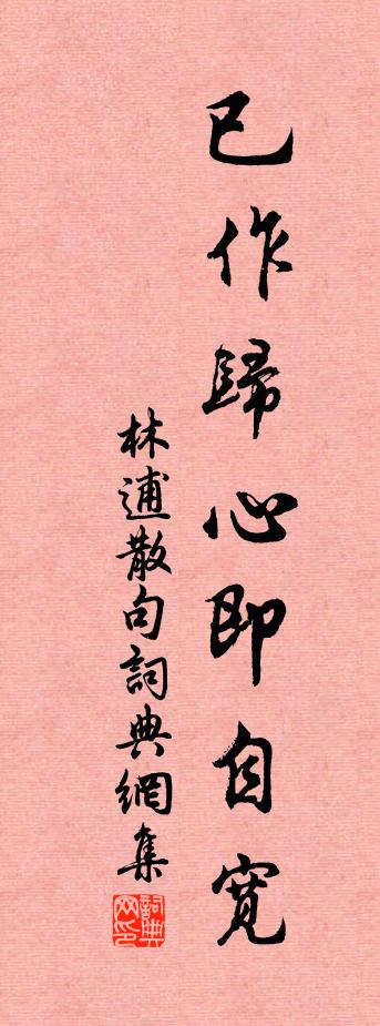 詩詞名句歷史字典書法欣賞書法字典國語詞典說文解字康熙字典古漢語字典標 題 作 者 詩 句 句作者:林逋 朝代:宋代句原文已作歸心即自寬。詩詞問答問:句的作者是誰?答:林逋問:句寫於哪個朝代?答:宋代林逋句書法欣賞句書法作品詩詞推薦美人一章寄徐秉國於石〔宋代〕有美人兮天一方,弭絳節兮擷瓊芳。瑤環瑜珥鏘琳琅,修竹蕭蕭翠袖長。芝宮芙館椒為堂,青瑣窗戶白玉床。一笑寄題外門亭園宋祁〔宋代〕外家真大隱,亭圃枕城闉。談樹能留客,飛鷗不畏人。白雲仙嶺曙,脩竹禊堂春。溪遠尋難盡,林幽趣旋新。愛山偈頌十四首釋宗杲〔宋代〕荒田無人耕,耕著有人爭。無風荷葉動,決定有魚行。視旱田賦呈上元簿楊明卿張伯子〔宋代〕輸蹄旦旦風塵表,入眼群山青未了。刺藤迎日子先紅,蕎麥得霜花漸老。叢祠詭怪畫村疃,古寺騫騰出林杪。征衫病起窺園十絕劉克莊〔宋代〕雲里金烏瞥見些,屋山鵲語亦查查。侵晨掃徑開籬戶,童子知翁出看花。過廣愛寺,見三學演師,觀楊惠之塑寶山、朱蘇軾〔宋代〕朱瑤唐晚輩,得法尚雄深。滿寺空遺蹟,何人識苦心。長廊欹雨腳,破壁撼鍾音。成壞無窮事,他年復吊今。送樂職方知泗州梅堯臣〔宋代〕長堤凍柳不堪折,窮臘使君單騎行。蘇合輕裘霜莫犯,銅牙大弩吏先迎。山旁楚賈連檣泊,水上禹書寒磬清。試向靜觀堂十偈汪晫〔宋代〕香到梅梢歲又還,老天春事不曾閒。酸風凍雪侵重戶,僵臥長松獨恃頑。貓犬嘆艾性夫〔宋代〕飯貓奉魚肉,憐惜同寢處。飼犬雜糠籺,呵斥出庭戶。犬行常低循,貓坐輒箕踞。愛憎了不同,拘肆固其所。虛堂浣溪沙·門隔花深舊夢遊吳文英〔宋代〕門隔花深夢舊遊,夕陽無語燕歸愁。玉纖香動小簾鉤。落絮無聲春墜淚,行雲有影月含羞。東風臨夜冷於秋。朱天永示仆二詩蓋有激而雲者因用其韻以廣之虞儔〔宋代〕是非得喪一毫輕,蠻觸何勞角上爭。未可輕量天下士,渠知不是彀中英。平生我亦輕餘子,到處君安得此名。勿對次韻謝張安撫以詩送梅實項安世〔宋代〕葉間煙雨尚疏疏,桃李盤中怯並驅。忽見使君憐此味,始味時世未輕儒。送李廓侍御赴劍南顧非熊〔唐代〕鳥道見狼煙,元戎正急賢。圖書借朋友,吟詠入戈鋋。山色城池近,江聲鼓角連。不應夸戰勝,知在檄蠻篇。幽居早秋閒詠白居易〔唐代〕幽僻囂塵外,清涼水木間。臥風秋拂簟,步月夜開關。且得身安泰,從他世險艱。但休爭要路,不必入深山。軒鶴陶榖贈詞圖唐寅〔明代〕一宿姻緣逆旅中,短詞聊以識泥鴻。當時我作陶承旨,何必尊前面發紅。 送嚴侍郎到綿州,同登杜使君江樓宴,得心字杜甫〔唐代〕野興每難盡,江樓延賞心。歸朝送使節,落景惜登臨。稍稍煙集渚,微微風動襟。重船依淺瀨,輕鳥度層陰。檻峻鄂州南樓范成大〔宋代〕誰將玉笛弄中秋。黃鶴飛來識舊遊。漢樹有情橫北渚,蜀江無語抱南樓。燭天燈火三更市,搖月旌旗萬里舟。卻笑贈無諍和尚四首王邁〔宋代〕達摩西來長子孫,不徒無諍且無言。後來鼻孔撩天漢,有眼何嘗看世尊。寄鶴田張蘊〔宋代〕鶴向孤山去未歸,片雲竹雁與心期。新詩不著工夫得,雪外看花獨立時。董侍郎生日三首魏了翁〔宋代〕紫氣飛騫一馬驄,當年輕下五雲東。詩書意味江都相,琴鶴規模清獻公。長嘯驅風靜秋戍,精神喚雨作年豐。列城名句推薦路逢俠客須呈劍,不是才人莫獻詩。佚名《增廣賢文·上集》 元嘉草草,封狼居胥,贏得倉皇北顧。辛棄疾《永遇樂·京口北固亭懷古》 還始覺、留情緣眼,寬頻因春。吳文英《渡江雲三犯·西湖清明》 四十三年,望中猶記,烽火揚州路。辛棄疾《永遇樂·京口北固亭懷古》 娶妻無媒毋須恨,書中自有顏如玉。趙恆《勸學詩》 時光只解催人老,不信多情,長恨離亭,淚滴春衫酒易醒。晏殊《採桑子·時光只解催人老》 凡學之道,嚴師為難。戴聖《禮記·學記》 亂石穿空,驚濤拍岸,捲起千堆雪。蘇軾《念奴嬌·赤壁懷古》 動失之繁,靜失之寡。王通《中說·卷十·關朗篇》 不用憑欄苦回首,故鄉七十五長亭。杜牧《題齊安城樓》