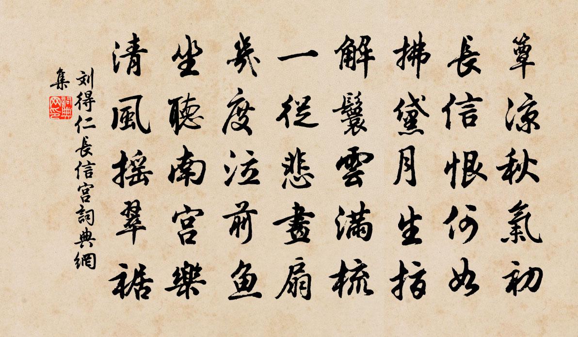 詩詞名句歷史字典書法欣賞書法字典國語詞典說文解字康熙字典古漢語字典標 題 作 者 詩 句 長信宮作者:劉得仁 朝代:唐代長信宮原文簟涼秋氣初,長信恨何如。拂黛月生指,解鬟雲滿梳。一從悲畫扇,幾度泣前魚。坐聽南宮樂,清風搖翠裾。詩詞問答問:長信宮的作者是誰?答:劉得仁問:長信宮寫於哪個朝代?答:唐代問:長信宮是什麼體裁?答:五律劉得仁長信宮書法欣賞長信宮書法作品注釋全唐詩:卷544-83詩詞推薦治平丙午仲冬中澣游釋迦寺登環翠閣章峴〔宋代〕吏局區區得暇難,倚崖高閣暫登攀。群峰半出重林外,小艇橫浮一水間。霜葉信風隨鳥逝,晚雲沉石伴僧閒。夕陽許南山許真人故居李稙〔宋代〕穿雲策杖岸烏紗,來訪南山羽客家。九轉既成丹灶冷,半池煙水浸桃花。偈頌一百六十首釋宗杲〔宋代〕正朝把筆,萬事皆吉。應時納祜,慶無不宜。若作世諦,流布平地,吃交更在佛法,商量眉須隨落。題沈華溪詩集陳深〔宋代〕暑夕坐無寐,把君詩獨謠。才堪敵冰柱,韻不減江{蟲兆}。瘴海三年隔,風沙萬里遙。相逢欣有得,傾篋盡瑤瓊送楊大年知處州二首錢若水〔宋代〕汗簡成惇史,分符別近班。仍聞括蒼郡,酷似武夷山。卷箔煙霞麗,登樓水石閒。二年棄官去,惟我獨何顏。觀釣詩陰鏗〔南北朝〕澄江息晚浪。釣侶枻輕舟。絲垂遙濺水。餌下暗通流。歌聲時斷續。檝影乍橫浮。寄言濯纓者。滄浪終滯游。寄北山順法師二首陳師道〔宋代〕十年聞問不逢人,一面相逢過所聞。高士不應輕俗士,欲將污腳上垂雲。初夏雜興陸游〔宋代〕自斷殘年莫問天,吾儕何處不隨緣。家貧卻得身差健,夜短何妨晝熟眠。未歷名山采靈藥,且從同社樂豐年。賣絲白蓮堂范成大〔宋代〕古木參天護碧池,青錢弱葉戰漣漪。匆匆遊子匆匆去,不見風清月冷時。春秋戰國門公叔周曇〔唐代〕吳起南奔魏國荒,必聽公叔失賢良。無謀縱慾離安邑,可免河溝徙大梁。八聲甘州汪莘〔宋代〕惜余春、蛺蝶引春來,杜鵑趣春歸。算何如桃李,渾無言說,開落忘機。多謝黃鸝舊友,相逐落花飛。芳草連天遠酬楊比部員夕卜暮宿琴盧照鄰〔唐代〕閒攤檐塵看,鳴琴候月彈。桃源迷漢姓,松徑有秦官。空谷歸人少,青山背陰寒。羨君棲隱處,遙望在雲端。贈術士姚有應自號通靈心神仙口姚勉〔宋代〕仙在虛懷不可知,神仙有口欲何為。餐風吸露囂塵表,說地談天爛醉時。不帶一星煙火氣,盡饒三寸帝王師。到頭和野渡為青溪賦衛宗武〔宋代〕好士不論親與疏,絕甘分少寧求余。孔程一見便傾蓋,懽如故舊其非歟。世多奇俊無南北,平昔可曾致佳客。吾鄉游延福寺趙曾頀〔宋代〕行行出西郊,稍覺囂塵遠。風景既已殊,磽确頗忘倦。南安古雄州,今亦壯哉縣。九日一佳景,居然在郊甸。地高茅屋薛嵎〔宋代〕茅舍竹椽短,不勞朱惡施。高無神鬼瞰,貧與子孫宜。近古意全朴,當風勢亦危。梅花有幽致,一樹隔疎籬。殘花(一作楊發詩)羅隱〔唐代〕已嘆良時晚,仍悲別酒催。暖芳隨日薄,輕片逐風回。黛斂愁歌扇,妝殘泣鏡台。繁陰莫矜衒,終是共塵埃。丁卯清明約鄧致道游陽華李長庚〔宋代〕我來挈挈倦塵沙,下馬無心更憶家。不怨客中逢熟食,只知玉里是生涯。花邊頓覺春光老,柳外還驚日腳斜。甚欲南昌樓贈符子威李自中〔宋代〕占得南樓第一涼,焚香終日話蒼茫。客來酌酒烹茶外,雜采山花供藥王。過馮唐故里陳維崧〔清代〕酒罷燕歌竟歇,途窮趙瑟難求。滹沱水抱太行流,行過鄗南關口。匹馬霜天古磧,三河玉勒長楸。翩翩過客半鳴騶名句推薦江雨霏霏江草齊,六朝如夢鳥空啼。韋莊《台城》 一樹斜陽蟬更咽,曾綰灞陵離別納蘭性德《淡黃柳·詠柳》 孤舟向廣武,一鳥歸成皋。岑參《鞏北秋興寄崔明允》 醉月頻中聖,迷花不事君李白《贈孟浩然》 高岸為谷,深谷為陵。佚名《十月之交》 狂風落盡深紅色,綠葉成陰子滿枝。杜牧《悵詩》 有耳莫洗潁川水,有口莫食首陽蕨李白《行路難三首》 何處合成愁。吳文英《唐多令·惜別》 東風惡,歡情薄。陸游《釵頭鳳·紅酥手》 雲盡月如練,水涼風似秋。歐陽詹《荊南夏夜水樓懷昭丘直上人云夢李莘》