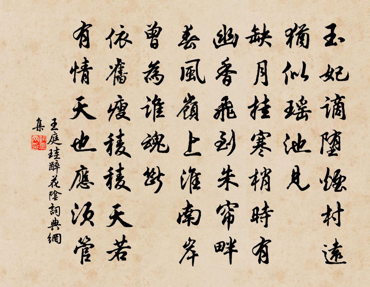 詩詞名句歷史字典書法欣賞書法字典國語詞典說文解字康熙字典古漢語字典標 題 作 者 詩 句 醉花陰作者:王庭珪 朝代:宋代醉花陰原文玉妃謫墮煙村遠。猶似瑤池見。缺月掛寒梢,時有幽香,飛到朱簾畔。春風嶺上淮南岸。曾為誰魂斷。依舊瘦稜稜,天若有情,天也應須管。詩詞問答問:醉花陰的作者是誰?答:王庭珪問:醉花陰寫於哪個朝代?答:宋代問:醉花陰是什麼體裁?答:詞王庭珪醉花陰書法欣賞醉花陰書法作品詩詞推薦小園秋夕錢惟演〔宋代〕潘鬢秋來已自傷,庾園時物更荒涼。紫梨半熟連紅樹,碧蘚初圓亂縹牆。月露暗從孤桂滴,水風猶獵敗荷香。滑稽看梅雜興釋永頤〔宋代〕春動晴山照野扉,早梅開後失歸期。夕陽無柰山郵路,過盡行人雪滿枝。詠史上武帝陳普〔宋代〕先帝齋宮內弄兒,阿嬌金屋篡歌姬。披香博士真才子,劉氏家傳卻未知。江陵汪元量〔宋代〕月到荊江上,輕帆莫遠揚。水搖龍影動,風送雁聲長。北斗回秋柄,南辰耿夜光。徘徊舒一嘯,詩興落瀟湘。藻侄比課五言詩,已有意趣,老懷甚喜,因吟范成大〔宋代〕視絮勞群從,祗承愧闔家。乳泉供水處,金液養丹芽。加釀厚如酪,旋舂香勝花。百端扶老憊,無物報投瓜。次韻子由彈琴一作:次韻子由以詩見報編禮蘇軾〔宋代〕琴上遺聲久不彈,琴中古意本長存。苦心欲記常迷舊,信指如歸自著痕。應有仙人依樹聽,空教瘦鶴舞風騫。誰知逍遙堂會宿二首蘇轍〔宋代〕逍遙堂後千尋木,長送中宵風雨聲。誤喜對床尋舊約,不知漂泊在彭城。同諸友城南張園賞梅十首邵雍〔宋代〕清香冷艷偏多處,猛雨狂風未有前。賞意正濃紅日墜,如何既去遂經年。潛經閣葉適〔宋代〕當日先生住一軒,手抄六籍自忘言。至今遺墨如新寫,付與樓居四世孫。酬令狐郎中見寄李商隱〔唐代〕望郎臨古郡,佳句灑丹青。應自丘遲宅,仍過柳惲汀。封來江渺渺,信去雨冥冥。句曲聞仙訣,臨川得佛經。朝吟次韻僧雲岫見寄陳著〔宋代〕憶昔宮花壓帽檐,如今野褐替朝衫。邯鄲夢覺身猶在,安得寒山喝破岩。和鞏興宗題回峰寺贈明山主王之道〔宋代〕江共煙雲遠,山連藪擇長。日從三伏烈,風借九秋涼。休作桃花觀,聊同柏子香。相逢無一事,不必下禪床。王提刑輓詞樓鑰〔宋代〕二廣外台首,威稜著一門。志期諸郡肅,忍見匹夫冤。奮系猶鷹鷙,興讒有兔爰。投閒了無恨,此意與誰論。攝事十三首佚名〔宋代〕煌煌真宗,善繼善承。經武耀德,臻於治平。對祀禮光,丕昭鴻名。陟配文廟,皇圖永寧。贈道者唐求〔唐代〕披霞戴鹿胎,歲月不能催。飯把琪花煮,衣將藕葉裁。鶴從歸日養,松是小時栽。往往樵人見,溪邊洗藥來。答孫直言都官卷梅堯臣〔宋代〕具深相割啖,不如無勇人。以詩而酬詩,徒用多少均。我言雖至簡,意切誰見親。汲井欲到深,磨監欲盡塵。寒泉四時白紵歌 冬白紵沈約〔南北朝〕寒閨晝密羅幌垂。婉容麗色心相知。雙去雙還誓不移。長袖拂面為君施。翡翠羣飛飛不息。願在雲間長比翼。佩服宿漁家李鹹用〔唐代〕促杼聲繁螢影多,江邊秋興獨難過。雲遮月桂幾枝恨,煙罩漁舟一曲歌。難世斯人雖隱遁,明時公道復如何?陶家早秋杜牧〔唐代〕疏雨洗空曠,秋標驚意新。大熱去酷吏,清風來故人。樽酒酌未酌,曉花顰不顰。銖秤與縷雪,誰覺老陳陳?別眾雲峰德師〔宋代〕澹然無累水雲僧,去住分明葉樣輕。十字街頭休作夢,五湖依舊一枝藤。名句推薦修己而不責人,則免於難。左丘明《左傳·閔公·閔公二年》 無人信高潔,誰為表予心?駱賓王《詠蟬 / 在獄詠蟬》 朝聞道,夕死可矣。孔子弟子《論語·里仁篇》 誰家秋院無風入?何處秋窗無雨聲?曹雪芹《代別離·秋窗風雨夕》 如夢,如夢,殘月落花煙重。李存勖《如夢令·曾宴桃源深洞》 浮雲不共此山齊,山靄蒼蒼望轉迷韓翃《宿石邑山中》 凡與敵戰,若有形勢便利之處,宜爭先據之,以戰則勝。佚名《百戰奇略·第四卷·爭戰》 君不見,黃河之水天上來,奔流到海不復回。李白《將進酒》 遲日園林悲昔游,今春花鳥作邊愁。杜審言《渡湘江》 若要俏,添重孝。馮夢龍《警世通言·卷三十五》