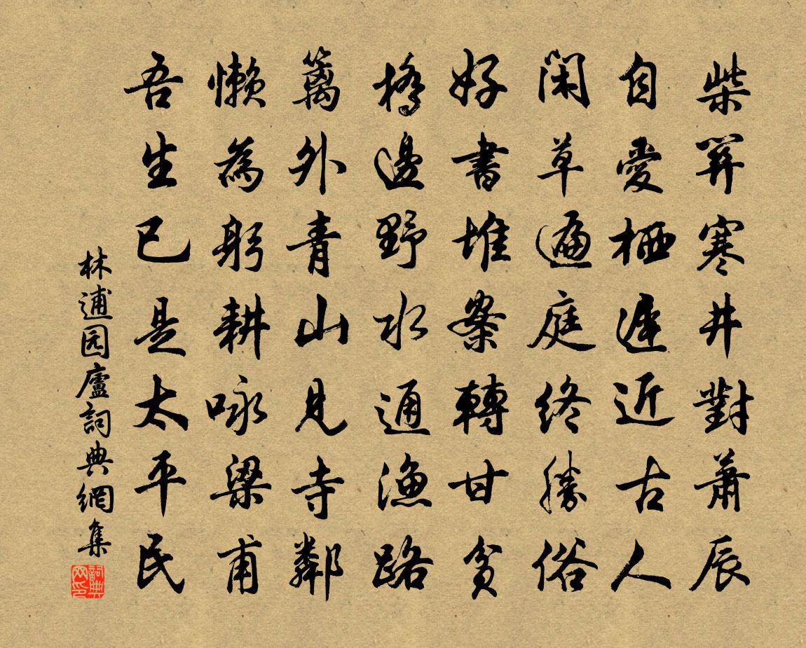 詩詞名句歷史字典書法欣賞書法字典國語詞典說文解字康熙字典古漢語字典標 題 作 者 詩 句 園廬作者:林逋 朝代:宋代園廬原文柴關寒井對蕭辰,自愛棲遲近古人。閒草遍庭終勝俗,好書堆案轉甘貧。橋邊野水通漁路,籬外青山見寺鄰。懶為躬耕詠梁甫,吾生已是太平民。詩詞問答問:園廬的作者是誰?答:林逋問:園廬寫於哪個朝代?答:宋代林逋園廬書法欣賞園廬書法作品詩詞推薦哀秦金部李復〔宋代〕少年書卷是生涯,白屋清朝自起家。數上對章思有補,一生悃愊靜無華。初瞻玉節星軺下,俄見銘旌粉篆斜。天理昌英知縣叔作歲坐上,賦瓶里梅花,時坐上九楊萬里〔宋代〕寒盡春生夜未央,酒狂狂似醒時狂。吾人何用餐煙火,揉碎梅花和蜜霜。贈禮部宋次道輓詞王珪〔唐代〕平日朝廷重老儒,何人奕葉在清途。吟箋夜月驚皴兔,談塵春風落寶珠。金石誰新三代樂,丹於空目兩京圖。可憐句李慶孫〔宋代〕軸裝曲譜金書字,樹記花名玉篆牌。霜天曉角(初春即事)劉辰翁〔宋代〕柳梢欲雪。十里煙明滅。曲曲闌乾轉影,教人憶、夜來月。家人相對說。燈花還又結。凍雨村村□鼓,終不似、上次韻趙克勤吏部六首劉克莊〔宋代〕苔徑荒蕪薇架斜,樹頭吹盡不留些。奴欺主病慵鋤草,魔笑翁衰免散花。偶題項安世〔宋代〕暗水斜穿橘塢涼,回波直下藕塘香。似牙如背牡羊岸,已疊又灣青草傍。閘里放船思槜李,石間行酒認天章。一時四五用喜雪韻四首吳潛〔宋代〕不數玄真與木難,也休翦彩綴林端。五車自有神朝闕,萬寶非因賈送官。老大已殘洄曲夢,推敲且作灞陵看。忍寒宗人大著令問通判廣州楊億〔宋代〕蘭台大著作,族派共關西。南海分憂寄,東門敘解攜。離城衝臘雪,宿館聽晨雞。畫鷁江波遠,鳴騶嶺路迷。陸梅一落索佚名〔宋代〕葉底枝頭紅小。天然竊窕。後園桃李謾成蹊,問占得、春多少。不管雪消霜曉。朱顏長好。年年若許醉花間,待拚句蔡肇〔宋代〕原同籍堤輩,終老韓公門。秣陵仇遠〔宋代〕龜脊羊腸九里汀,芫花燦燦麥青青。此生不踏江東道,將謂金陵即秣陵。景祐親享太廟二首真宗〔宋代〕追養奉先,納孝練主。金奏鳳鳴,開雎樂舞。奠眼恭神,肥腯展俎。積慶聰明,降景環宇。宿覆船山阻雨釋正覺〔宋代〕枝筇同到覆船巔,暫寄筇枝借榻眠。山水鉤簾知屬我,煙霞膩枕夢遊仙。覺來筍窟投蔬箸,閒把華房入線編。想像曾仲躬見過適遇予出留小詩而去次韻二絕陸游〔宋代〕數樹山花草舍東,想公系馬落殘紅。那知老子耶溪上,正泛朝南暮北風。和仁仲舟中三絕胡寅〔宋代〕湘君誰識是皇英,占得君山冷淡青。月滿湖平相照處,姮娥應得見娉婷。偈頌七十六首釋子益〔宋代〕最初句,向上機。瞿曇不會,達磨不知。知不知,雨余千嶂碧,春水一溪肥。送朱大卿歸龍舒王炎〔宋代〕觚稜掛曉日,浮鷁違都城。今代朱伯厚,勇去投簪纓。津津眉睫間,不見離別情。問之何能爾,內重外物輕。聲利陪王漕右司游東園章甫〔宋代〕籍甚皇華使,詩清思不群。建台多暇日,領客總能文。花好杯重勸,茶香手自分。禮寬情爛熳,小雨夜深聞。憶孟浩然唐彥謙〔唐代〕郊外凌兢西復東,雪晴驢背興無窮。句搜明月梨花內,趣入春風柳絮中。名句推薦人有短,切莫揭。人有私,切莫說。李毓秀《弟子規·泛愛眾》 白雁亂飛秋似雪,清露生涼夜。吳西逸《清江引·秋居》 帳底吹笙香吐麝,更無一點塵隨馬。蘇軾《蝶戀花·密州上元》 草枯鷹眼疾,雪盡馬蹄輕。王維《觀獵》 人不博覽者,不聞古今,不見事類,不知然否,猶目盲、耳聾、鼻癰者也。王充《論衡·卷十三·別通篇》 短綆不可以汲深井之泉,知不幾者不可與及聖人之言。荀子《荀子·榮辱》 玉勒雕鞍遊冶處,樓高不見章台路。歐陽修《蝶戀花·庭院深深深幾許》 野雲萬里無城郭,雨雪紛紛連大漠。李頎《古從軍行》 春色滿園關不住,一枝紅杏出牆來。葉紹翁《遊園不值》 燕子飛時,綠水人家繞。蘇軾《蝶戀花·春景》