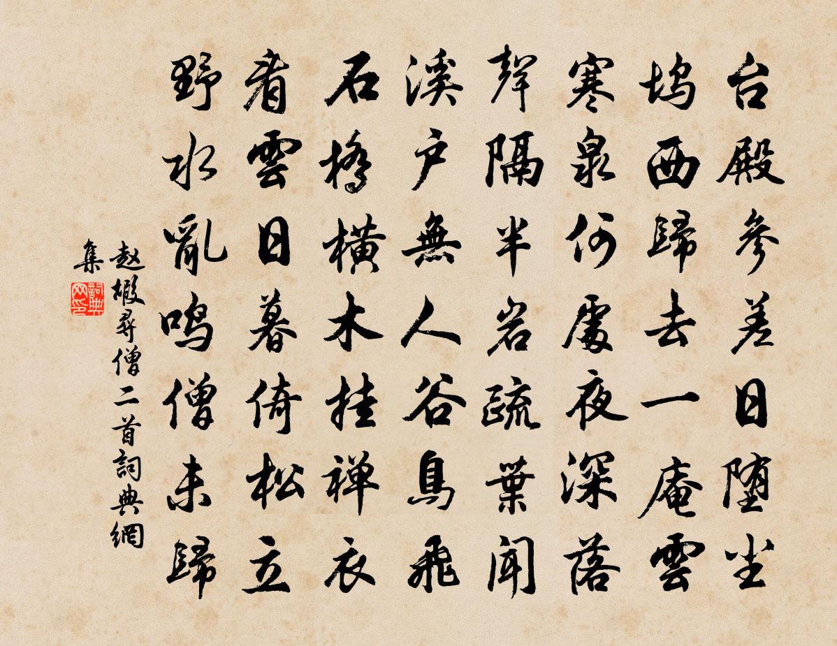 台殿參差日墮塵,塢西歸去一庵雲。寒泉何處夜深落,聲隔半岩疏葉聞。