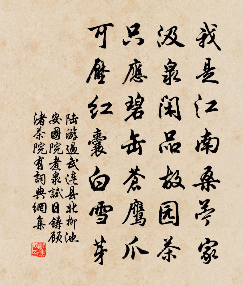 我是江南桑薴家,汲泉閒品故園茶。只應碧缶蒼鷹爪,可壓紅囊白雪芽。