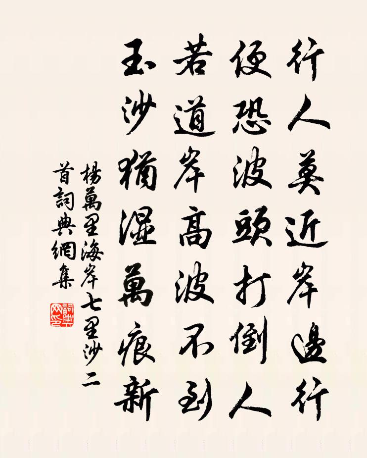 行人莫近岸邊行,便恐波頭打倒人。若道岸高波不到,玉沙猶濕萬痕新。