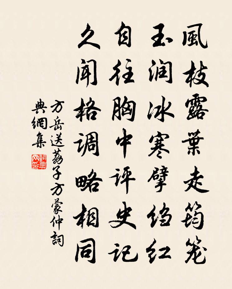 詩詞名句歷史字典書法欣賞書法字典國語詞典說文解字康熙字典古漢語字典標 題 作 者 詩 句 送荔子方蒙仲作者:方岳 朝代:宋代送荔子方蒙仲原文風枝露葉走筠籠,玉潤冰寒擘縐紅。自往胸中評史記,久聞格調略相同。詩詞問答問:送荔子方蒙仲的作者是誰?答:方岳問:送荔子方蒙仲寫於哪個朝代?答:宋代方岳送荔子方蒙仲書法欣賞送荔子方蒙仲書法作品詩詞推薦太常引許有壬〔元代〕四堤楊柳接松筠。香破水芝新。羅襪不生塵。笑畫裡、凌波未真。紅雲飄緲,清風蕭颯,半醉岸鳥巾。不是葛天民和文與可洋州園亭三十詠其十一樂榭蘇轍〔宋代〕動靜惟所遇,仁智亦偶然。誰見二物外,猶有天地全。及第後憶舊山白居易〔唐代〕偶獻子虛登上第,卻吟招隱憶中林。春蘿秋桂莫惆悵,縱有浮名不繫心。三月二十九日飲杭州路耿同知花園方回〔宋代〕巢燕春泥久已融,虞弦節近鼓薰風。枝枝爛熟櫻桃紫,朵朵爭妍芍藥紅。冠豸霽威賢御史,雕蟲得雋老詩翁。十分舒刺客楊維楨〔元代〕舒壯士,智如張子房,膽如趙子龍。神州地入黃旗東,壯士手挽回天功。探虎入虎穴,壯士沃焦心火熱。怒潮一卷寶佑丙辰余奉漕檄經從得識九鎖山面目鹹淳乙王洧〔宋代〕九鎖山寒玉作圍,紅塵世事可曾知。峰迴似覺前無路,身到因思舊有詩。雲掩岩扉龍蟄冷,月明華表鶴歸遲。梅花詩一首何逢原〔宋代〕萬偽何緣鬭一真,時間謾得面前人。生男種女多暗啞,果報元來必有因。問訊大淵痔疾劉克莊〔宋代〕秋來日日候雙鳧,霍地光陰迫歲除。古有客過雄寂寞,今無人問白何如。蘇先自說飢餐面,蒙叟曾嗤舐得車。縱使越井岡方信孺〔宋代〕萬山袞袞盡東來,高處猶存百尺台。回首舊時張樂地,一杯重與酹蒼苔。霧李靚〔宋代〕樹在溪無影,禽來鶻未知。愛花留潤與,避日卷陰移。感事十詩上李侍郎陳造〔宋代〕國工鑄良劍,發白心志悴。晶熒淬斂余,乾莫並犀利。入匣蟄虬龍,落手懾魑魅。衛身未足道,適用在一試。樓蘭鷓鴣天蘇庠〔宋代〕秋入蒹葭小雁行。參差飛墮水雲鄉。直須銀甲供春筍,且滴糟床覆羽觴。風壓幕,月侵廊。江南江北夜茫茫。懸知霜天曉角(子慶母八十)劉子寰〔宋代〕滿前兒女。今日都歡聚。今也阿彌八十,兒也五十五。瓷甌並瓦注。山歌和社舞。但管年年強健,妝成個、西王母通填致政姚君輓詩魏了翁〔宋代〕一生官偪仄,幾處獄平反。夜雨滴歸思,凱風唳淚痕。竟令駒入夢,莫盡桂銷冤。點檢慈恩舊,秋空幾斷魂。漢宮春·立春日辛棄疾〔宋代〕春已歸來,看美人頭上,裊裊春幡。 無端風雨,未肯收盡余寒。 年是時燕子,料今宵夢到西園。 渾未辦黃柑和高與權戴復古〔宋代〕相逢休說昧平生,高適能詩久擅名。欲課荒蕪來入社,羞將老醜對傾城。近來客里仍多病,強向花前舉一觥。樂極泰伯廟皮日休〔唐代〕一廟爭祠兩讓君,幾千年後轉清芬。當時盡解稱高義,誰敢教他莽卓聞?古芳林苑馬之純〔宋代〕昔日曾為府署來,誰人都把插桃栽。不聞華屋笙簫響,但見工林錦繡堆。幾度劉郎來觀里,半年阮客住天台。如今七夕曲王建〔唐代〕河邊獨自看星宿,夜織天絲難接續。拋梭振鑷動明璫,為有秋期眠不足。遙愁今夜河水隔,龍駕車轅鵲填石。流蘇鵲橋仙(戲贈吳伯承侍兒)張孝祥〔宋代〕明珠盈斗,黃金作屋,占了湘中秋色。金風玉露不勝情,看天上、人間今夕。枝頭一點,琴心三疊,算有詩名消得名句推薦楚鄉飛鳥沒,獨與碧雲還。錢起《送夏侯審校書東歸》 今日樓台鼎鼐,明年帶礪山河辛棄疾《西江月·堂上謀臣尊俎》 守真志滿,逐物意移。周興嗣《千字文·全文》 彈淚別東風,把酒澆飛絮:化了浮萍也是愁,莫向天涯去!蔣春霖《卜運算元·燕子不曾來》 天覆吾,地載吾,天地生吾有意無。李泌《長歌行》 勿恃勢力而凌逼孤寡,毋貪口腹而恣殺生禽。朱柏廬《朱子家訓·全文》 凍雲宵遍嶺,素雪曉凝華。李世民《望雪》 泥融飛燕子,沙暖睡鴛鴦。杜甫《絕句二首》 雞鳴紫陌曙光寒,鶯囀皇州春色闌。岑參《奉和中書舍人賈至早朝大明宮》 暝色入高樓,有人樓上愁。李白《菩薩蠻·平林漠漠煙如織》