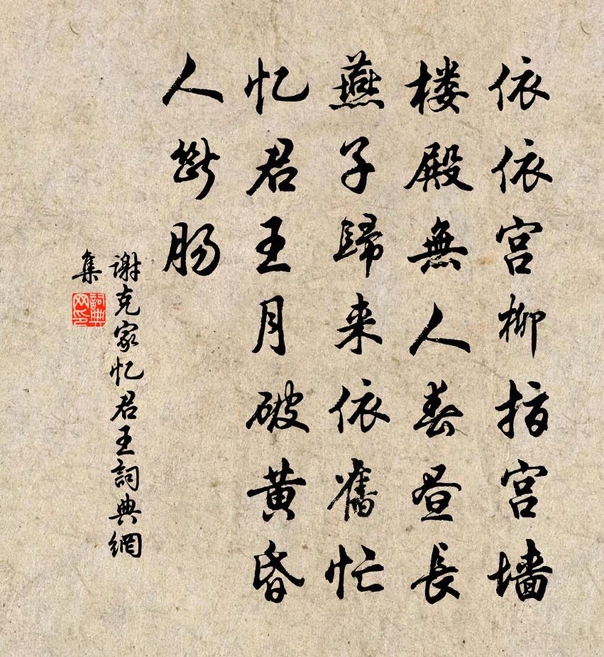 起首兩句,景為情使,情因景生,藉助“柳枝依依 ”這一生動形象,表達了詞人對汴京故宮的思戀,同時又以“樓殿無人”暗指國破家亡,以昔日故宮春日歡游、人苦晝短與今日倍覺春晝漫長作比,抒寫出詞人對故國的一往情深。第三句筆鋒一轉,從“國破山河在,城春草木深”(杜甫《春望》)的描寫,轉為“登樓遙望秦宮殿 ,翩翩只見雙飛燕”(唐昭宗李曄《菩薩蠻》)的感嘆 :“燕子歸來依舊忙”。燕子是無情之物,它哪裡知道樓殿依舊,而主人已換,仍然忙著銜泥,在舊樑上築起新巢,正是“這雙燕何曾,念人言語”(《燕山亭》),儼然有“舊時王謝堂前燕,飛入尋常百姓家”的滄桑之感。然後點明題旨,懷念故君結末兩句,熔寫景與抒情於一爐,語意悲悽,讀來催人淚下,堪稱愛國憂君之語。這兩句,將詞人國破家亡、流落異鄉、君王難忘,故國難忘的情懷與春色可人、暮色如愁、獨立黃昏的景境融合在一起,收到了很好的藝術效果。 這首詞富於抒 * 彩,不言國破思虜,巢覆卵毀,而言宮柳依依,樓殿寂寂,充滿了物是人非的深沉感慨。全詞不著一實語,而能以動盪見奇 ,迷離稱雋 ,辭有盡而意無窮,將出河破碎 、身世飄零 、往事堪哀的沉痛心情表達得真切動人。