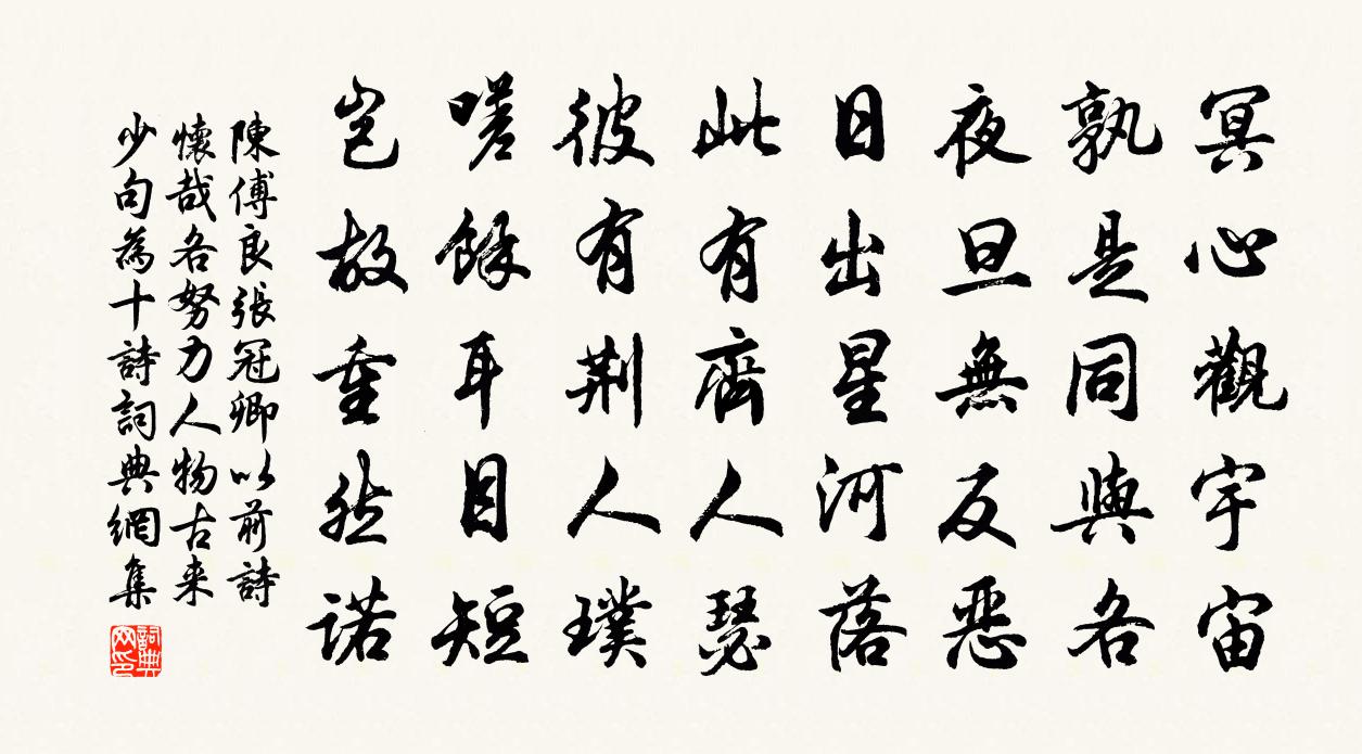 詩詞名句歷史字典書法欣賞書法字典國語詞典說文解字康熙字典古漢語字典標 題 作 者 詩 句 張冠卿以前詩懷哉各努力人物古來少句為十詩作者:陳傅良 朝代:宋代原文冥心觀宇宙,孰是同與各。夜旦無反惡,日出星河落。此有齊人瑟,彼有荊人璞。嗟余耳目短,豈故重然諾。詩詞問答問:《張冠卿以前詩懷哉各努力人物古來少句為十詩》的作者是誰?答:陳傅良問:該詩寫於哪個朝代?答:宋代書法欣賞張冠卿以前詩懷哉各努力人物古來少句為十詩書法作品詩文賞析【原題】:張冠卿以前詩懷哉各努力人物古來少句為十詩見寄次韻奉酬詩詞推薦深正卿得男以詩慶之仲並〔宋代〕乃翁席壁立千仞席余,乃翁摛章錦不如。英風雅韻來無盡,川媚還復生明珠。華堂寧無侍巾櫛,娉婷試問誰空姝。吳下同年會詩 * 壽〔宋代〕人生會少足睽違,尊酒相從又復稀。我歡散材誰見數,公持華節幸相依。題名雁塔思當日,曳屣龍門借夕暉。會見踏莎行王以寧〔宋代〕夢褥光宗,河東右族。向來到耳聲華熟。游從兩世紀金蘭,風流二阮居南北。今夕何辰,相親燈燭。一廛我願依韋山中作馮道之〔唐代〕草堂在岩下,卜居聊自適。桂氣滿階庭,松陰生枕席。遠瞻惟鳥度,旁信無人跡。靄靄雲生峰,潺潺水流石。頗尋次韻君節秘書三首劉克莊〔宋代〕又從天祿合中錄,厭太官羊憶苦薇。伋瑗昌言憂國事,永欽沽直暴君非。貴人高爵懸金印,狎客閒情減帶圍。獨有偈頌一百六十首釋宗杲〔宋代〕如天普蓋,似地普擎。一念相應,一時清淨。庚午春作釋行海〔宋代〕相逢處處說干戈,又報天驕走渡河。鄉國不知音問少,友朋無奈別離多。楊花漠漠迷春思,芳草萋萋感暮歌。猿鳥開先寺前望瀑布晁補之〔宋代〕白虹晝下崑崙頂,半入青林久不回。下洞水輪穿地底,冰崖吼怒卻重來。紹興祀大火十二首佚名〔宋代〕皇念有神,介我戩彀。登時休明,有此美祿。酌言獻之,有飶其香。神兮燕娭,醉此嘉觴。馬當洑阻風,居人云︰非五日或七日風不止,范成大〔宋代〕拍岸回流逆上磯,枯楊折葦靜相依。趁墟漁子晨爭渡,賽廟商人晚醉歸。重九信來風未恐,大千行行昨俱非。羈愁閒怨(一作閨怨)孟郊〔唐代〕妾恨比斑竹,下盤煩冤根。有筍未出土,中已含淚痕。徵招(九日登高)周密〔宋代〕江蘺搖落江楓冷,霜空雁程初到。萬景正悲涼,奈曲終人杳。登臨嗟老矣,問今古、清愁多少。一夢東園,十年心浣溪沙 史院得告歸西山元好問〔金代〕萬頃風煙入酒壺。西山歸去一狂夫。皇家結網未曾疏。情性本宜閒處著,文章自忖用時無。醉來聊為鼓嚨胡。次韻趙主簿雪詩十韻二首項安世〔宋代〕歷亂空中花,蹁躚水中影。屑屑復騷騷,涼涼何滓滓。風急陣形圓,雲深兵勢回。檐鵲換緇衣,皋禽失丹頂。歷驚偈釋如本〔宋代〕李四有錢不解飲,張三解飲又無錢。相招豐樂樓中看,不怕寒威雪滿天。滕王閣蘇轍〔宋代〕客從筠溪來,欹仄困一葉。忽逢章貢余,滉盪天水接。風霜出洲渚,草木見毫末。勢奔西山浮,聲動古城嶪。樓觀過楊駙馬亭子錢起〔唐代〕衣冠在漢庭,台榭接天成。彩鳳翻簫曲,祥鱣入館名。歌鐘芳月曙,林嶂碧雲生。亂水歸潭淨,高花映竹明。退朝舟行過梅市陸游〔宋代〕新換單衣細葛輕,翛然隨處得閒行。綠陰浦口維舟處,霽日場中打麥聲。醉叟臥途知酒賤,耕農滿野喜時平。老來寄題章安禪師塔釋智圓〔宋代〕祖師墳塔在天台,雨壞風摧事可哀。香火無人空有跡,夜深明月照蒼苔。金蓮出玉花 萊州倉使廬武義馬鈺〔元代〕廬公倉使。意在留心風馬二。未解修丹。送我勞勞到武官。速回車馬。欲要全真先棄假。功行須周。定是將來看十名句推薦昨日入城市,歸來淚滿巾。張俞《蠶婦》 九萬里風鵬正舉。李清照《漁家傲·天接雲濤連曉霧》 江間波浪兼天涌,塞上風雲接地陰。杜甫《秋興八首·其一》 若待得君來向此,花前對酒不忍觸。蘇軾《賀新郎·夏景》 叢菊兩開他日淚,孤舟一系故園心。杜甫《秋興八首·其一》 寒蟬淒切,對長亭晚,驟雨初歇。柳永《雨霖鈴·寒蟬淒切》 布衣菜飯,可樂終身,不必作遠遊計也。沈復《浮生六記·閨房記樂》 起舞徘徊風露下,今夕不知何夕。蘇軾《念奴嬌·中秋》 挾飛仙以遨遊,抱明月而長終。蘇軾《前赤壁賦》 問汝平生功業,黃州惠州儋州。蘇軾《自題金山畫像》