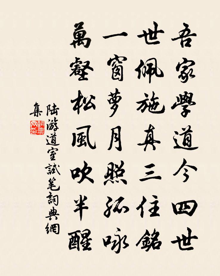 吾家學道今四世,世佩施真三住銘。一窗蘿月照孤詠,萬壑松風吹半醒。