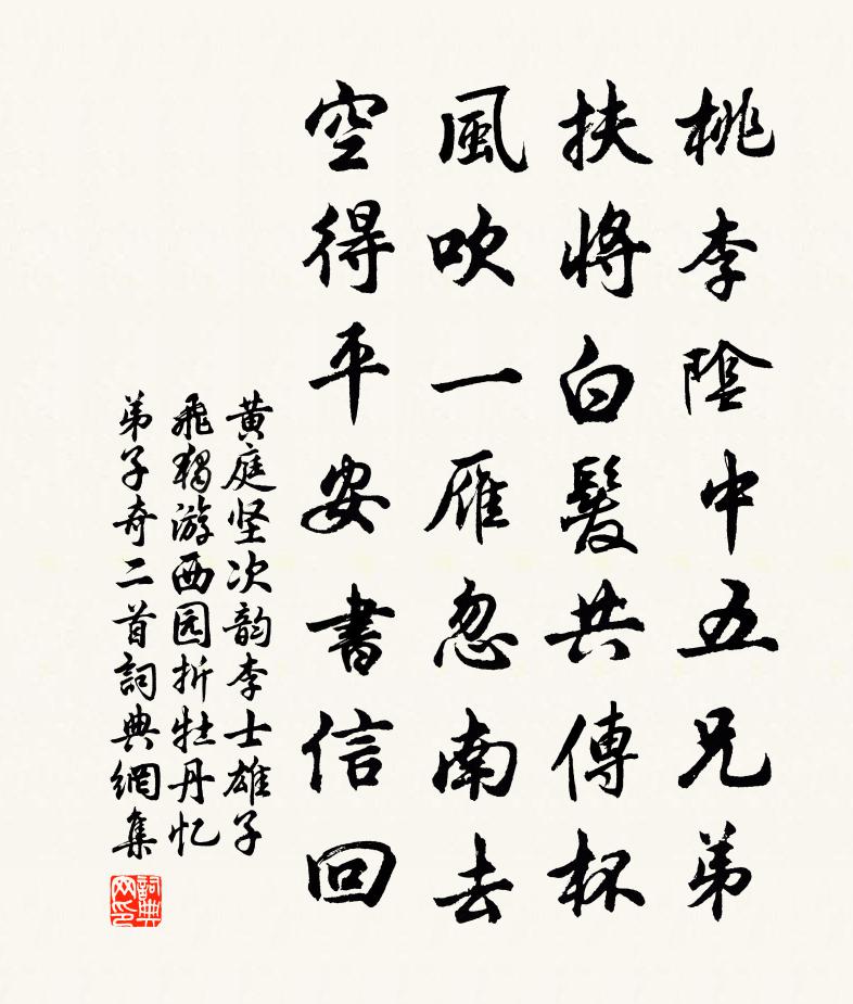 問:《次韻李士雄子飛獨游西園折牡丹憶弟子奇二首》的作者是誰?答:黃庭堅