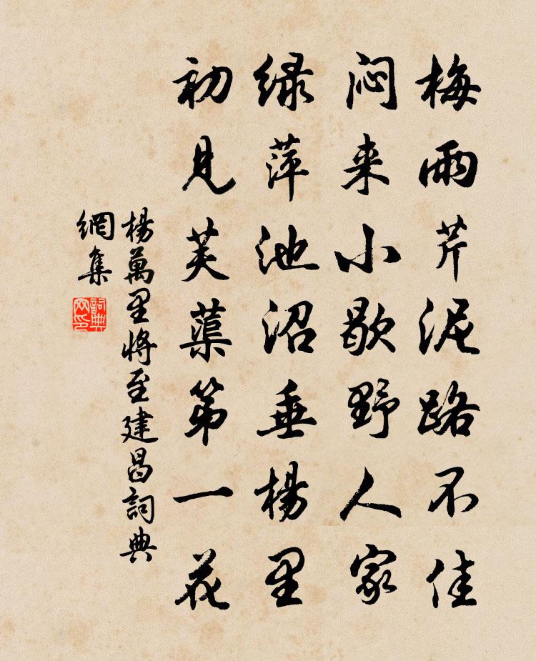 梅雨芹泥路不佳,悶來小歇野人家。綠萍池沼垂楊里,初見芙蕖第一花。