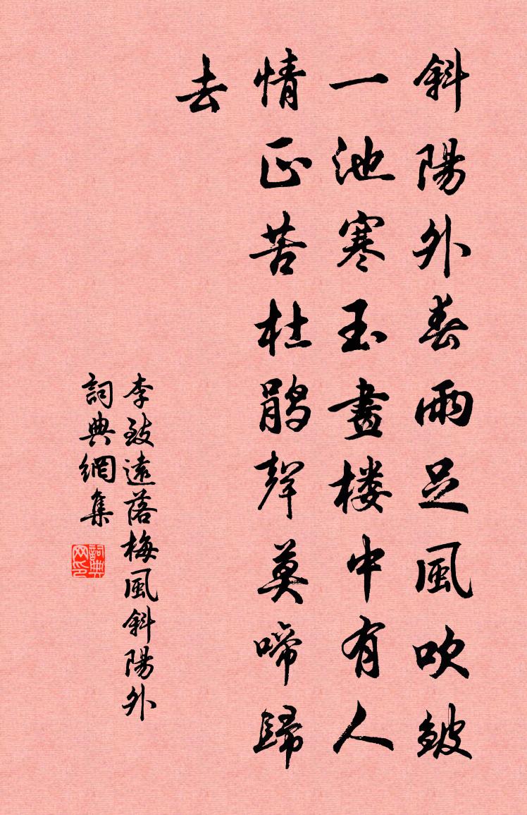 李致遠這首小令狀寫離情。前三句寫景,後二句寫情。開頭即以“斜陽”、“春雨”渲染雨後春晚的寂靜落寞。“風吹皺一池寒玉”,初看是對外在世界的描寫,其實亦是對主人公的內心感受的揭示,不妨視為過渡句。第四句“畫樓中有人情正苦”才開始正麵點題,直接道出離人之“苦”。尾句“杜鵑聲莫啼歸去”,表達了企盼離人早歸的殷切之意。整個作品用語含蓄,使相思的悽苦表達得更為深沉。
